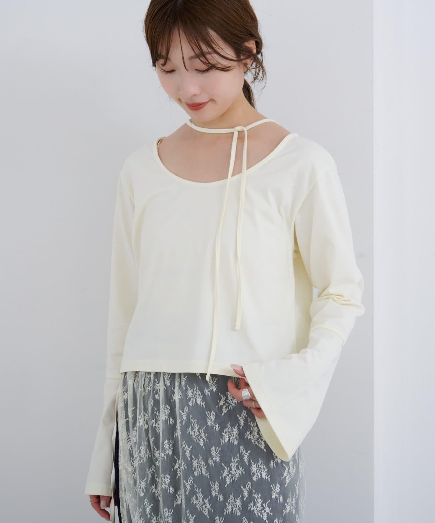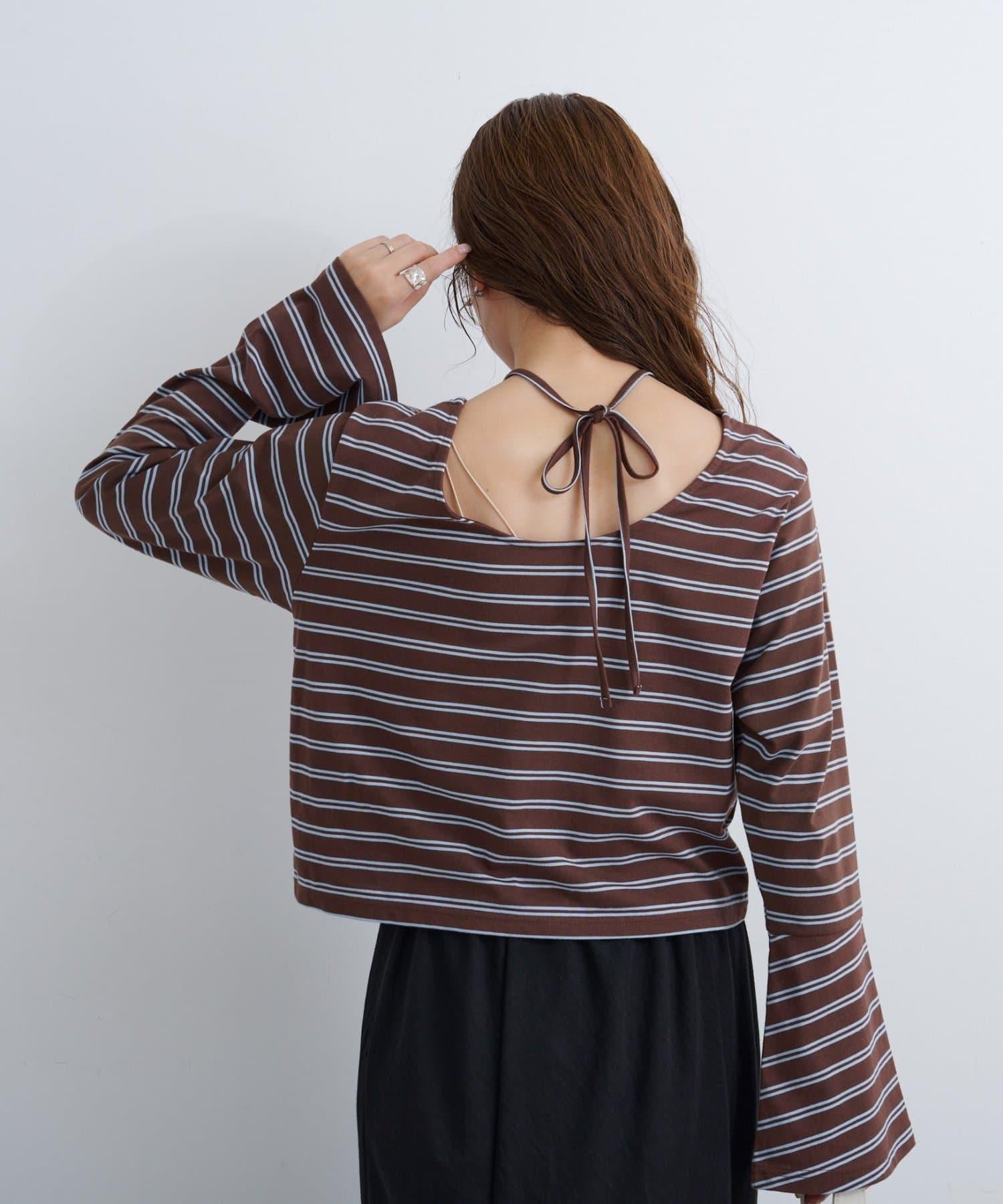 雙向剪裁的上衣,背部蝴蝶結和喇叭袖設計提升女性魅力。
