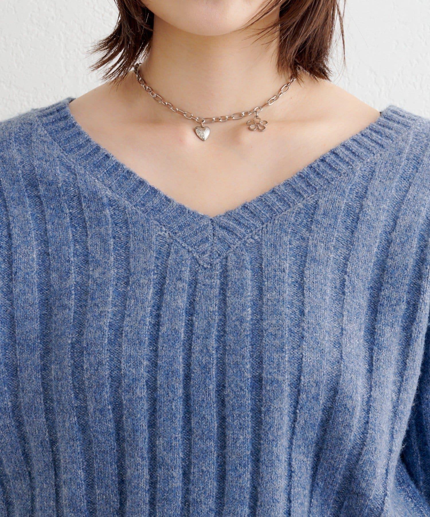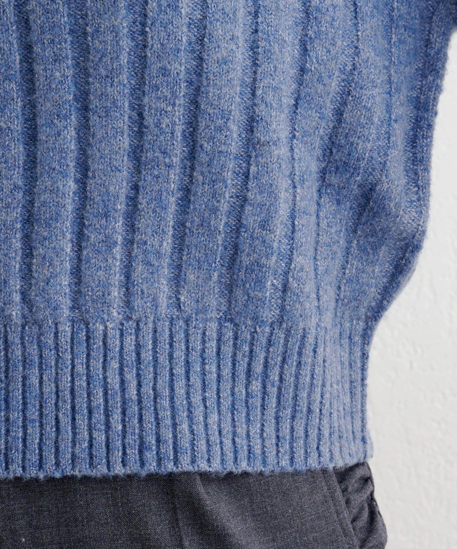 這是一款針織套頭衫,採用寬間距羅紋針織,外觀極富表現力。