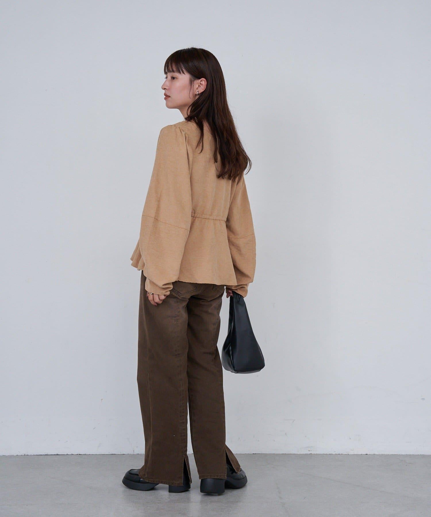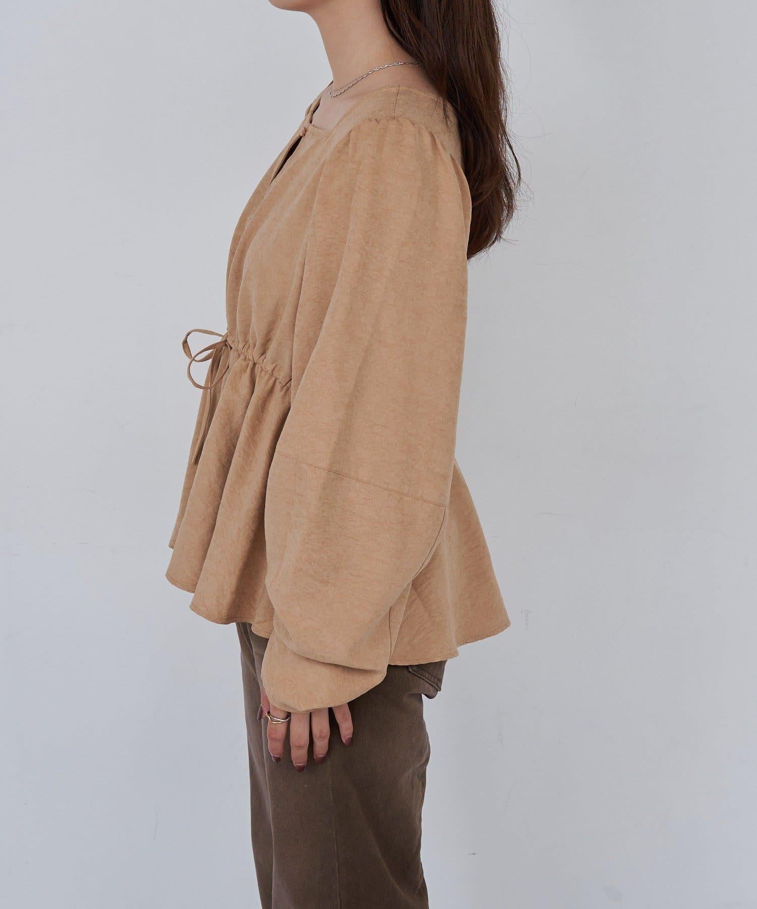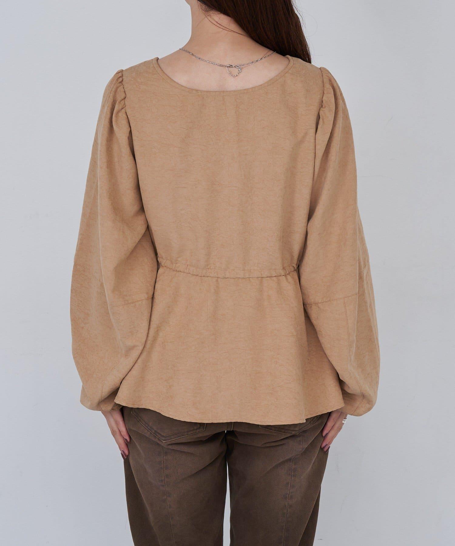 這款上衣的圓桶袖令人印象深刻。