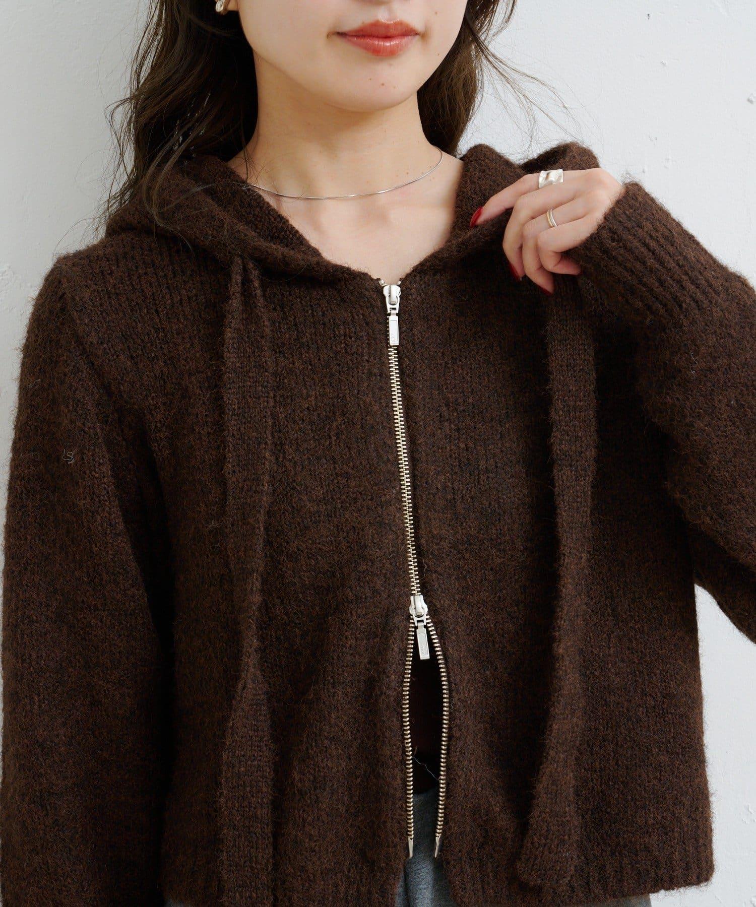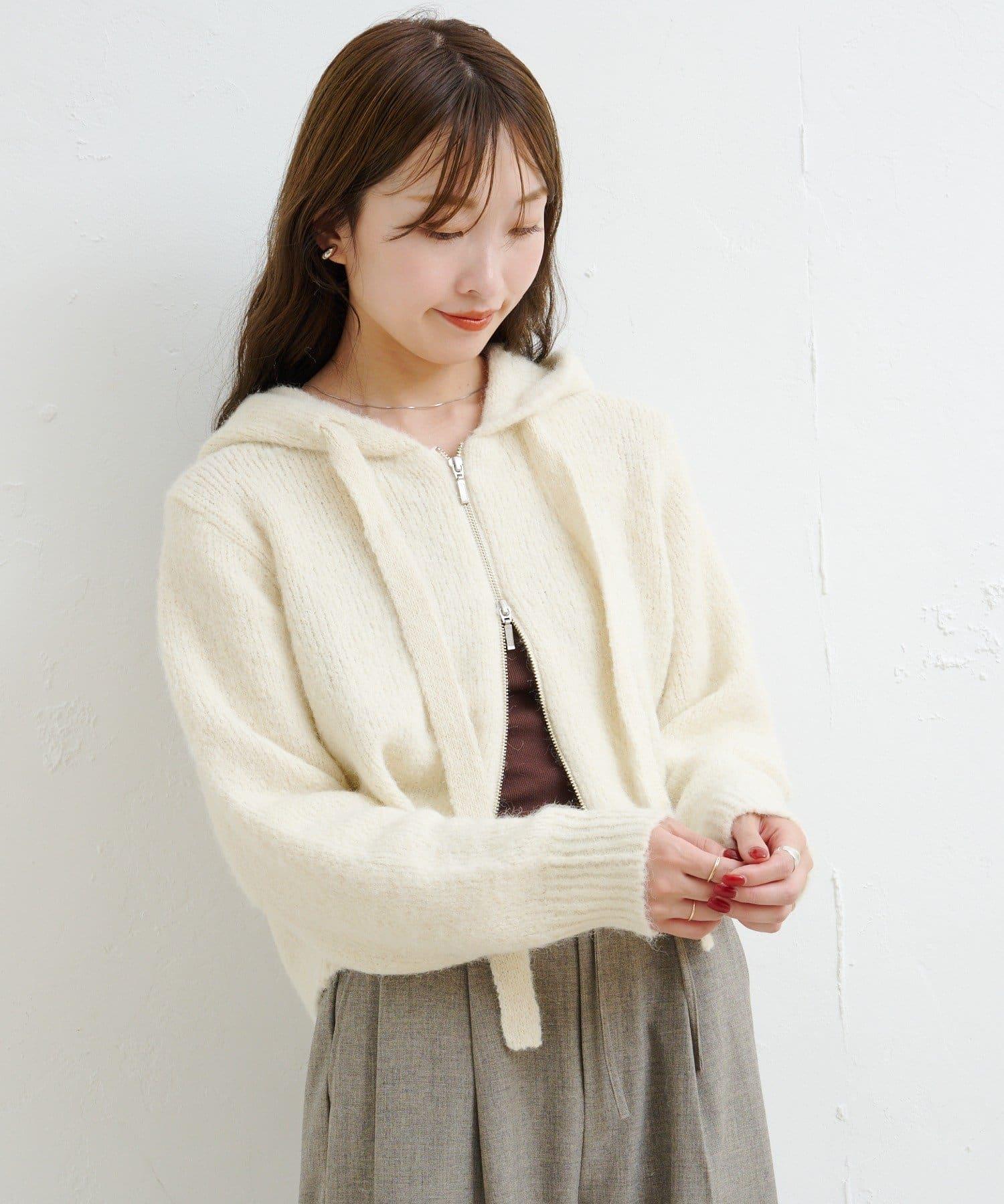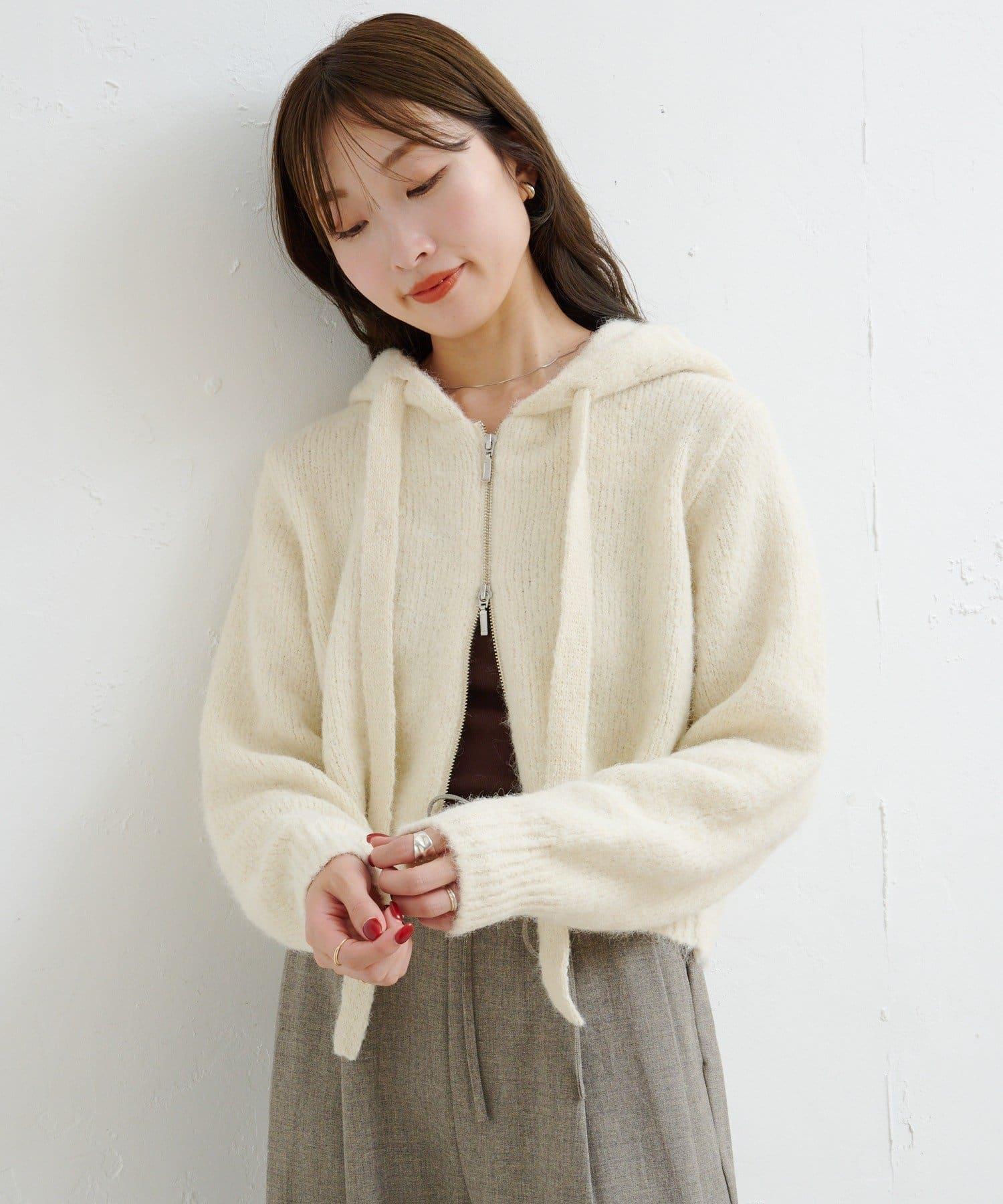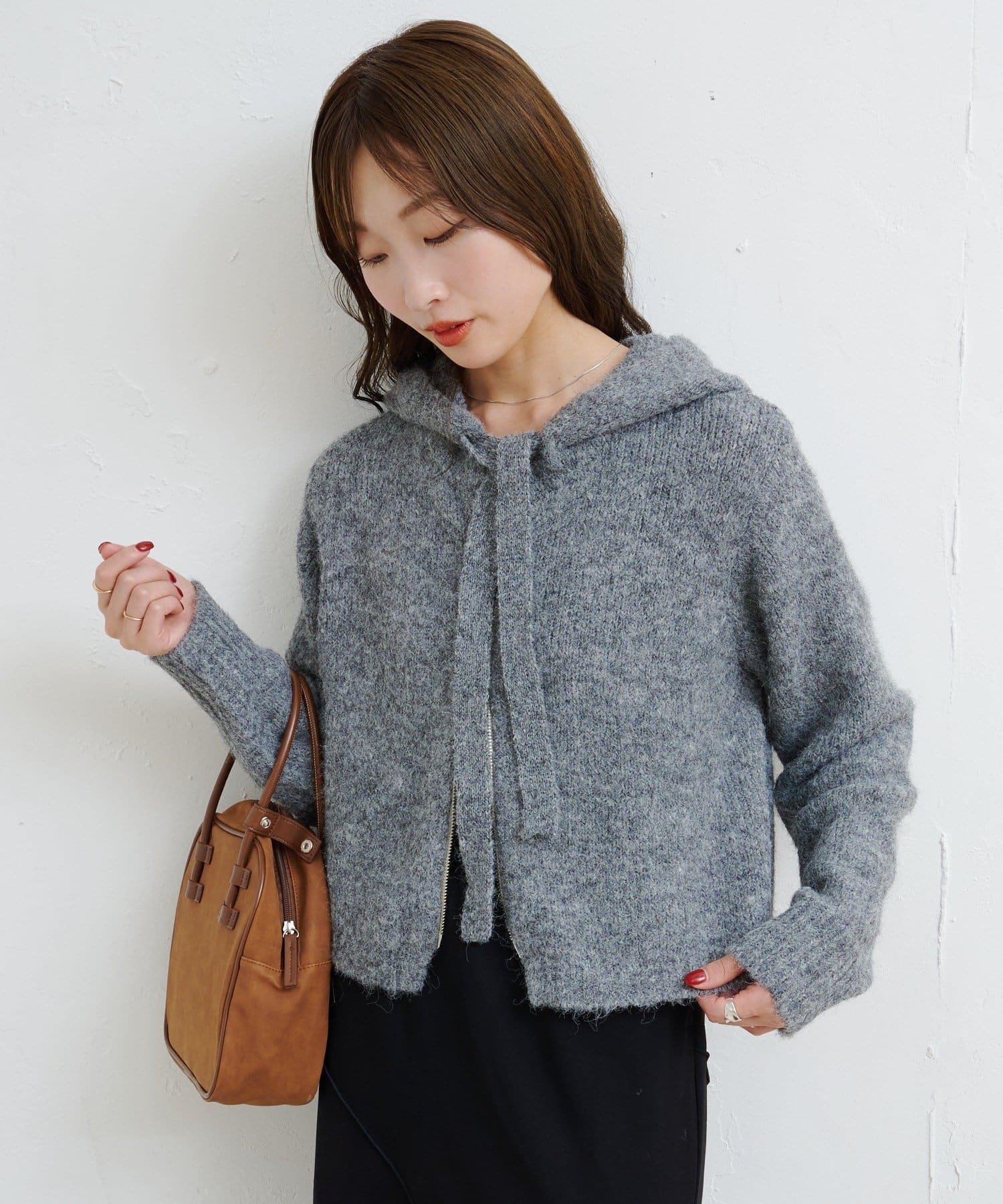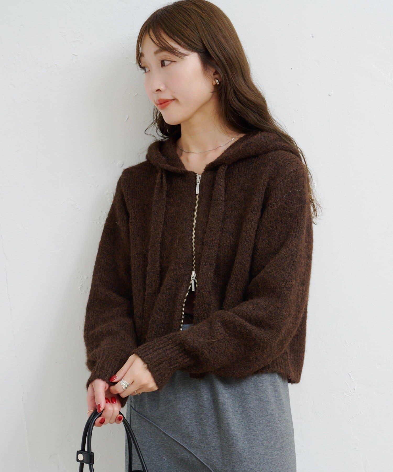 成人可愛針織派克大衣,採用柔軟的 Bouclé 面料。