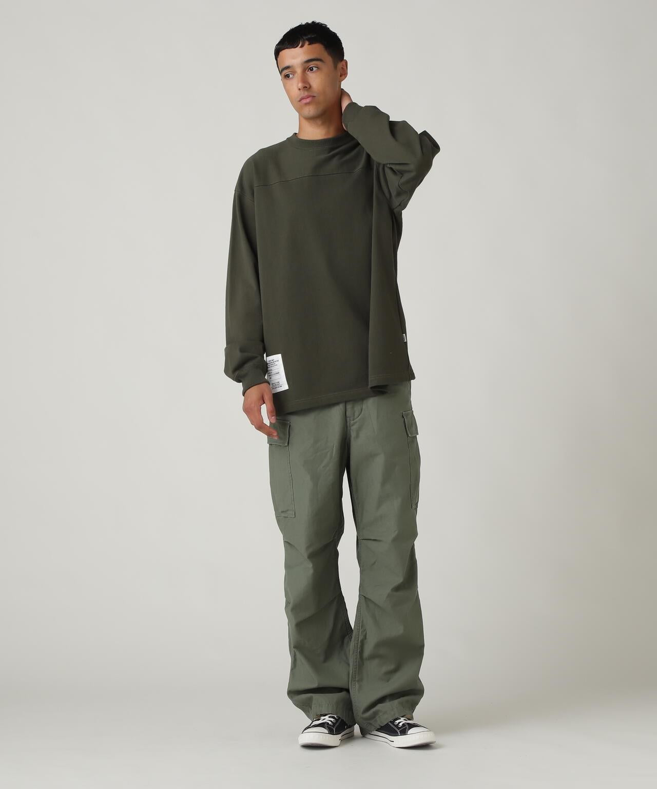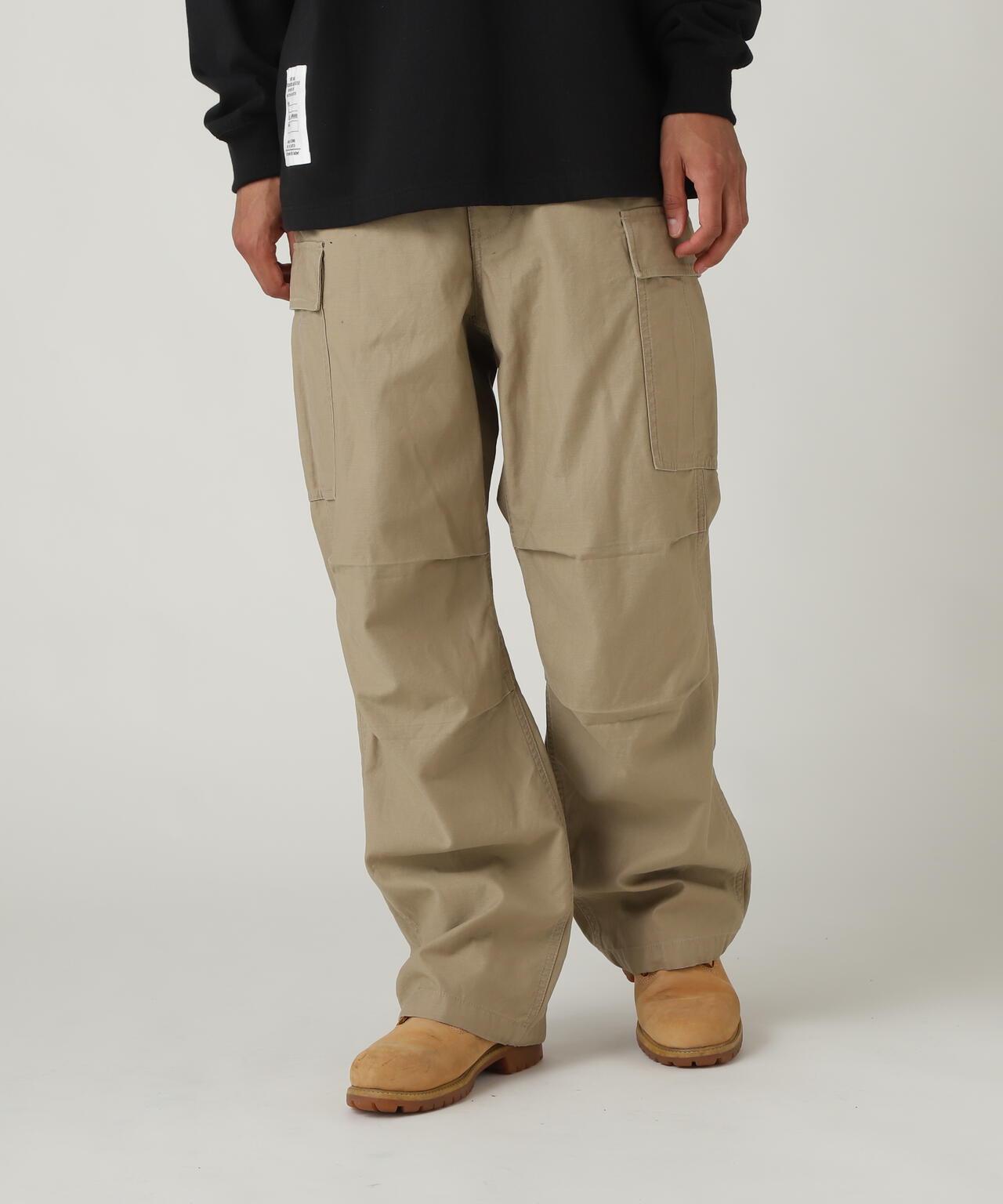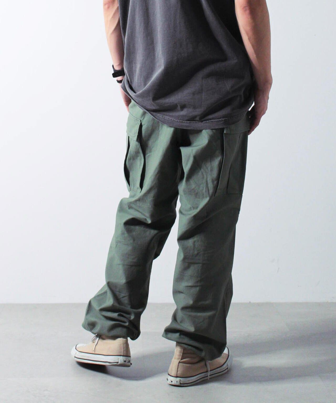 BDU 長褲是軍事時尚單品中廣為人知的貨郎褲,擁有很高的人氣。BDU 是 BATTLE DRESS UNIFORM 的縮寫,被美軍採用。與身體相匹配的腰部調節器可以讓你不繫腰帶也能穿著。口袋和下襬有翻邊。
