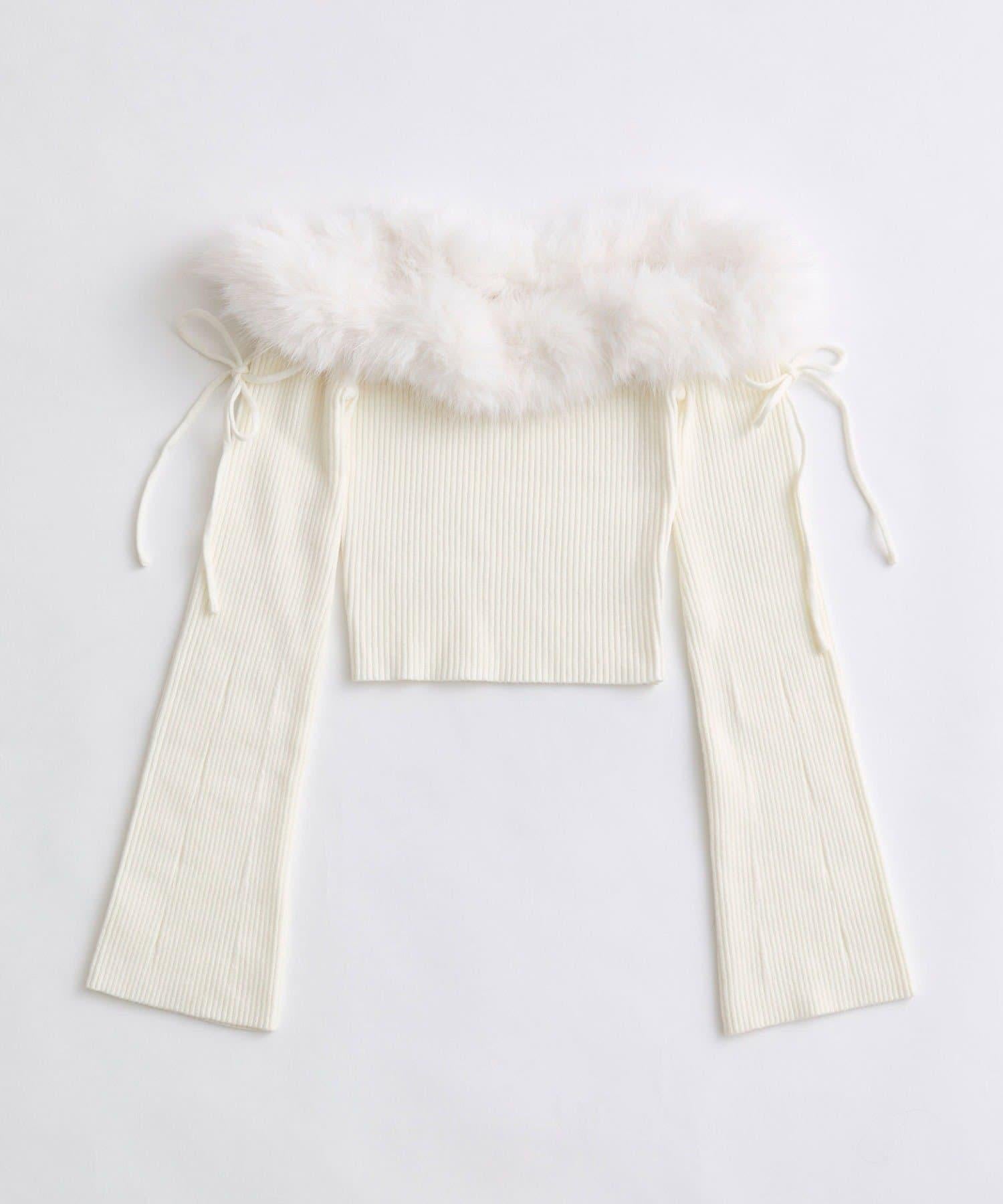 【Belle Charme】蝴蝶結毛絨一字肩針織衫