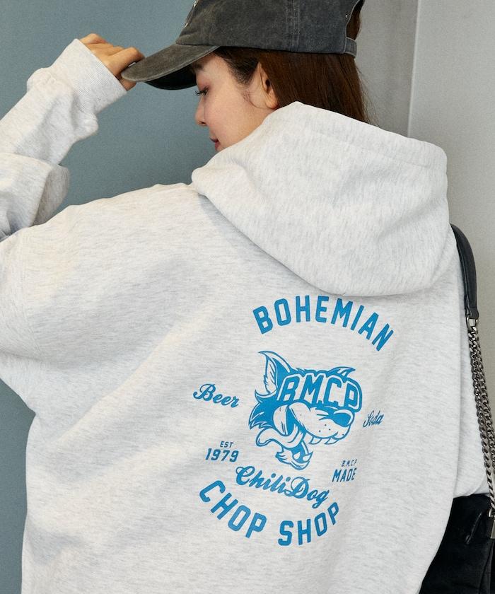 連帽衫背面的大面積狼印設計極具衝擊力。
