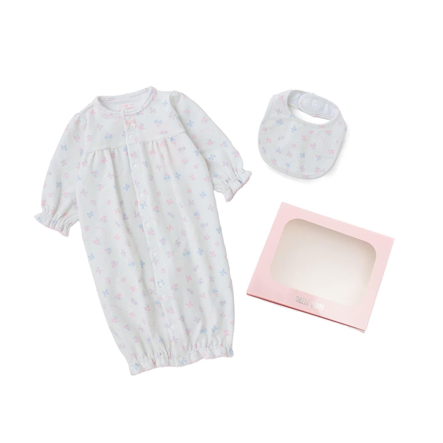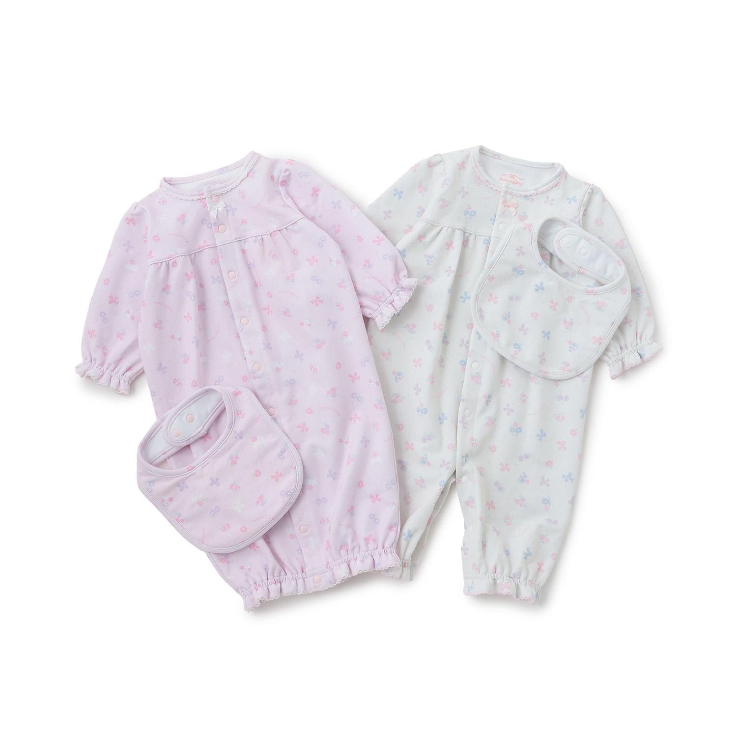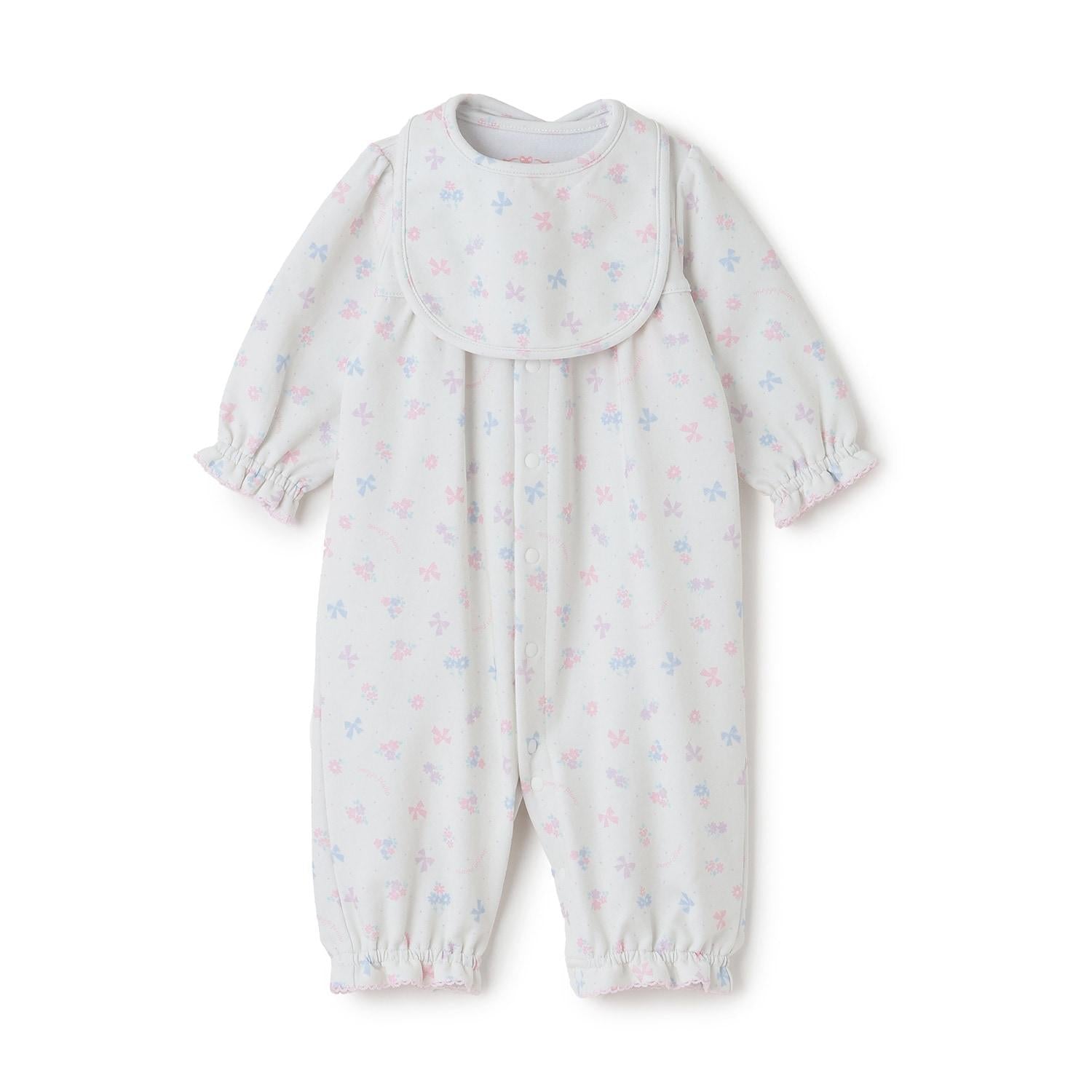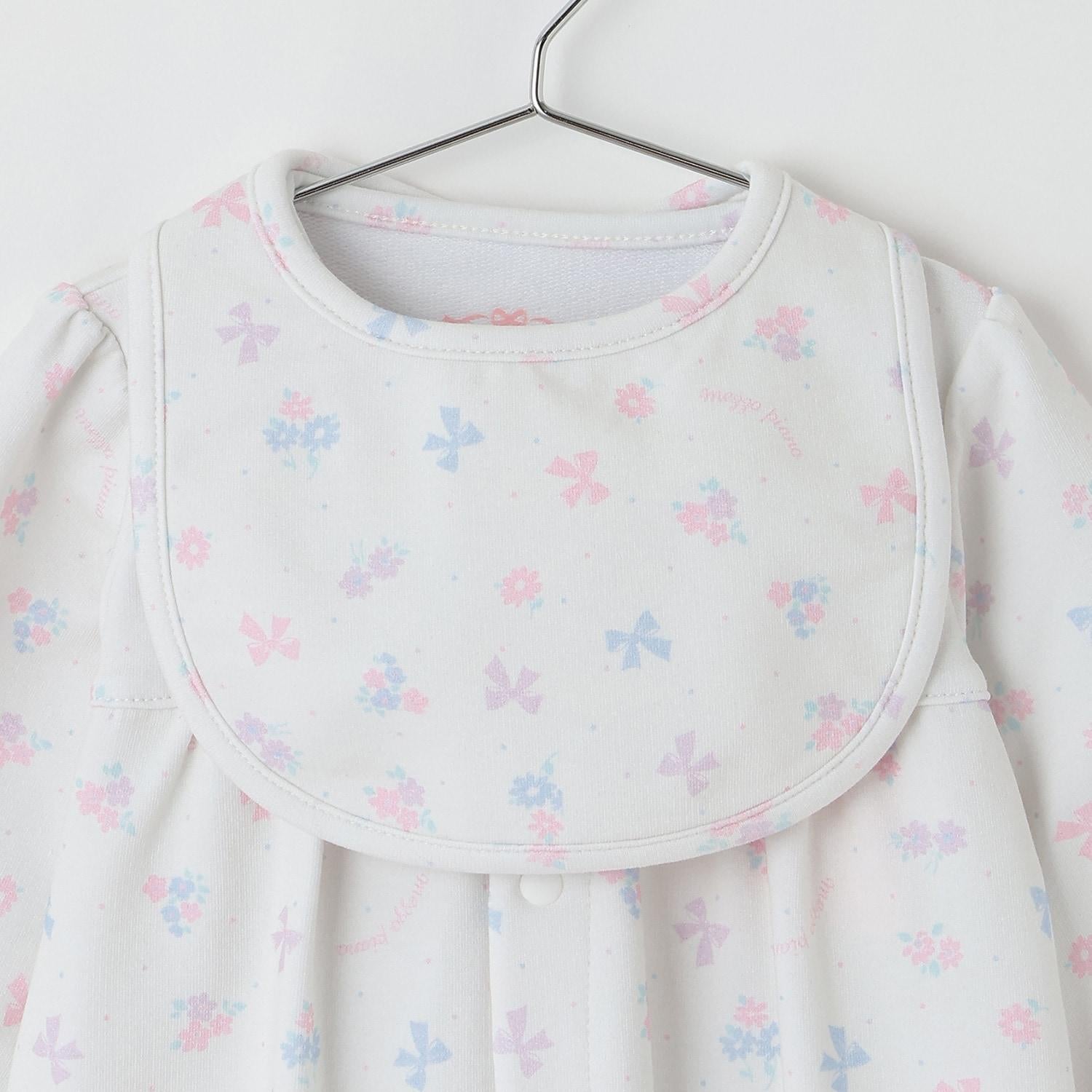【BOX付】花朵蝴蝶結圖案2用連體衣&圍兜套裝