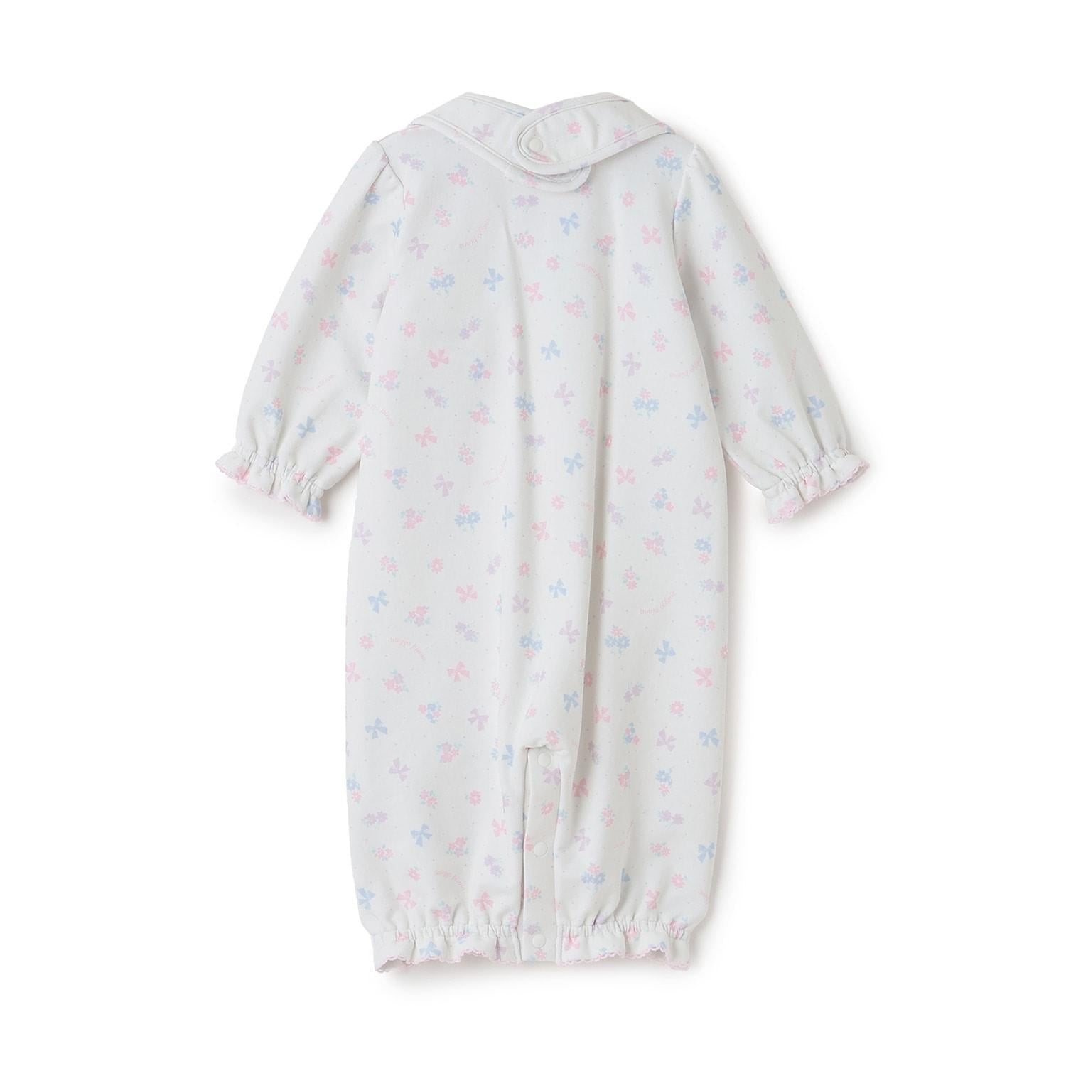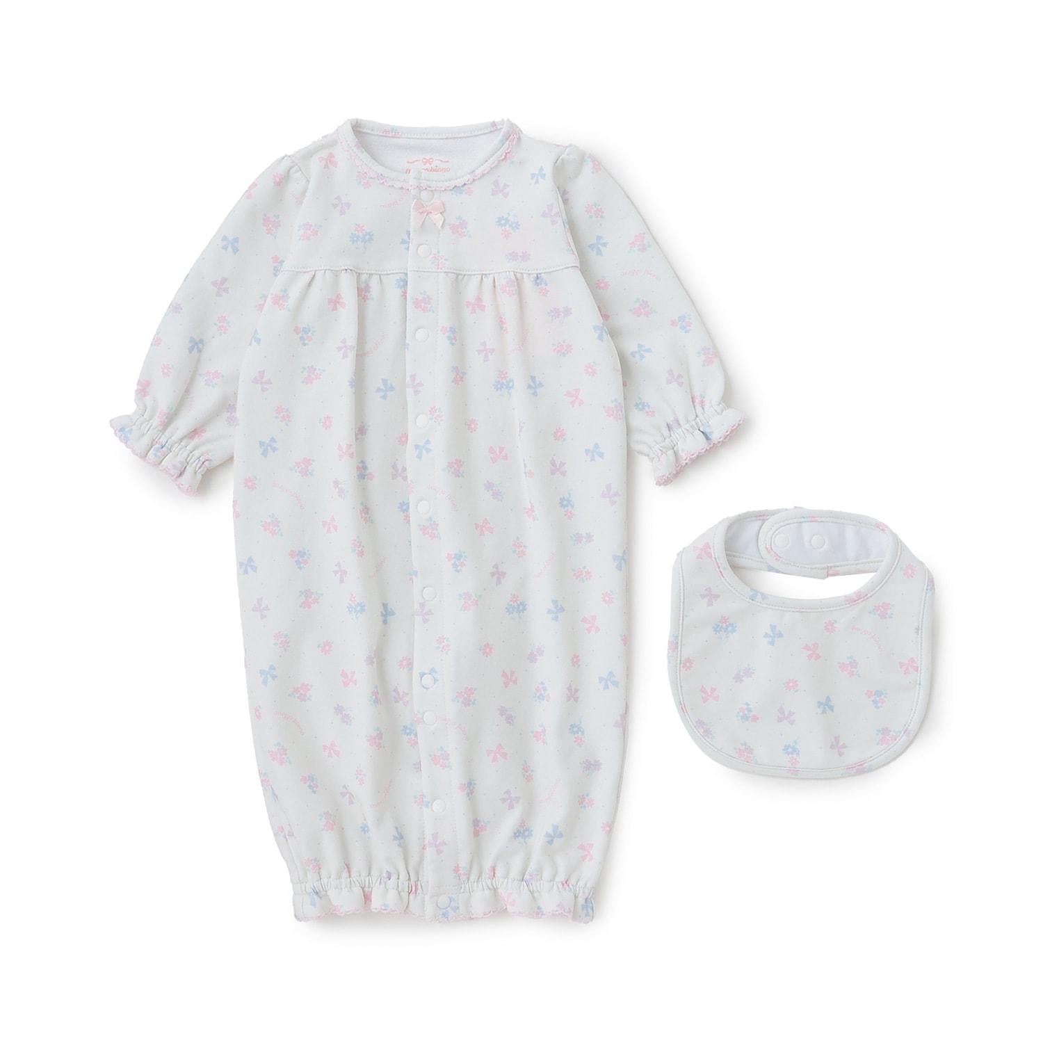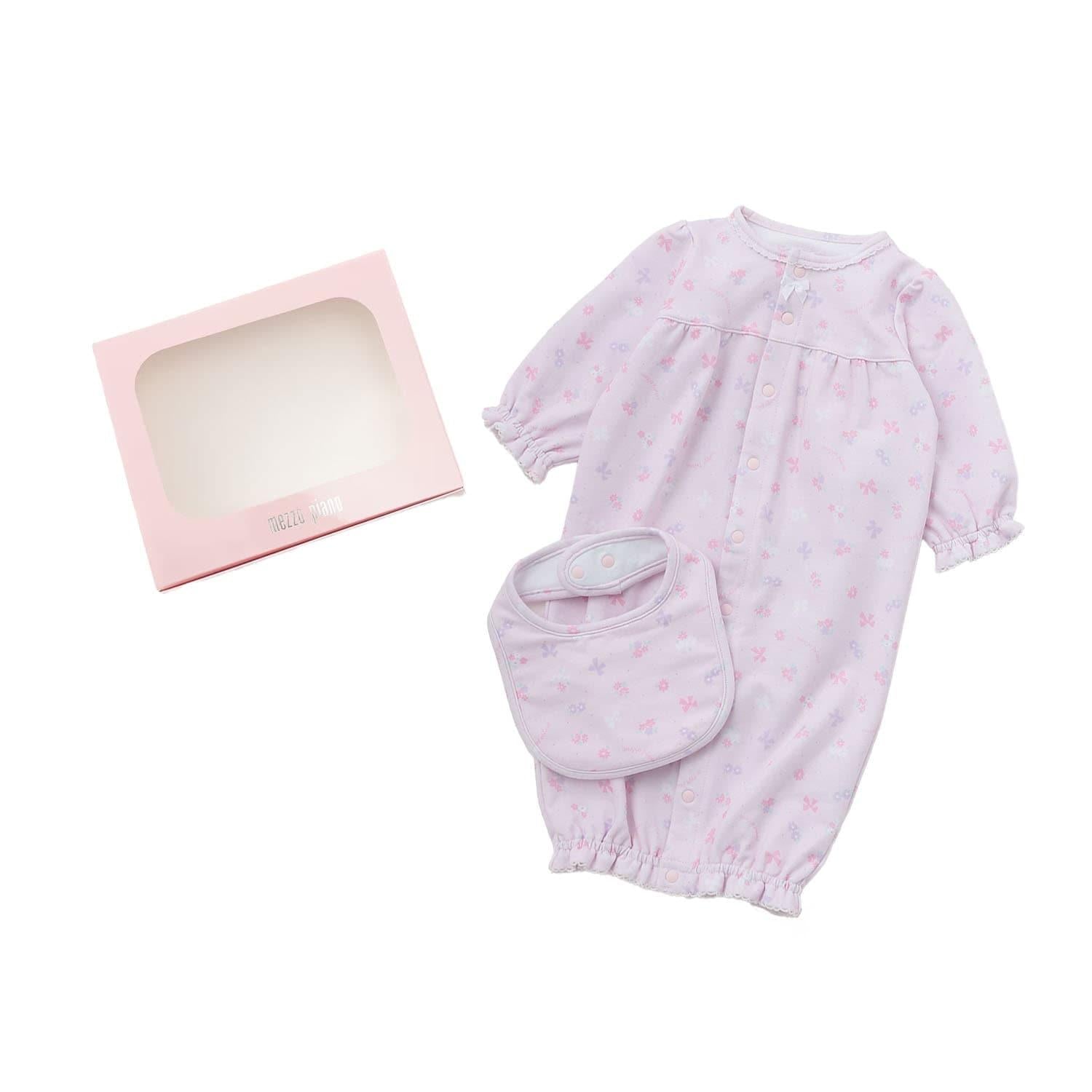 【BOX付】花朵蝴蝶結圖案2用連體衣&圍兜套裝