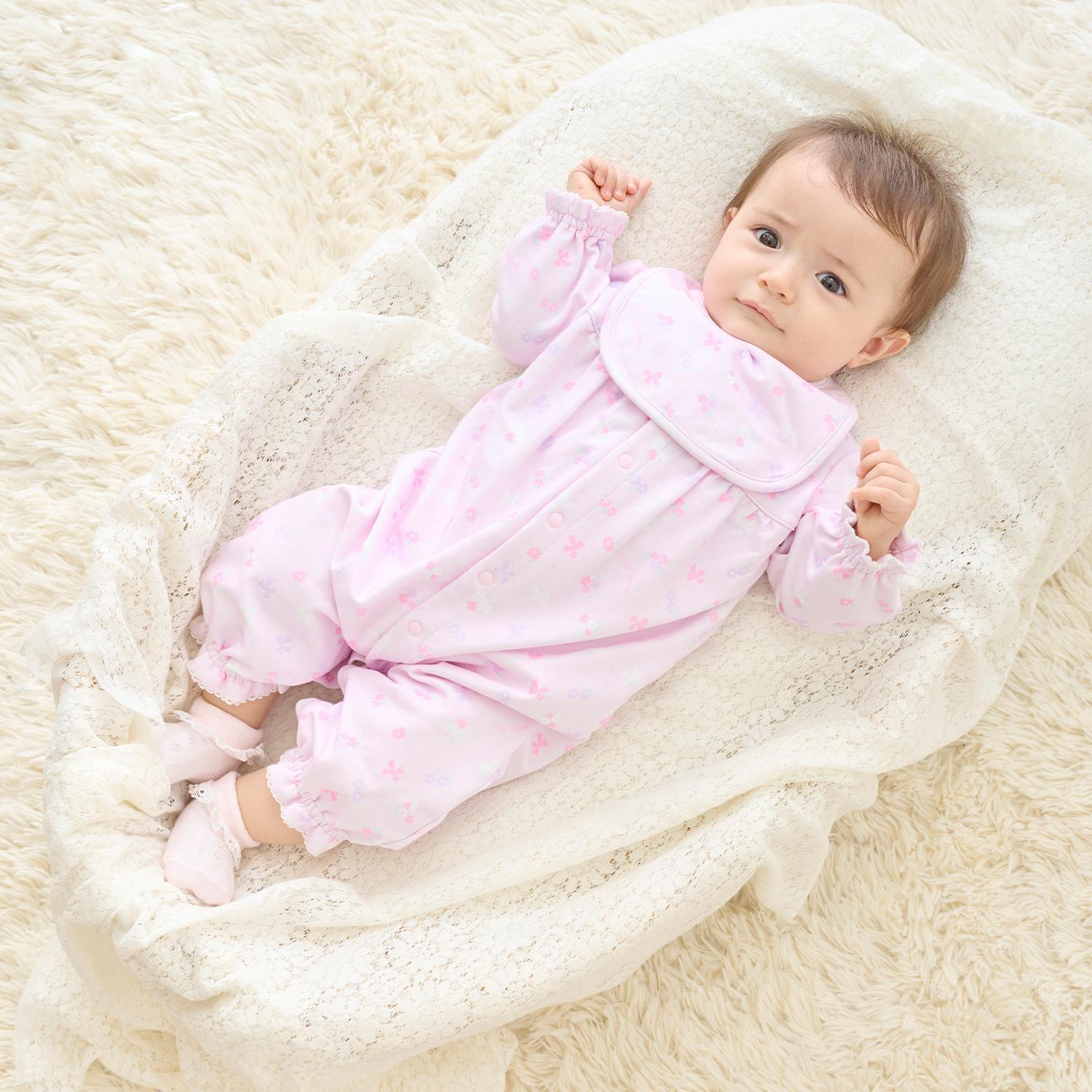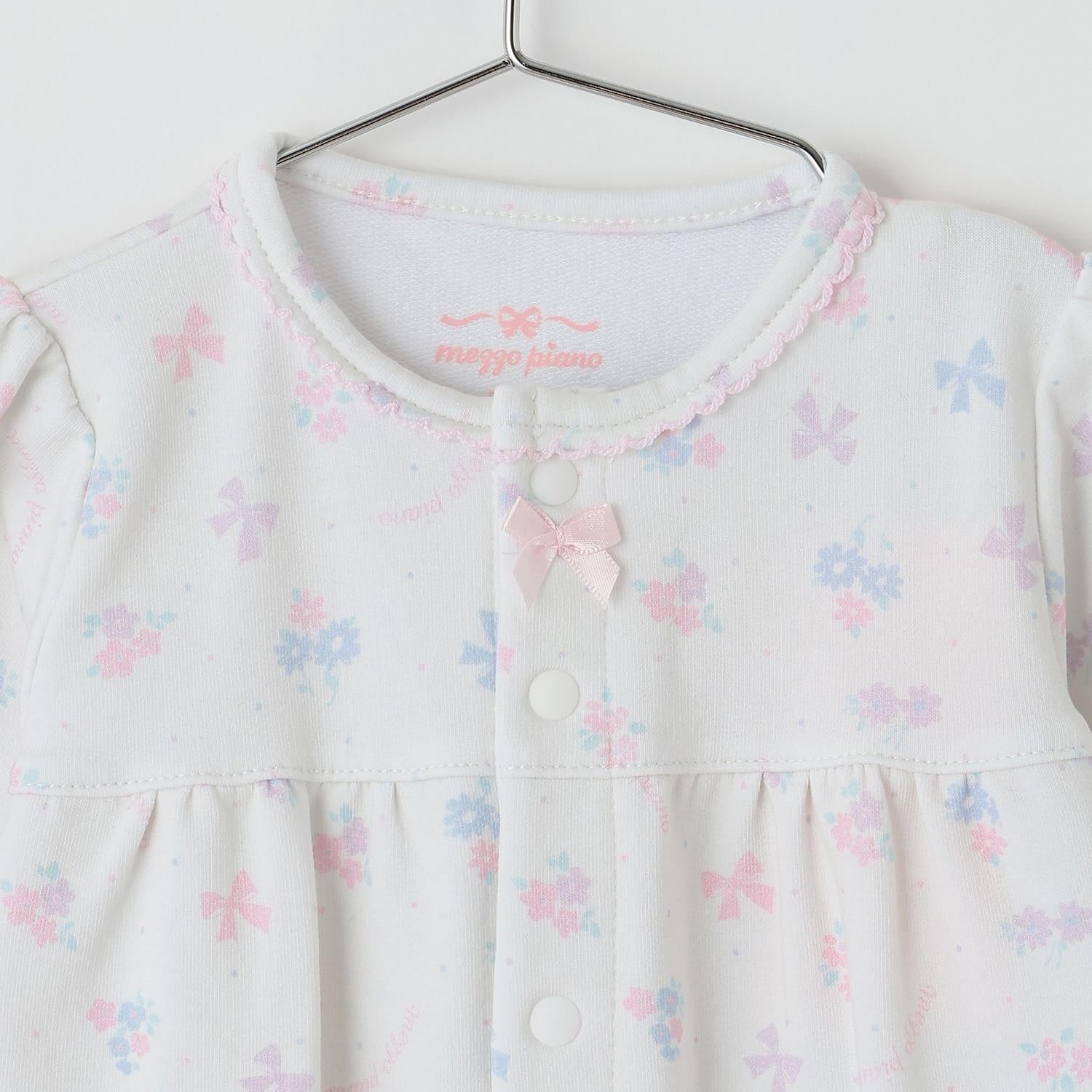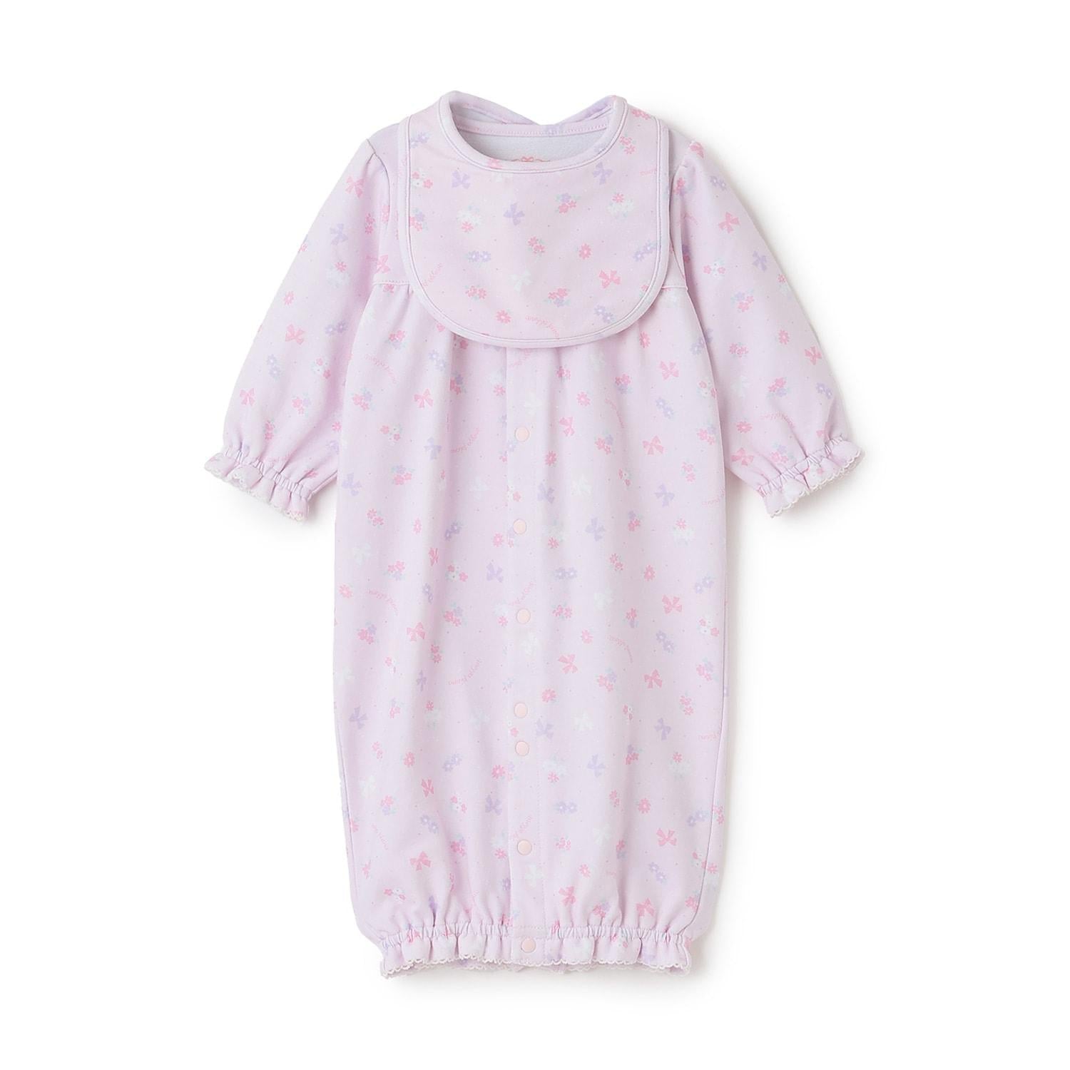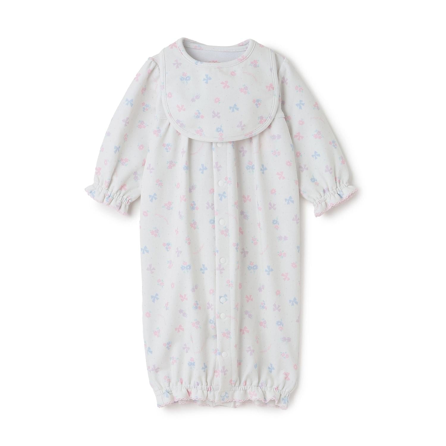 【BOX付】花朵蝴蝶結圖案2用連體衣&圍兜套裝
