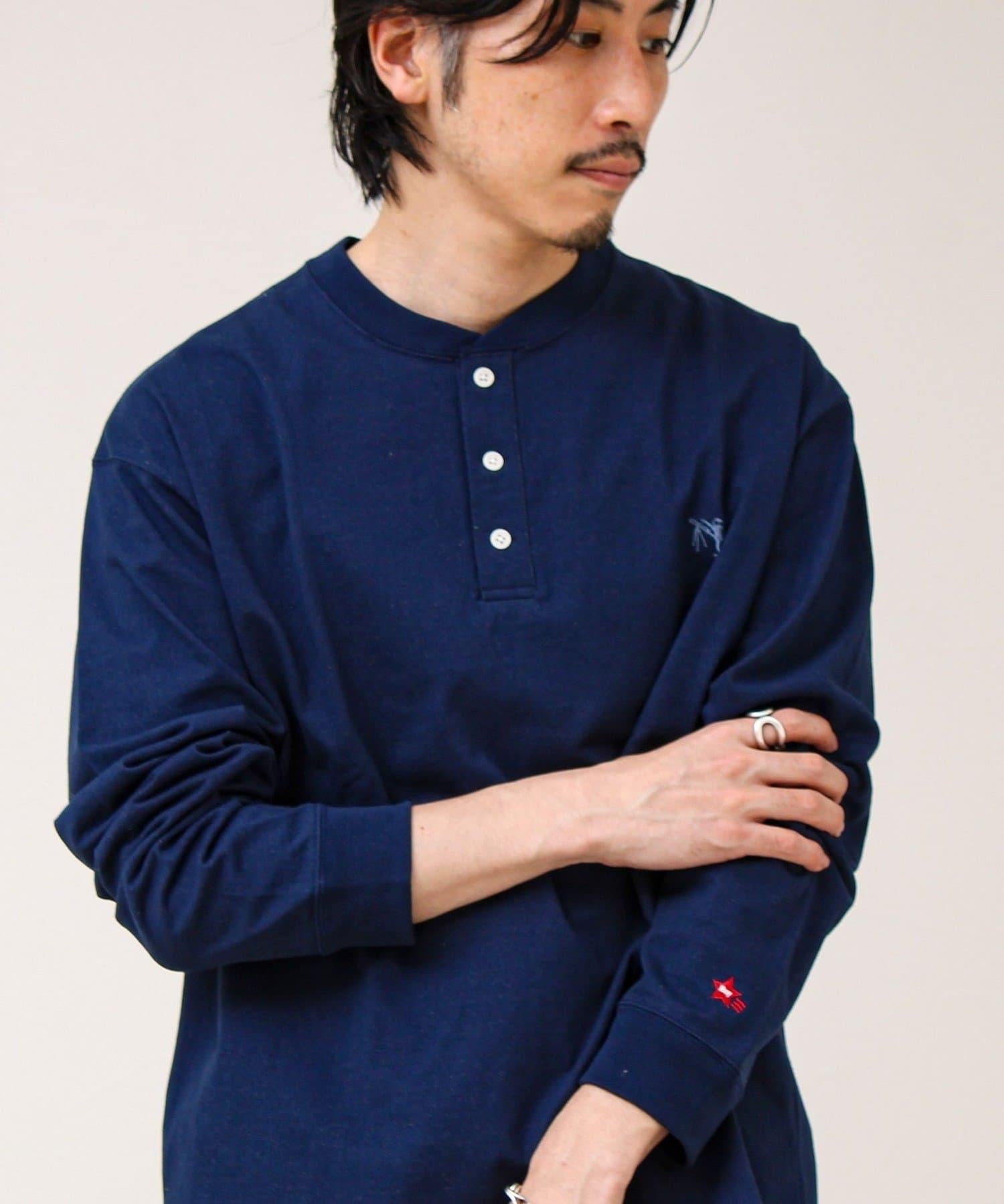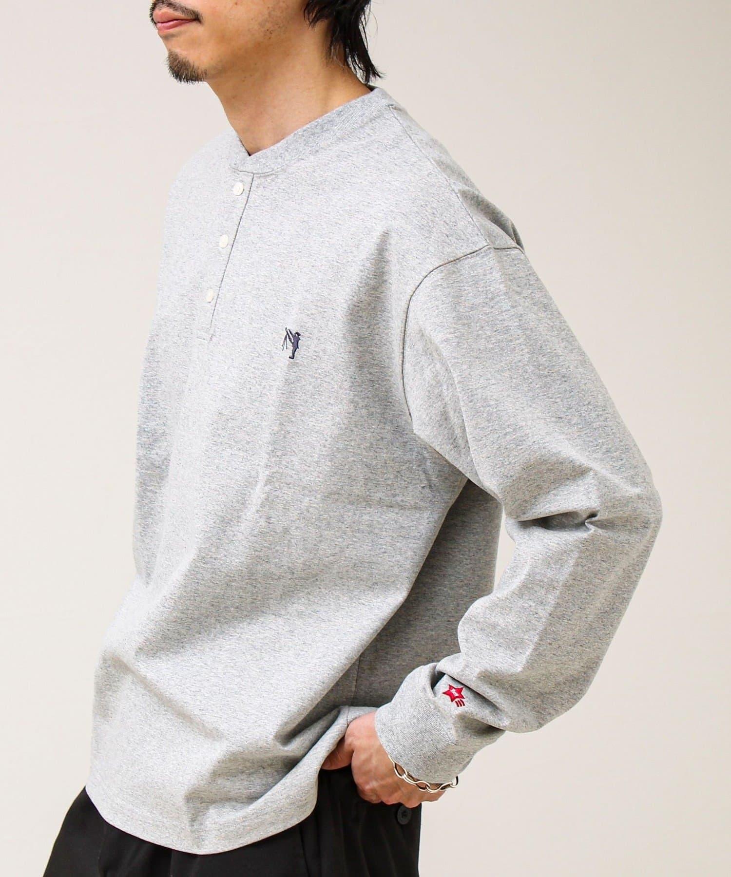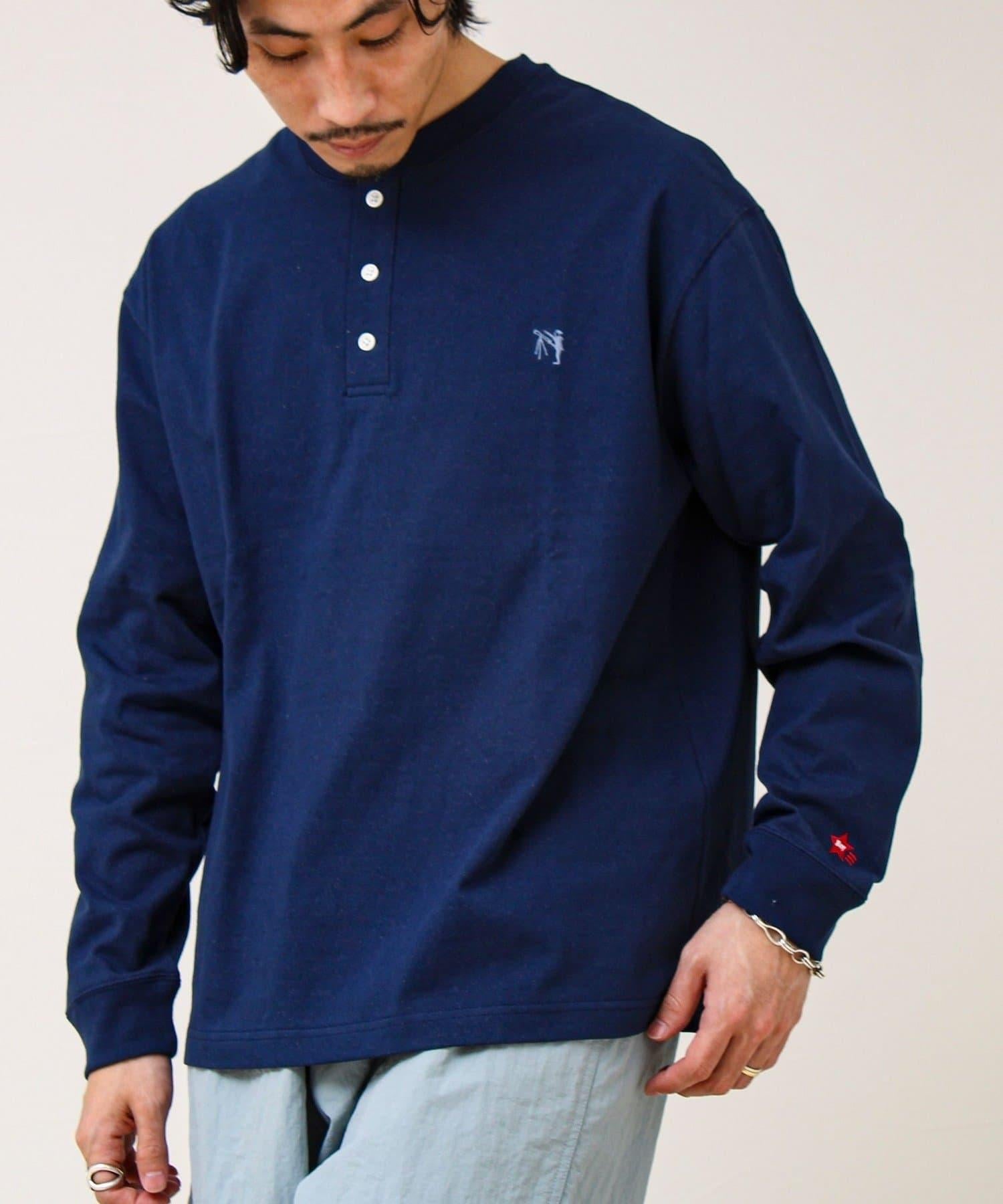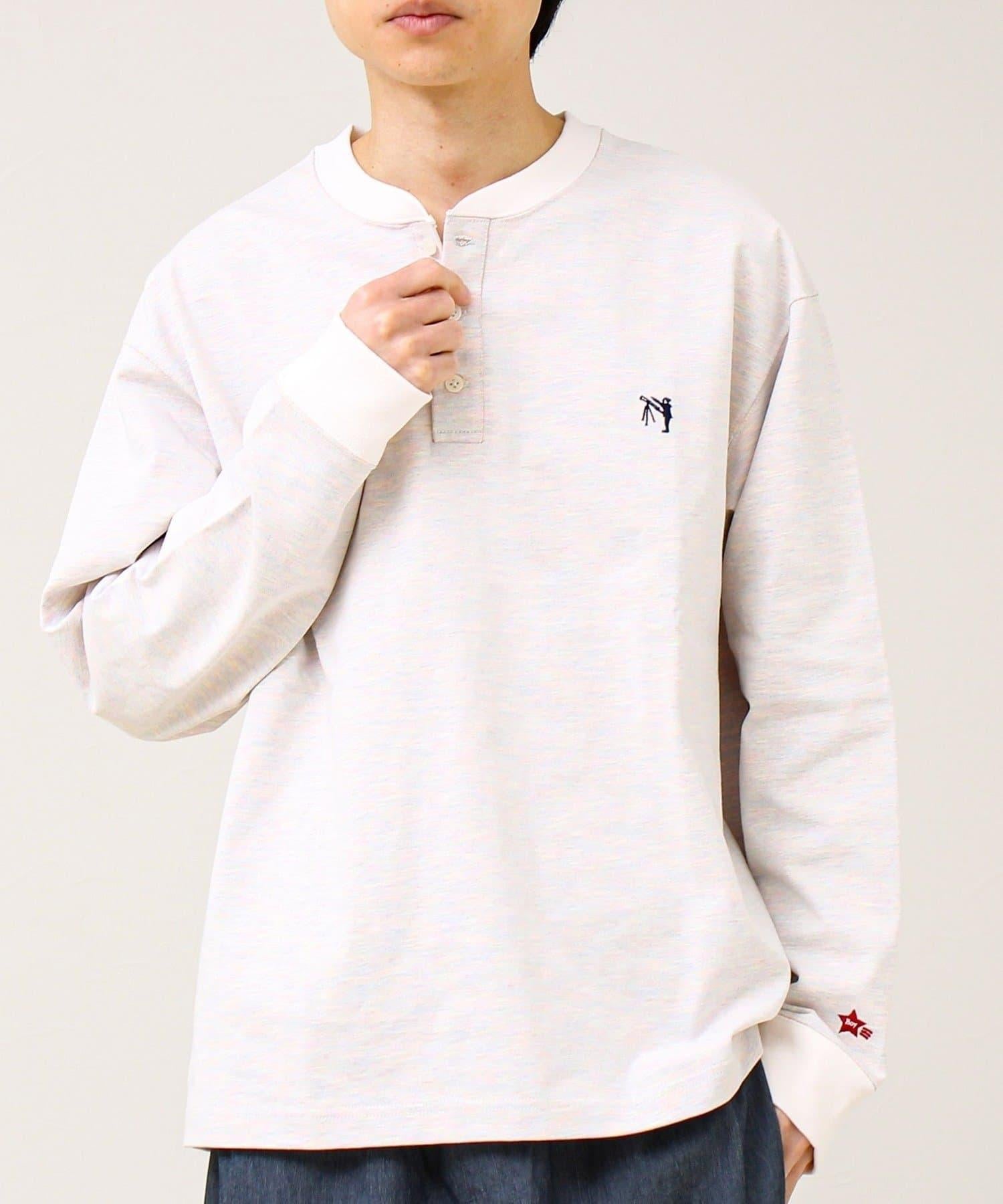BOY刺繡 內裡漸變 亨利領 長袖T恤
