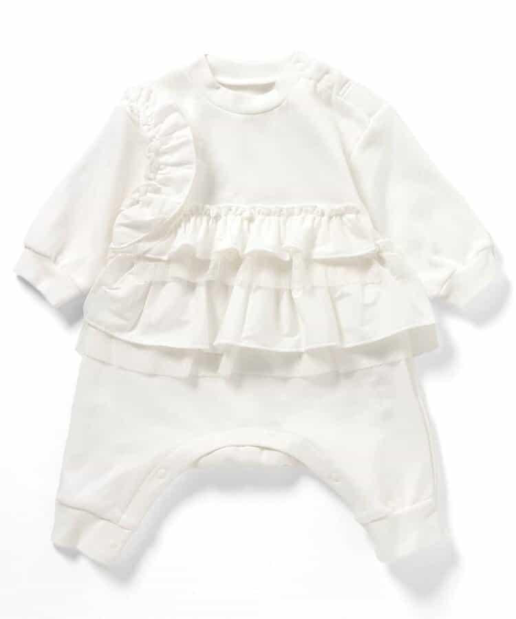 Breeze 的連體服和連身褲 "Bpop Ruffle Docking Coveralls "以其成人風格的設計而備受歡迎,小巧的衣服卻蘊含著無窮的魅力!還建議將其作為嬰兒洗禮的禮物。