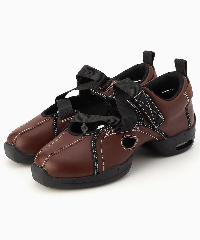 棕色皮革鞋身搭配白色線條,給人以休閒而精緻的印象。