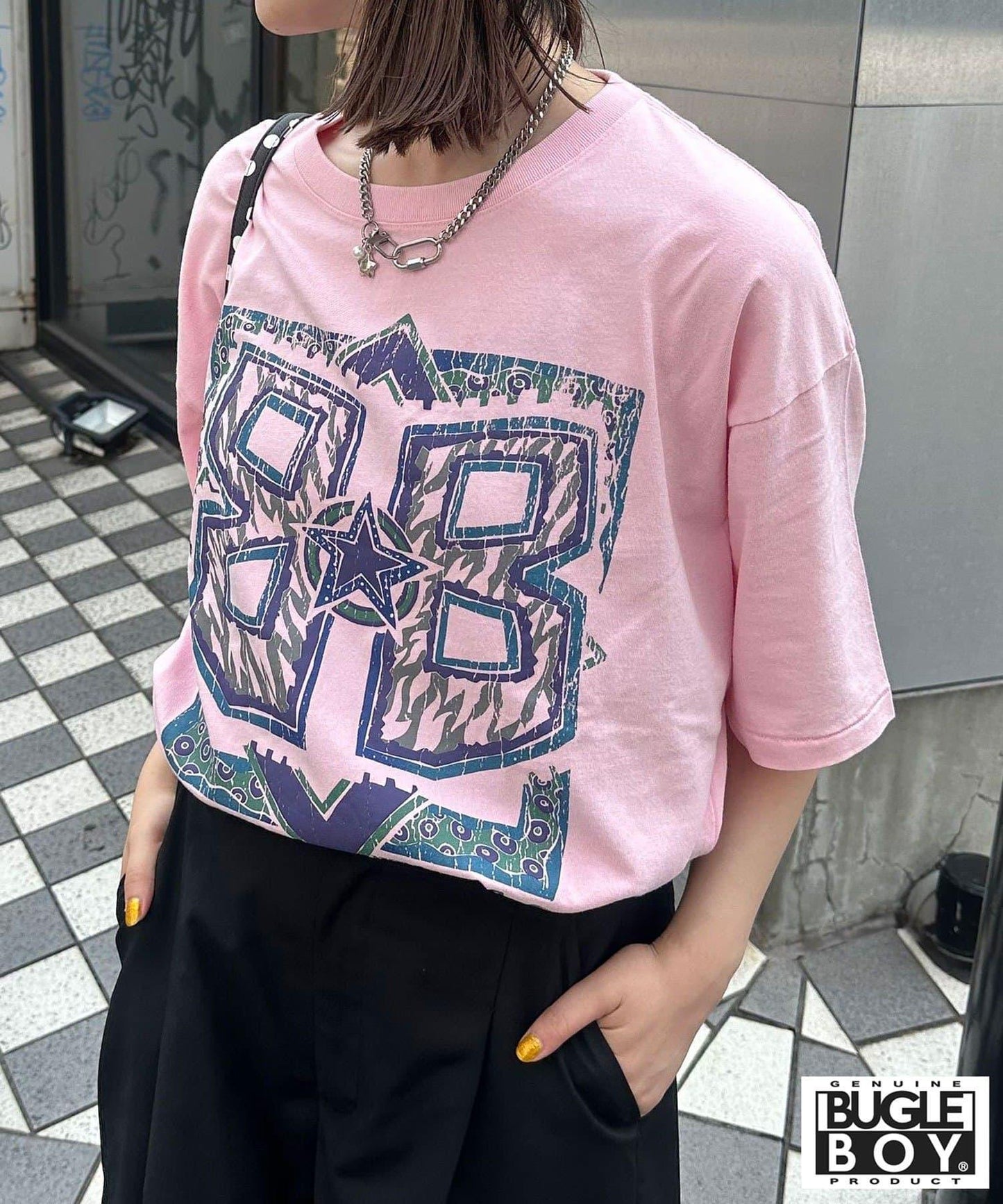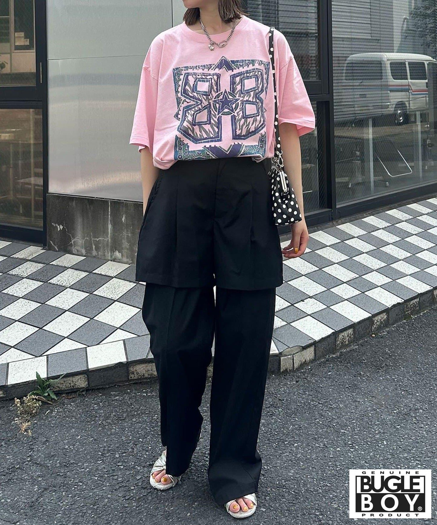 如果用配飾和手袋增添俏皮感,即使是休閒的 T 恤也能瞬間變成寬鬆的協調造型。