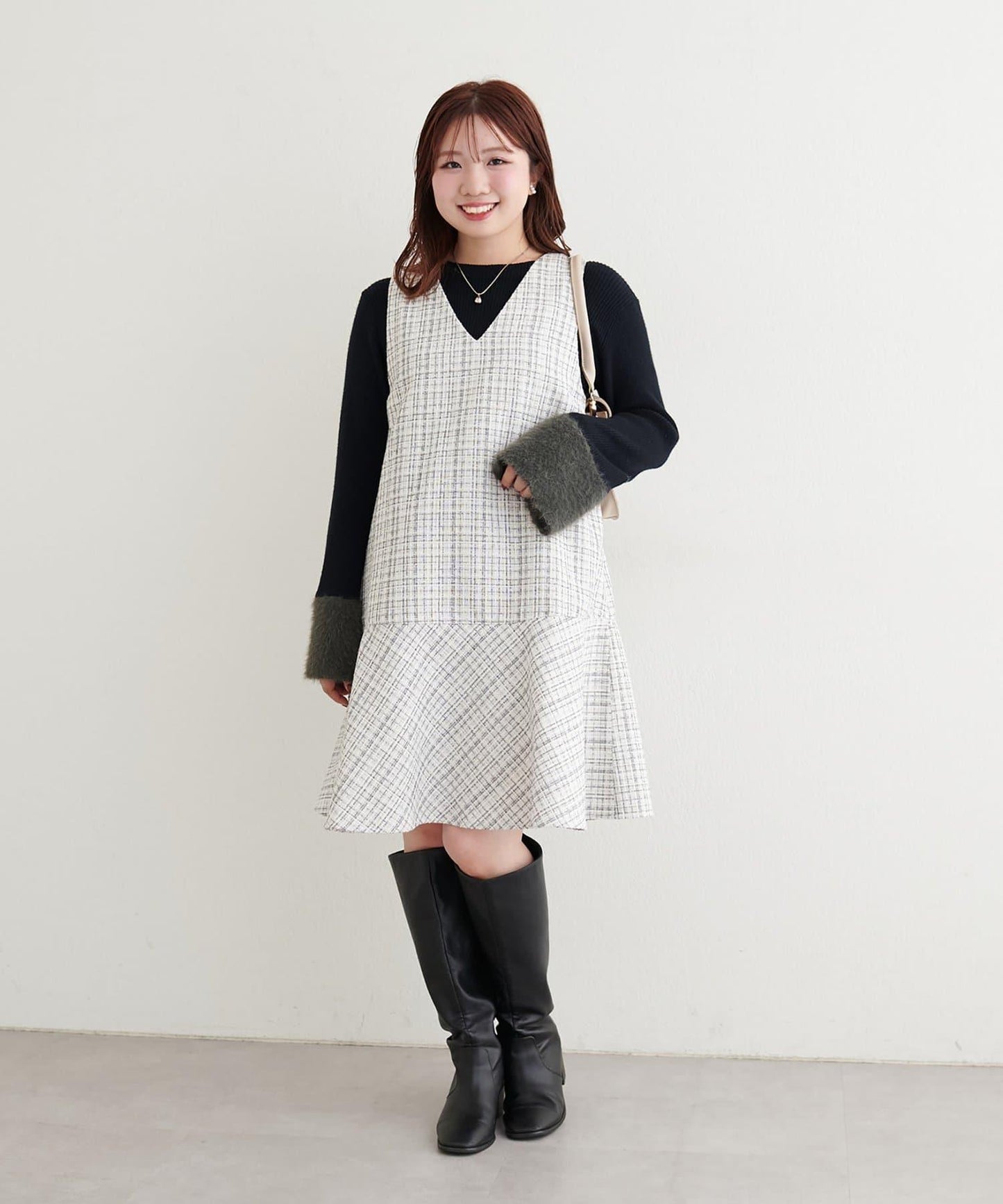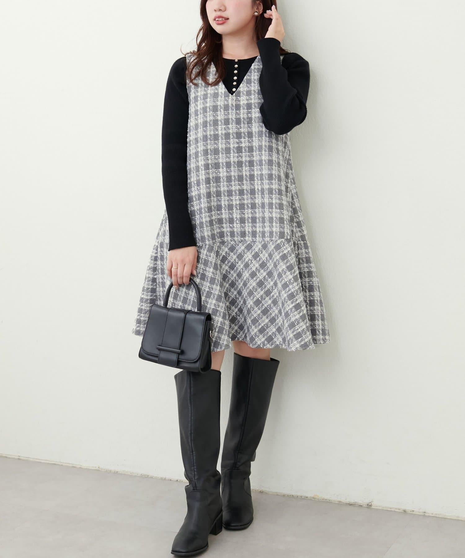 這款連衣裙採用斜紋軟呢面料,優雅迷人,是秋冬外出的完美之選。