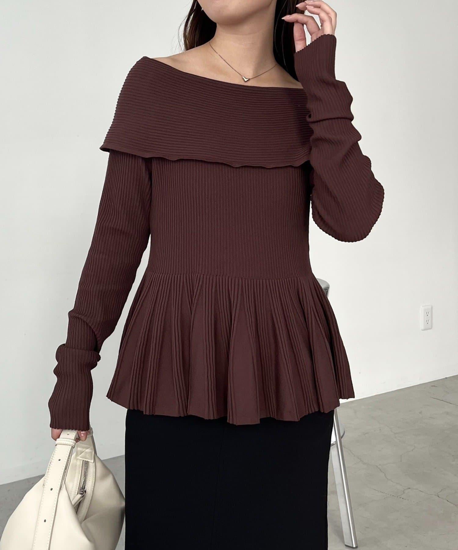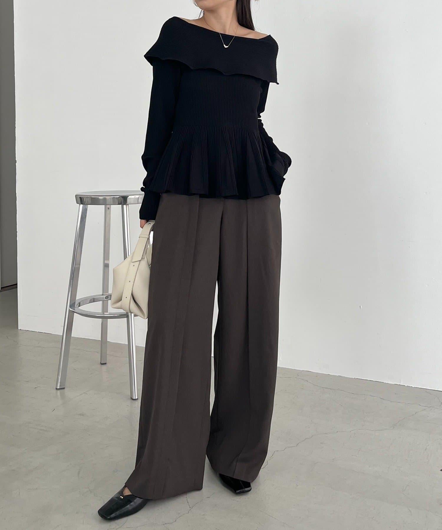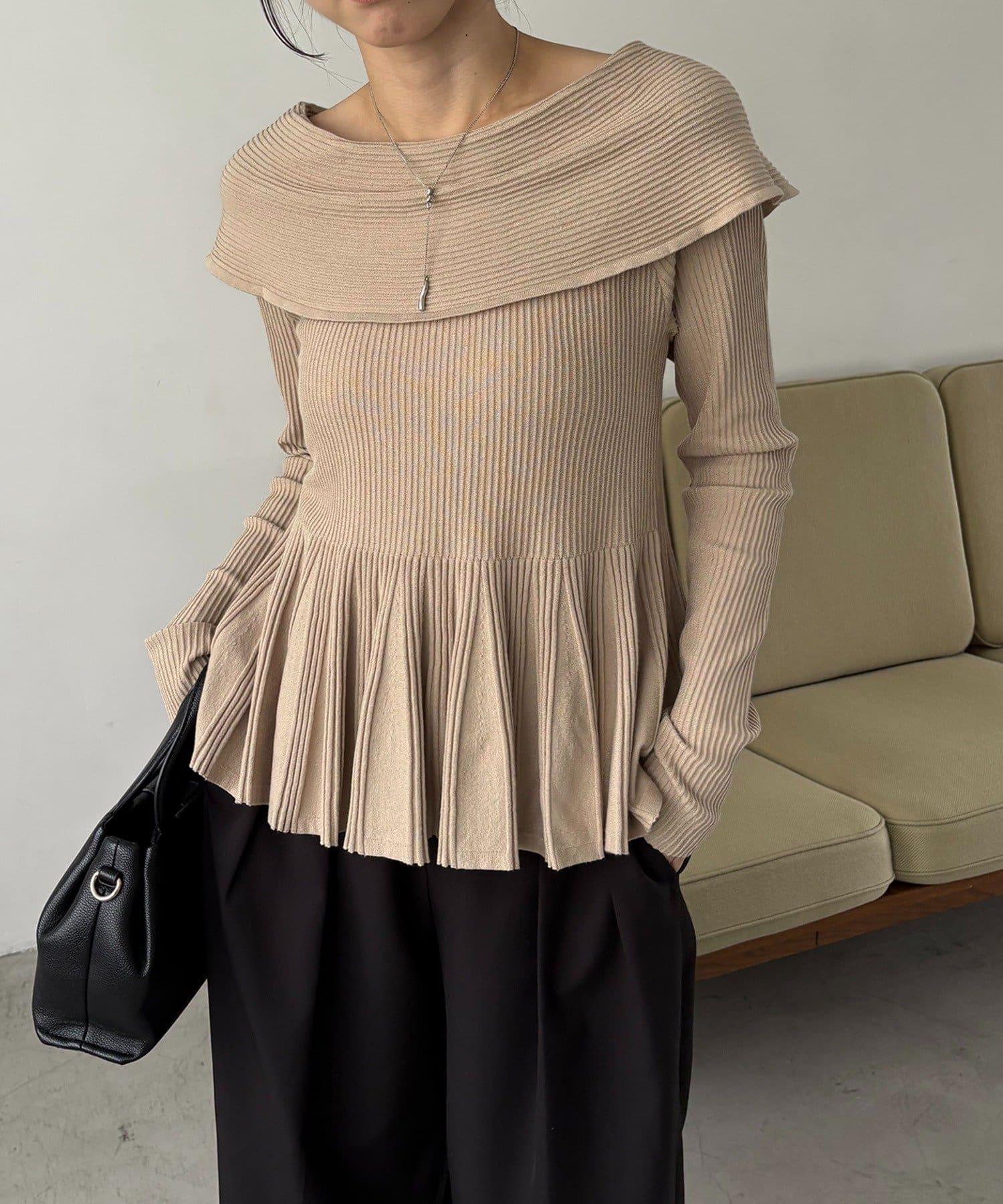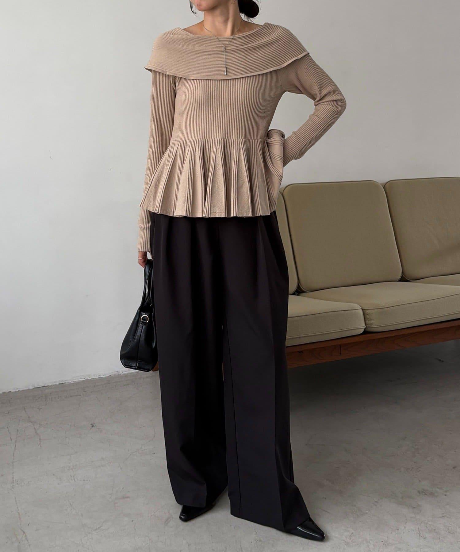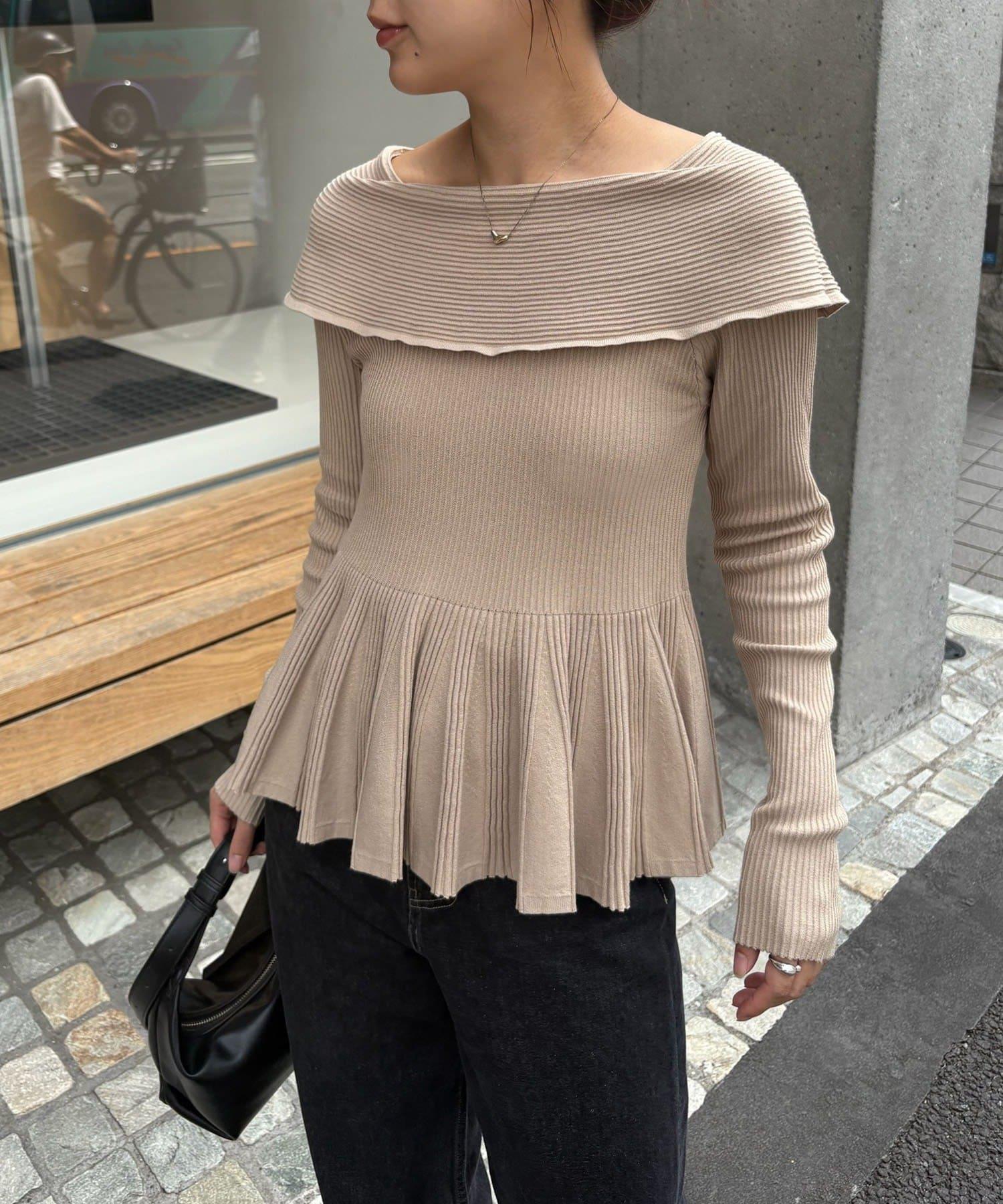 【CAPRICIEUX LE'MAGE】喇叭袖一字領針織衫