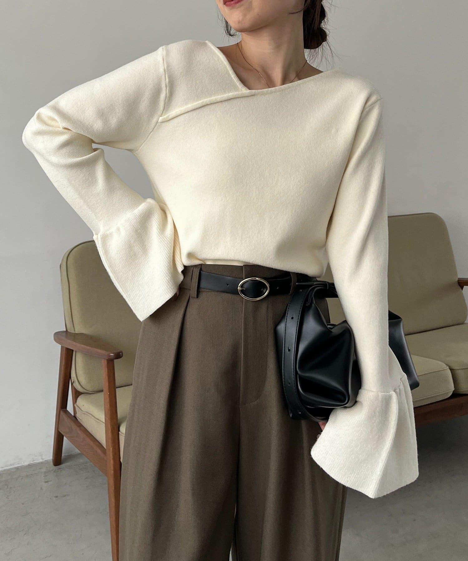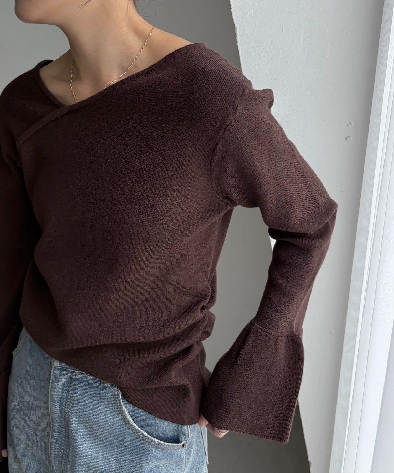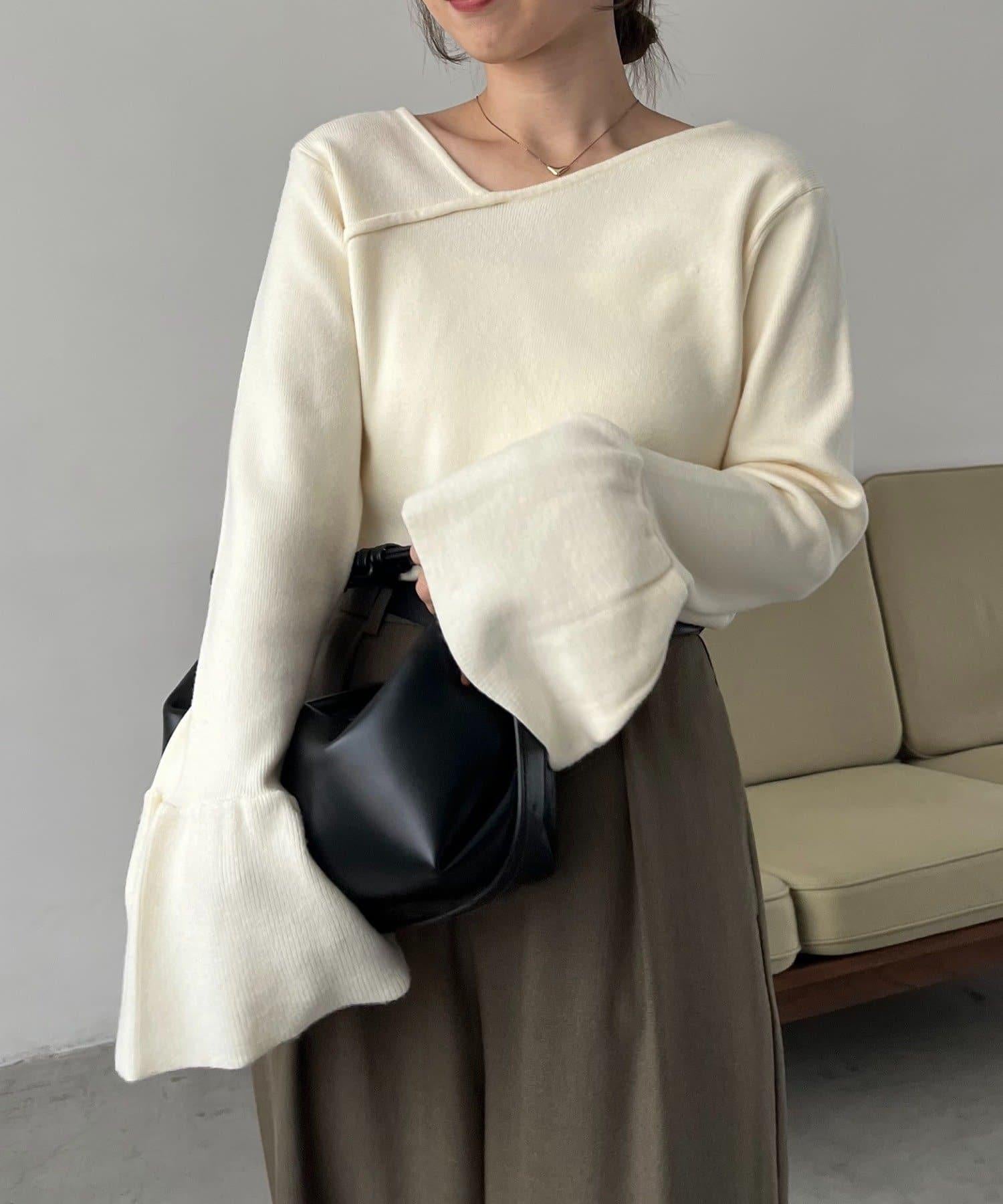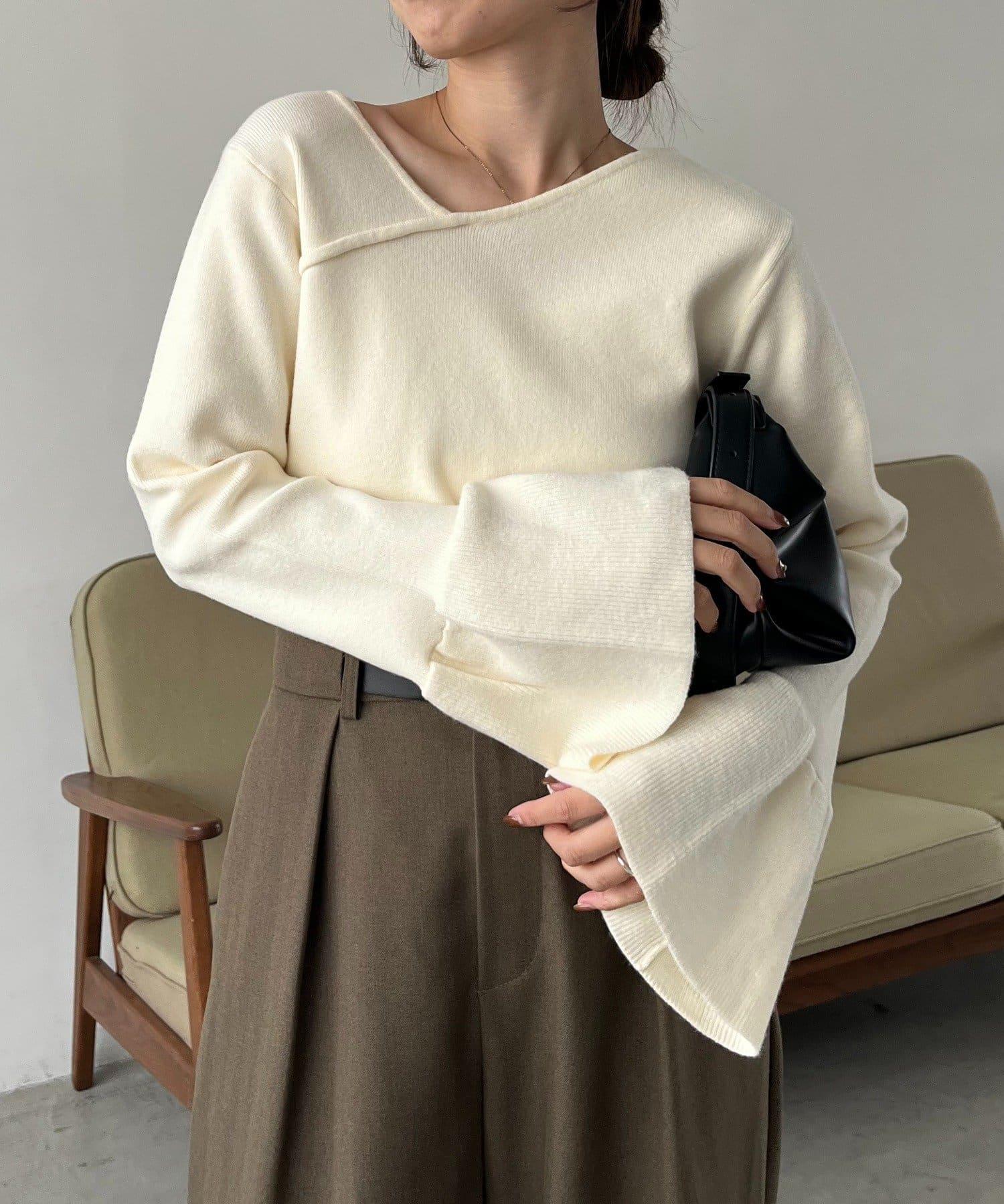 CAPRICIEUX LE'MAGE 喇叭袖 不對稱領 針織上衣