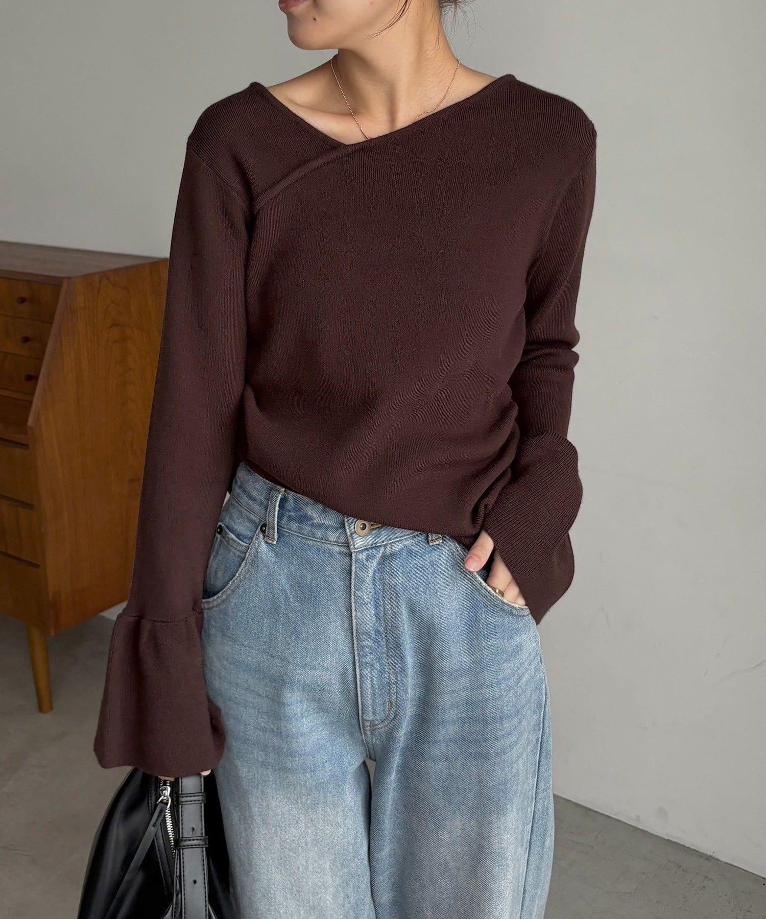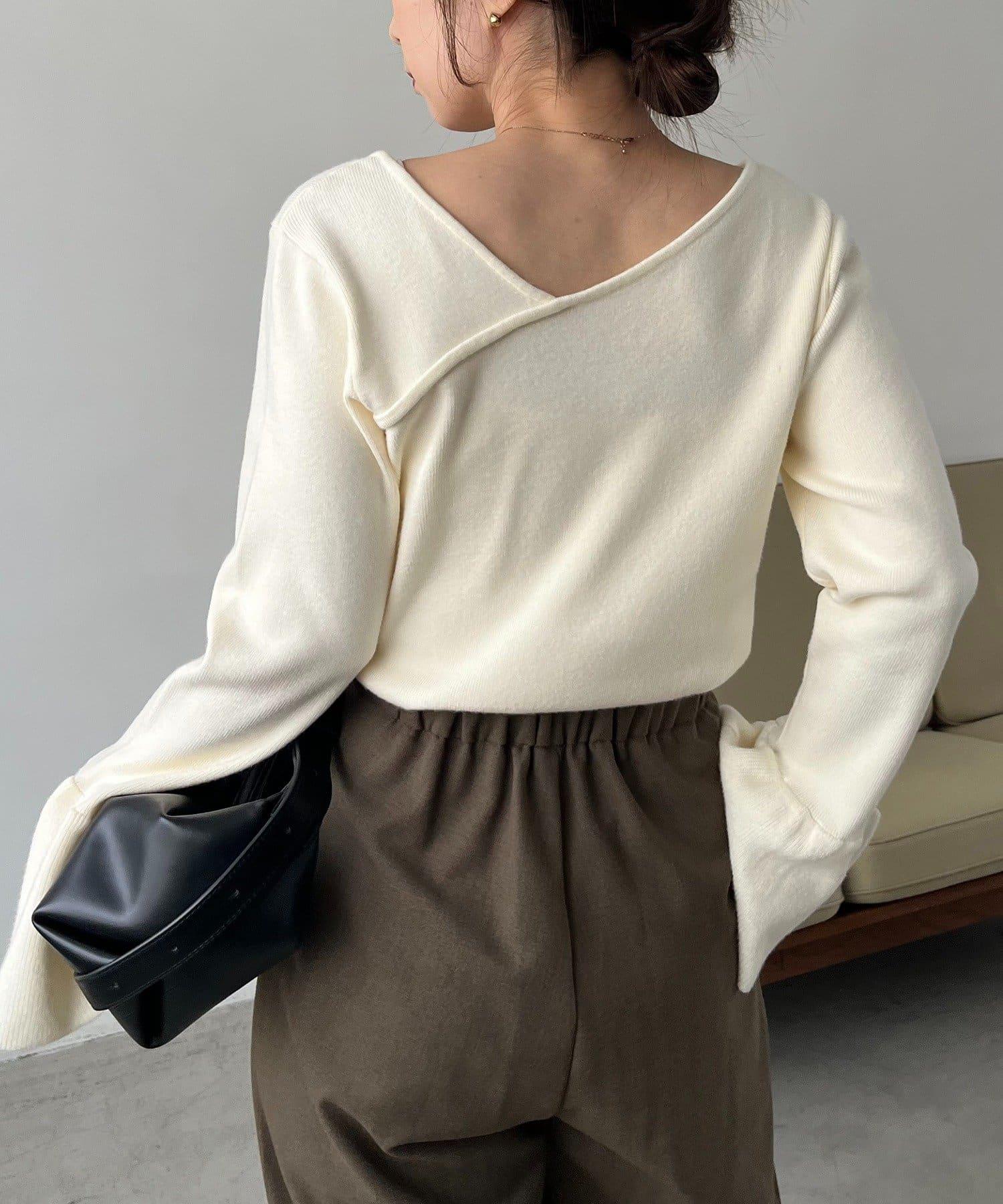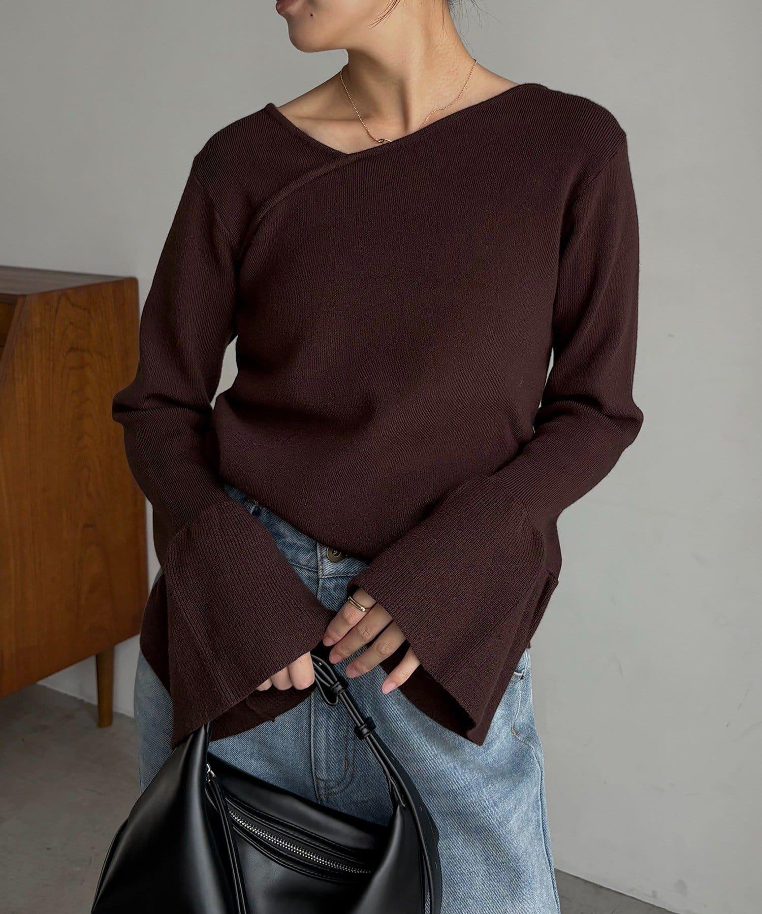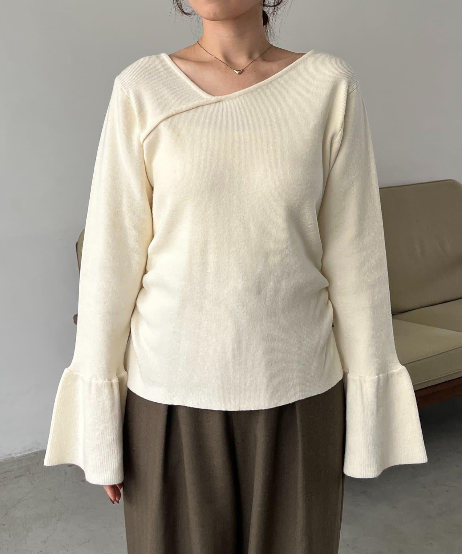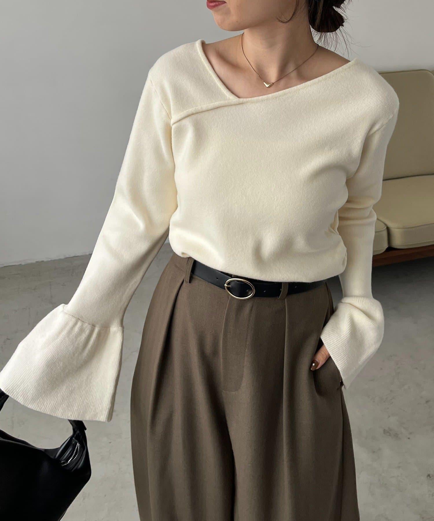 CAPRICIEUX LE'MAGE 喇叭袖 不對稱領 針織上衣