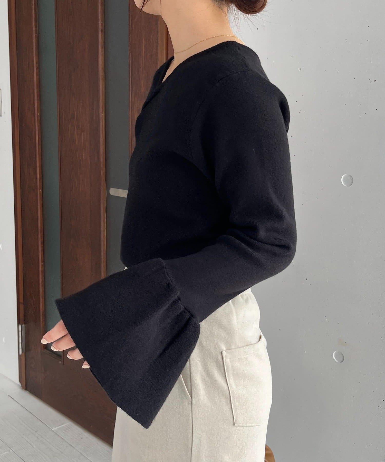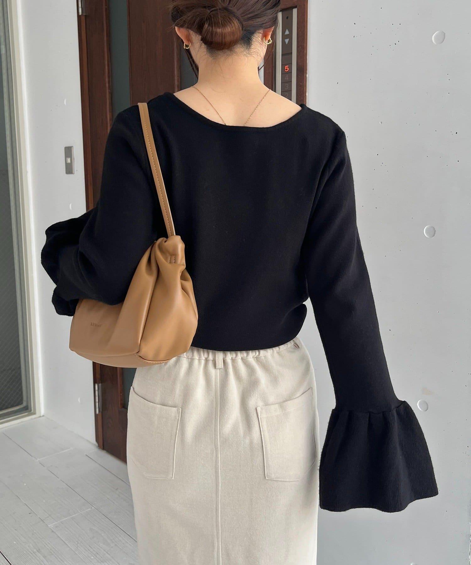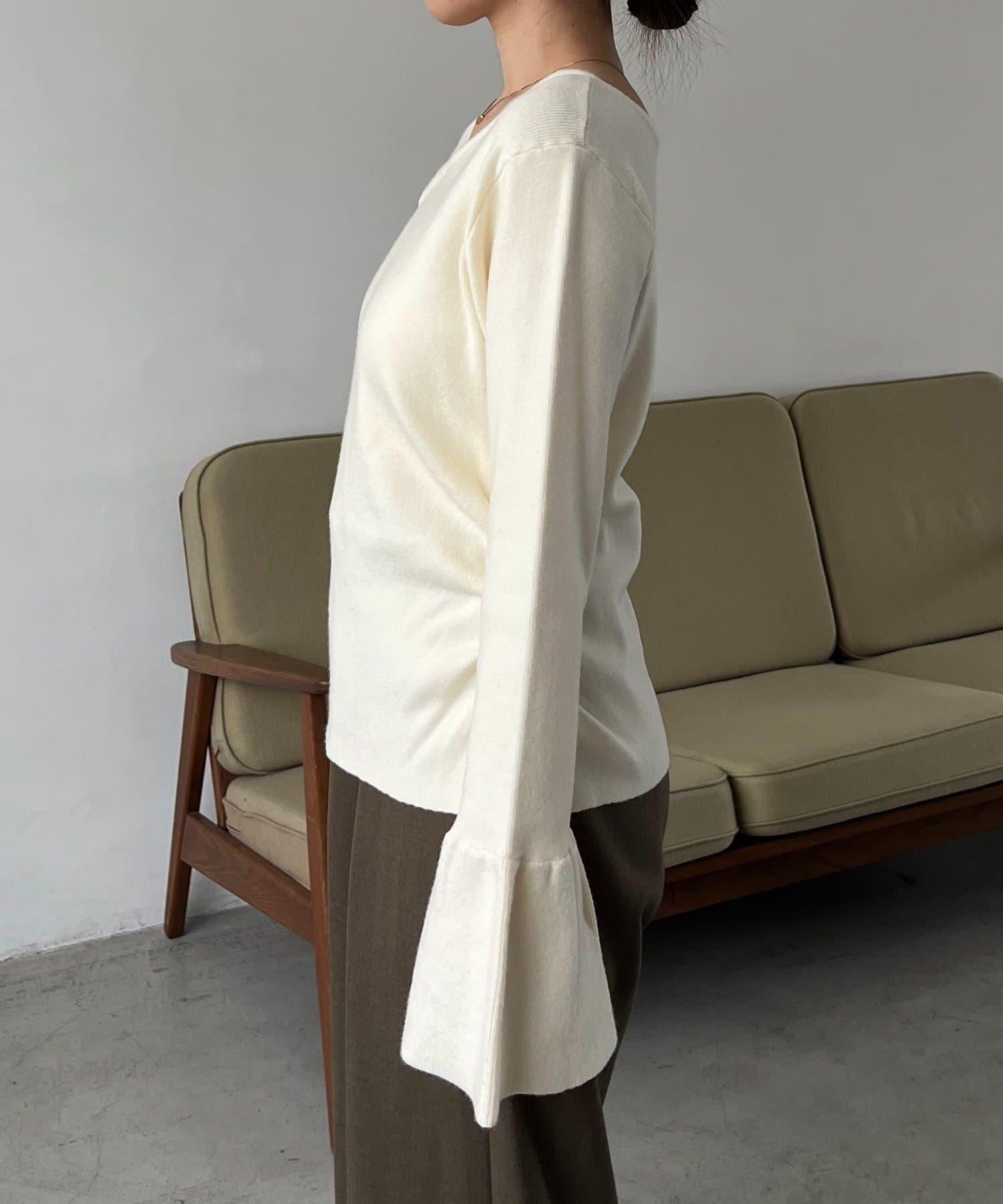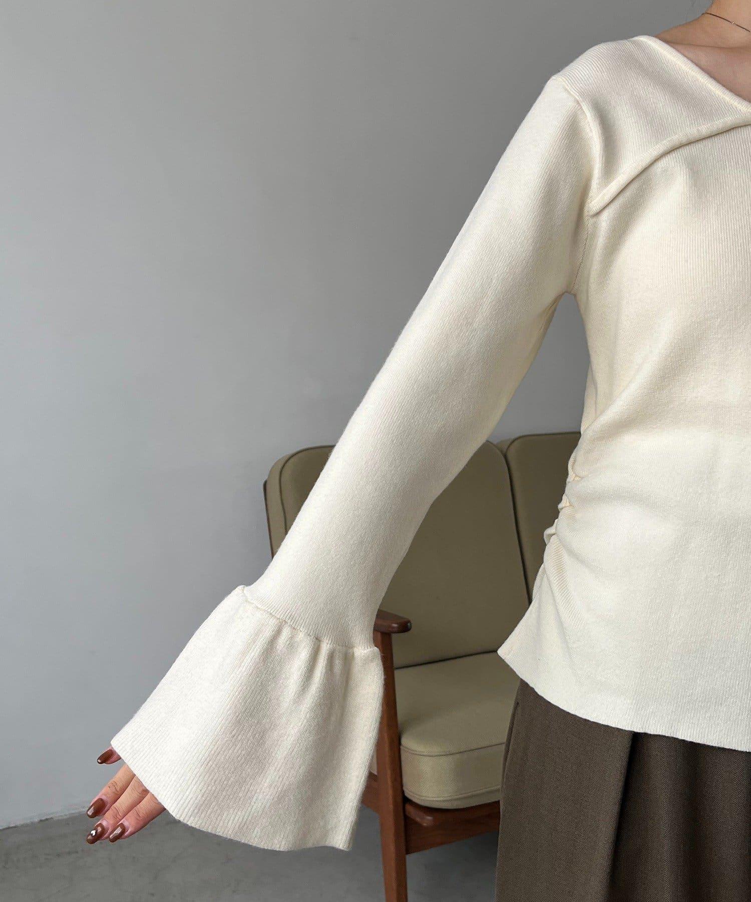 CAPRICIEUX LE'MAGE 喇叭袖 不對稱領 針織上衣