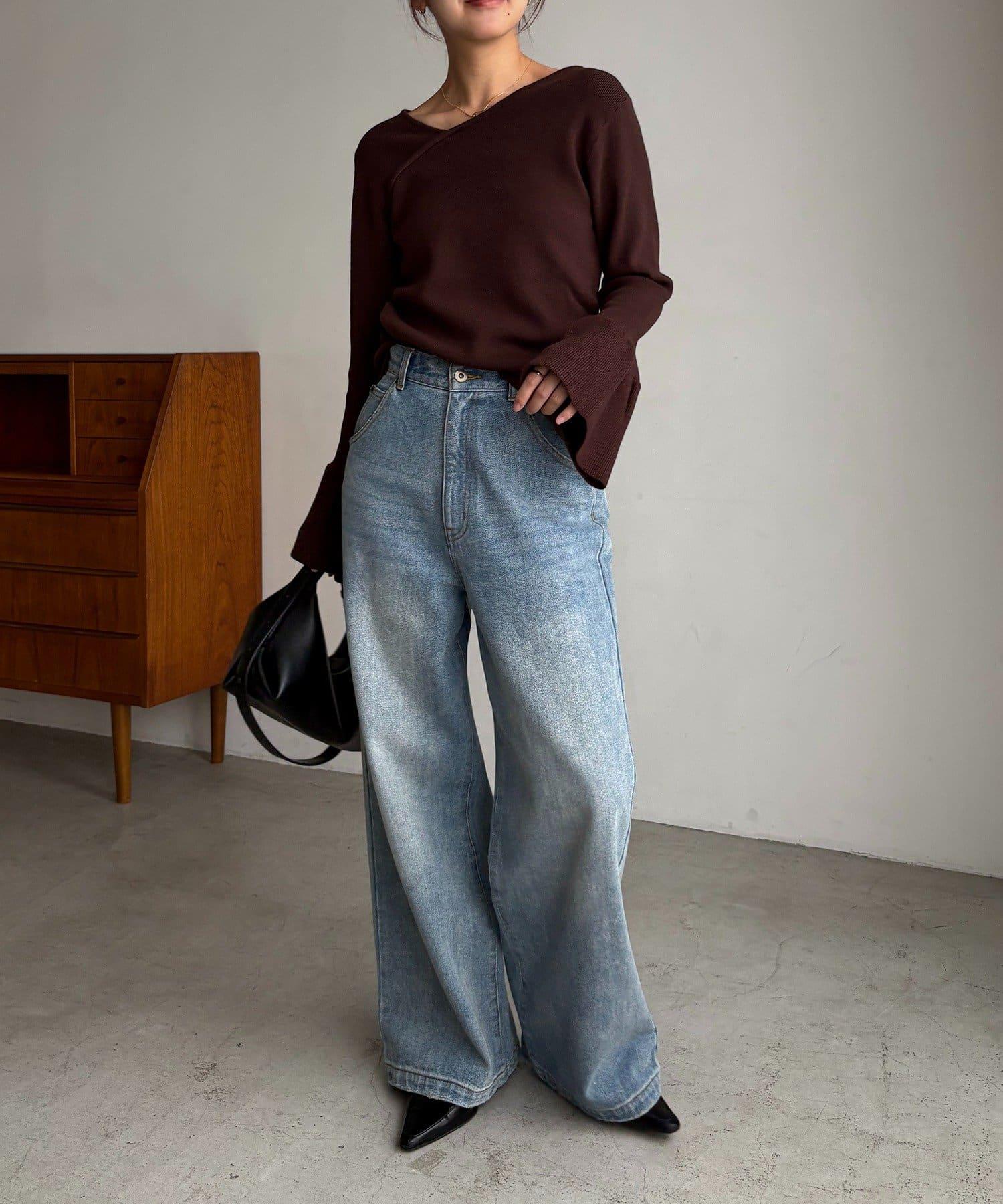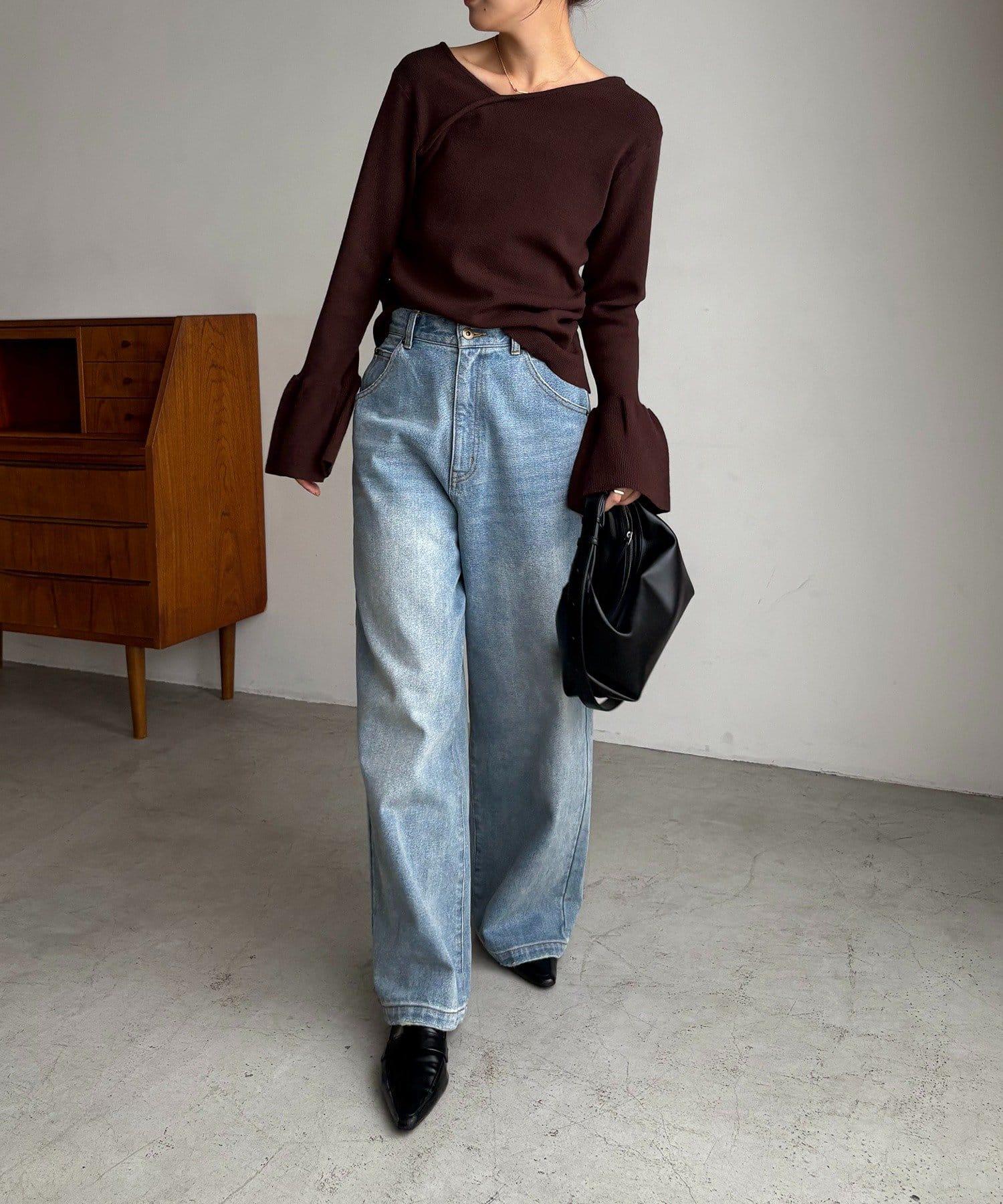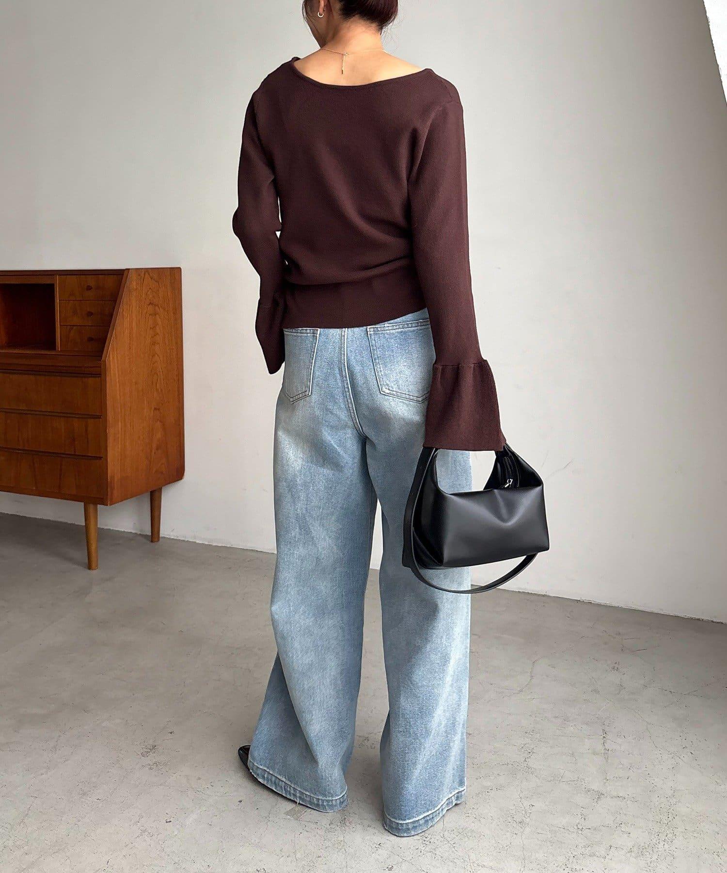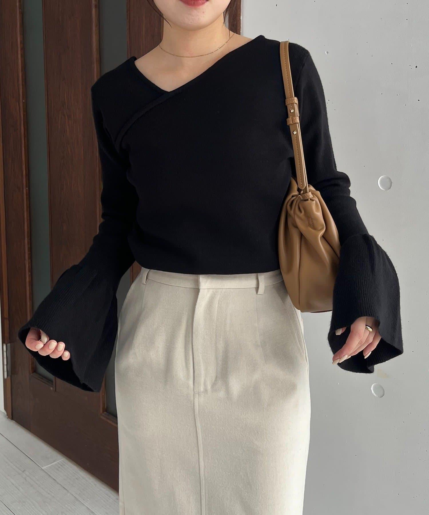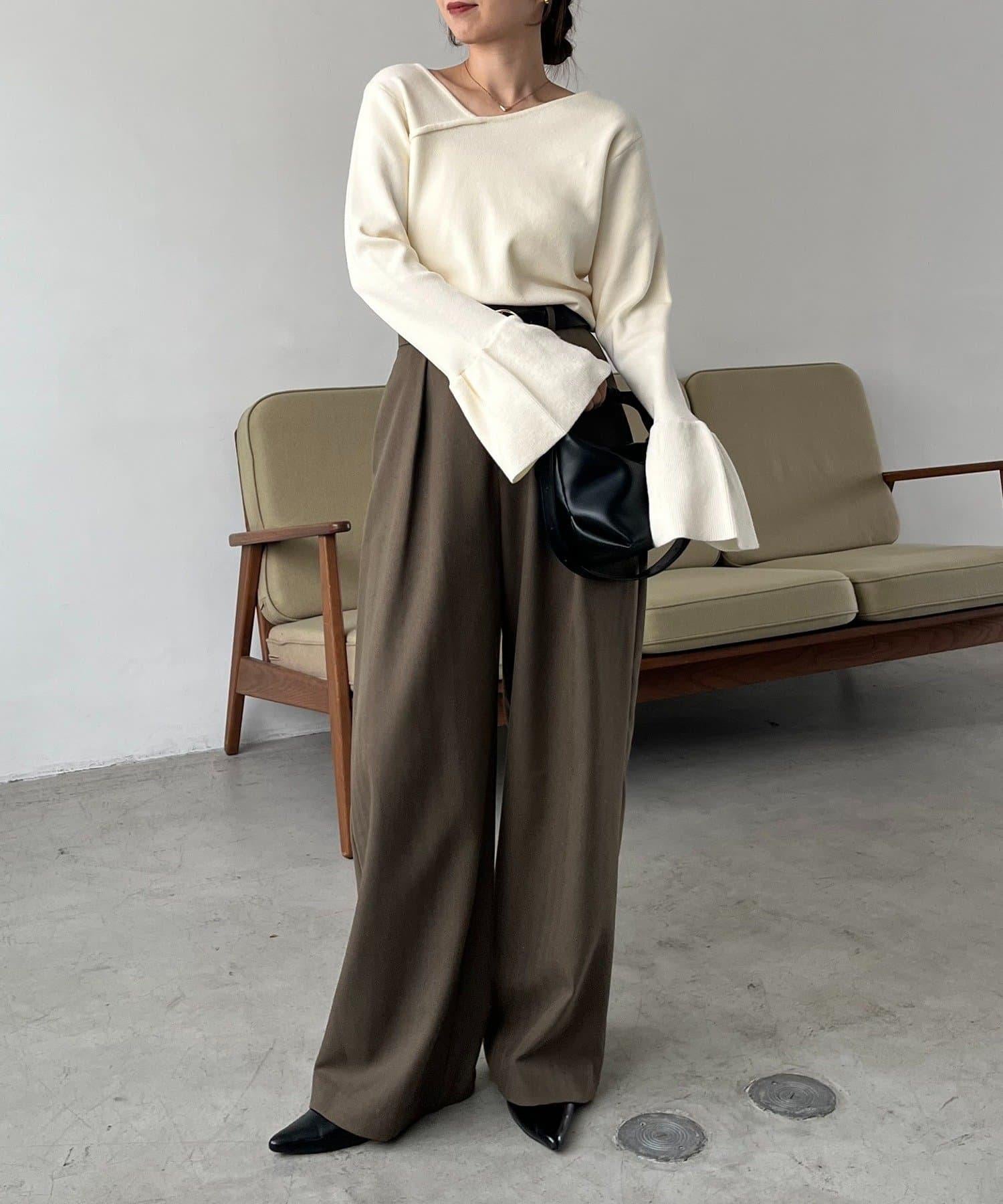 CAPRICIEUX LE'MAGE 喇叭袖 不對稱領 針織上衣