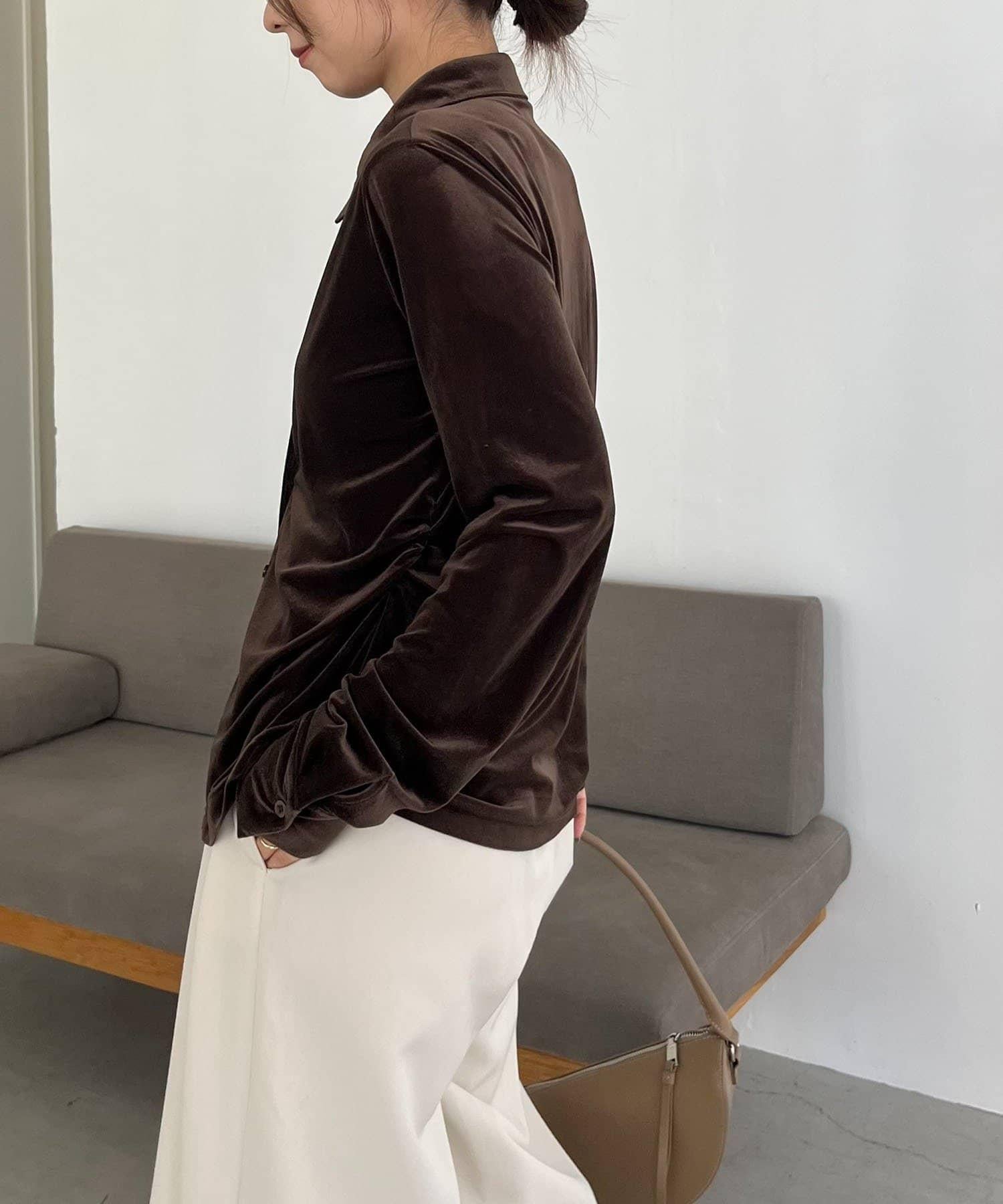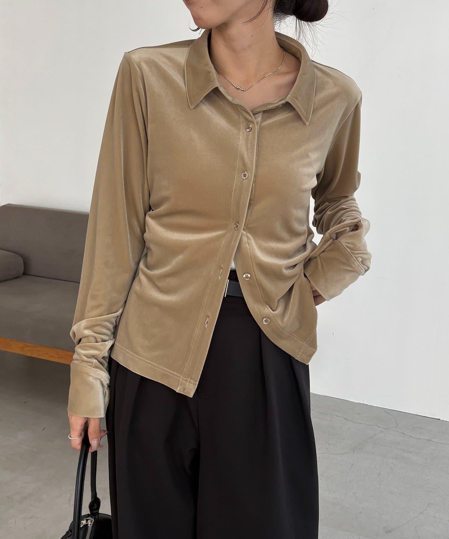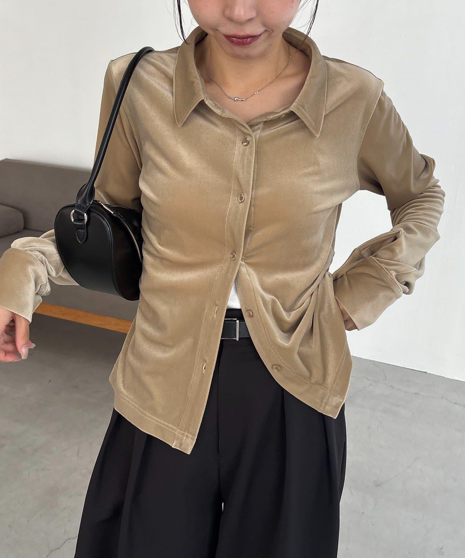襯衫由柔軟的絲絨面料製成,具有墜感。