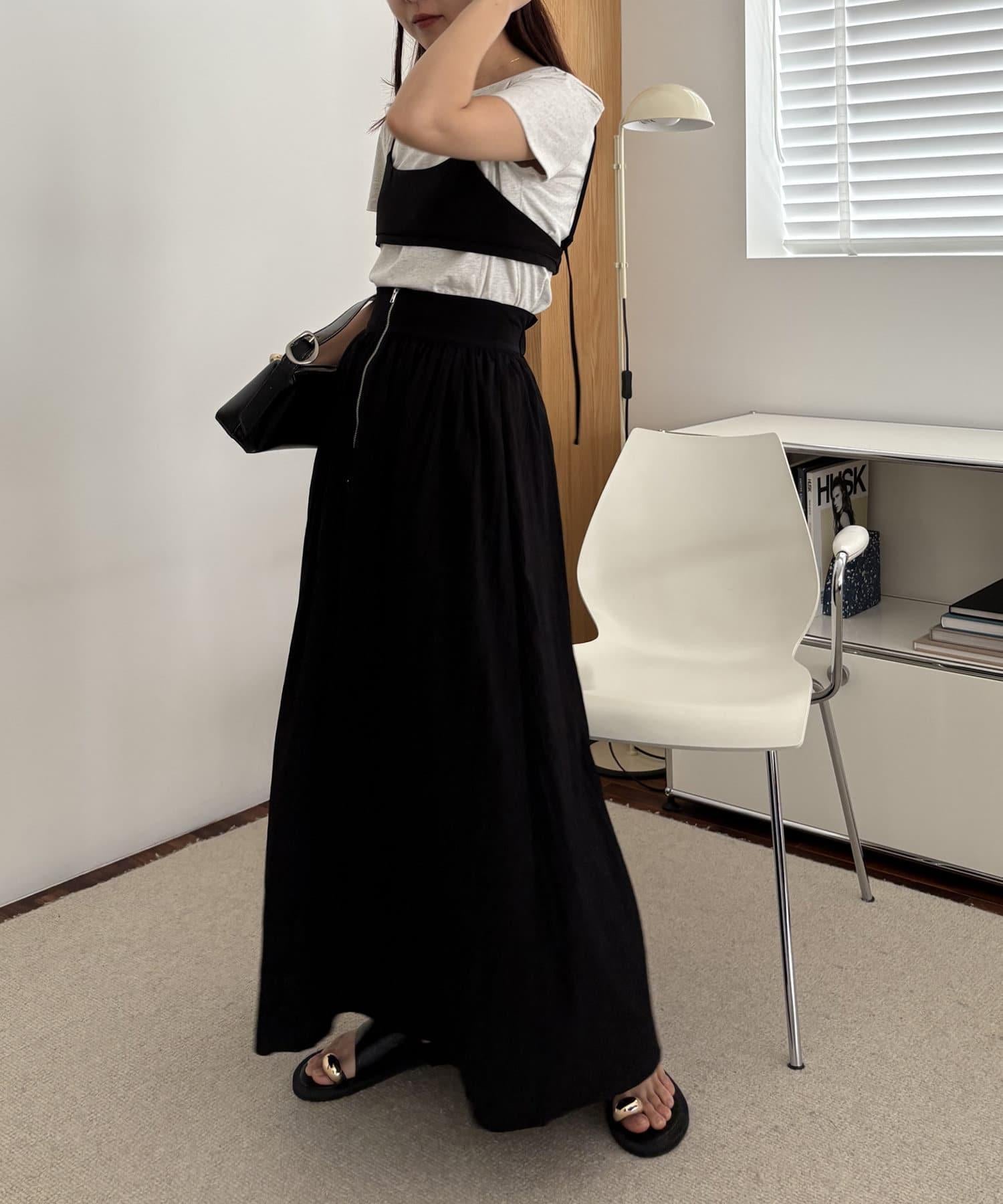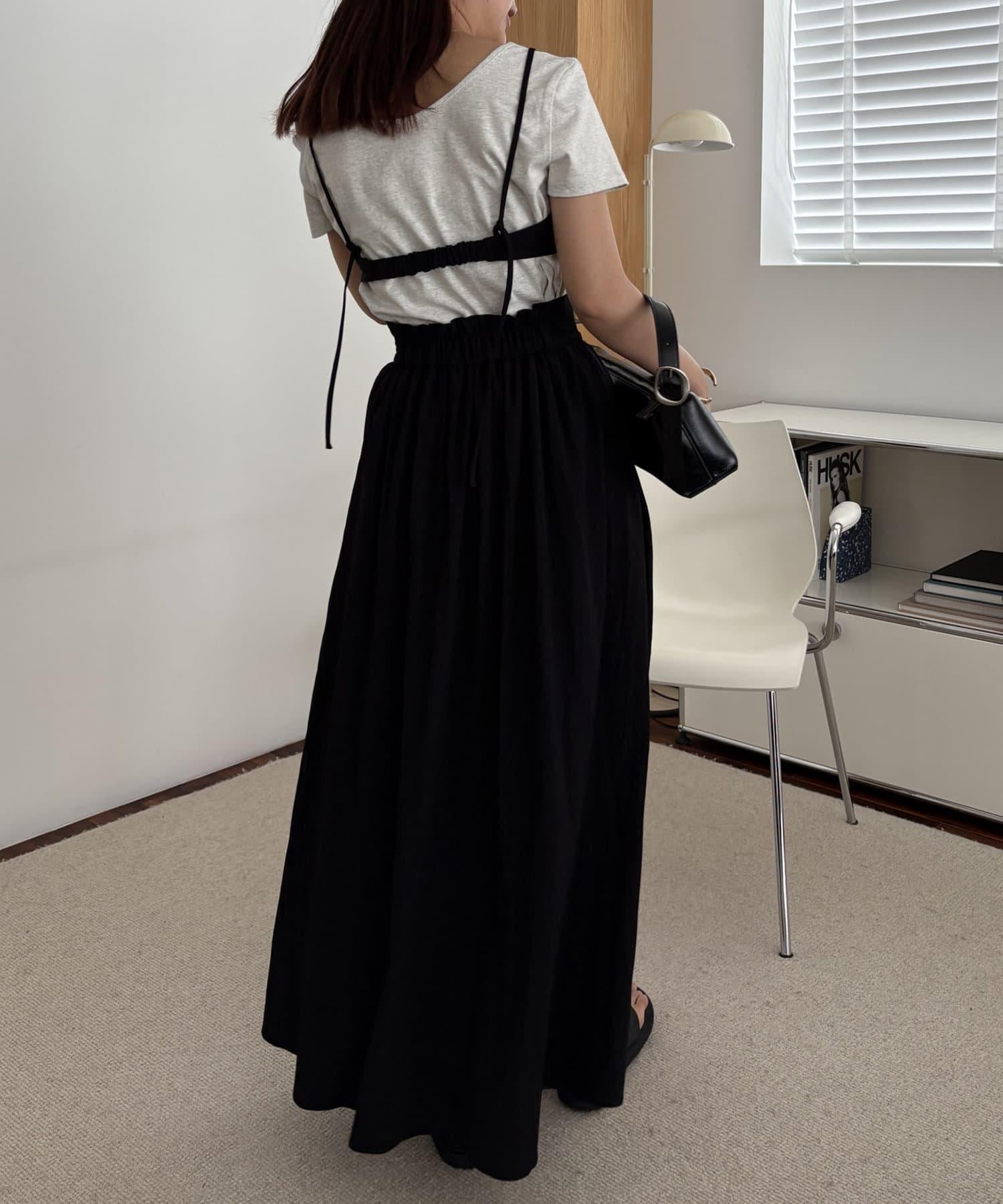 半身裙的肩帶可打結調節長度。