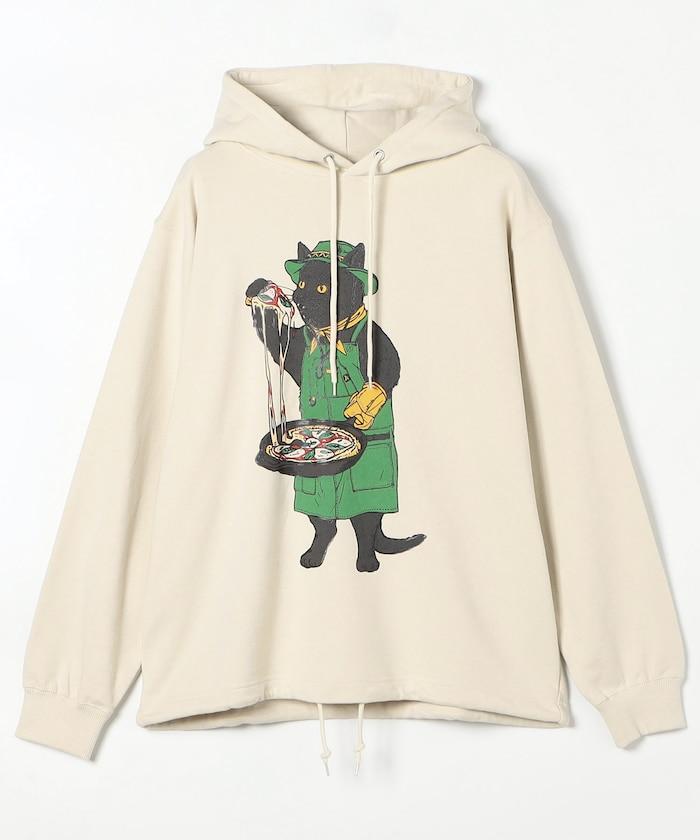 俏皮的設計,正面印有一隻拿著披薩的貓咪的醒目圖案。