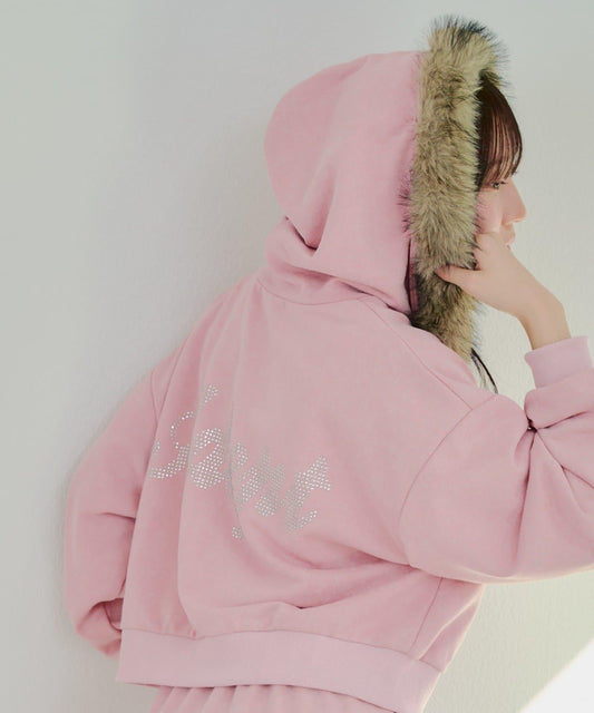 運動衫正面繡有貓咪圖案。