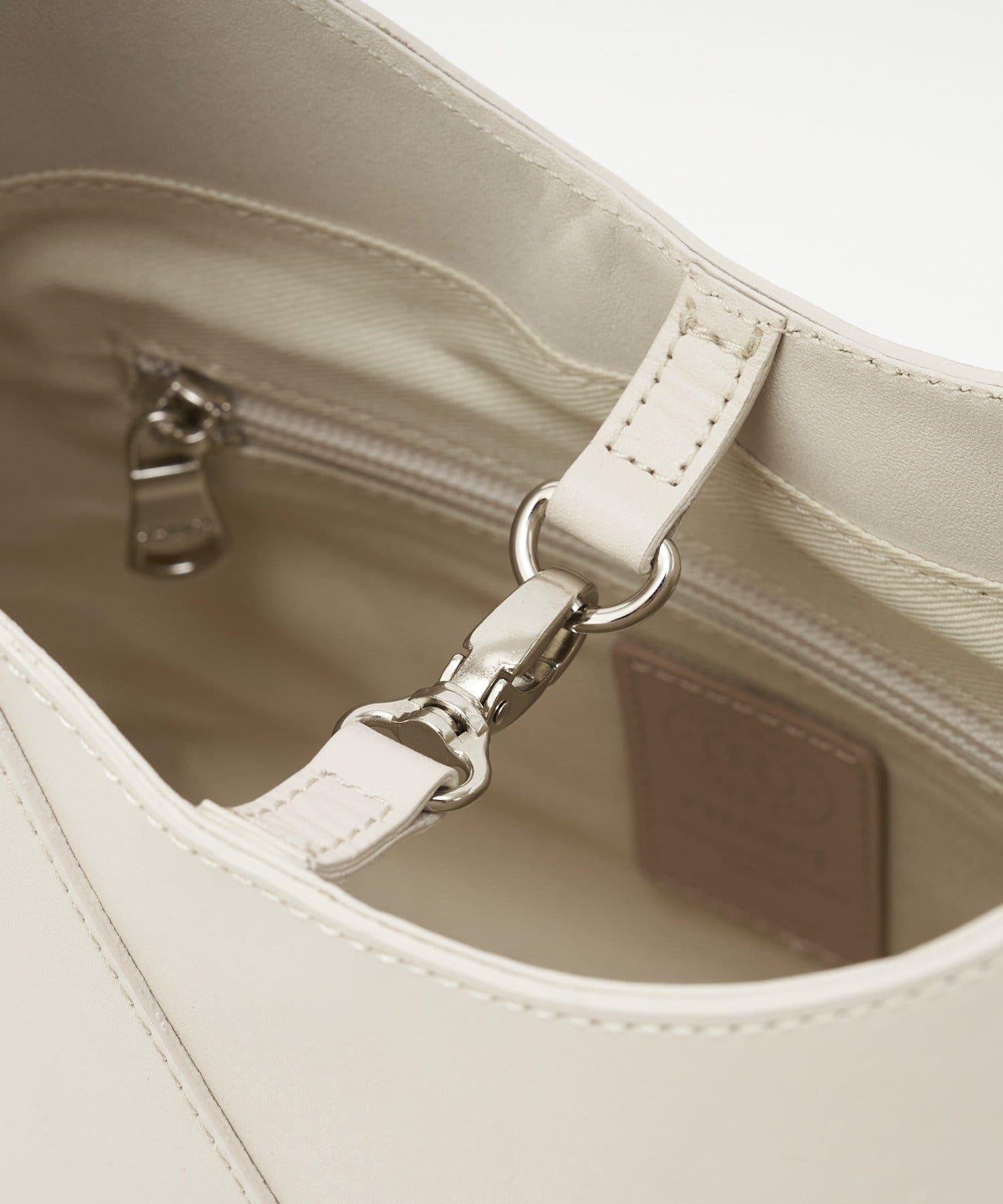這款小巧的手袋外觀簡約,裝飾極少,皮革質地光滑柔軟。