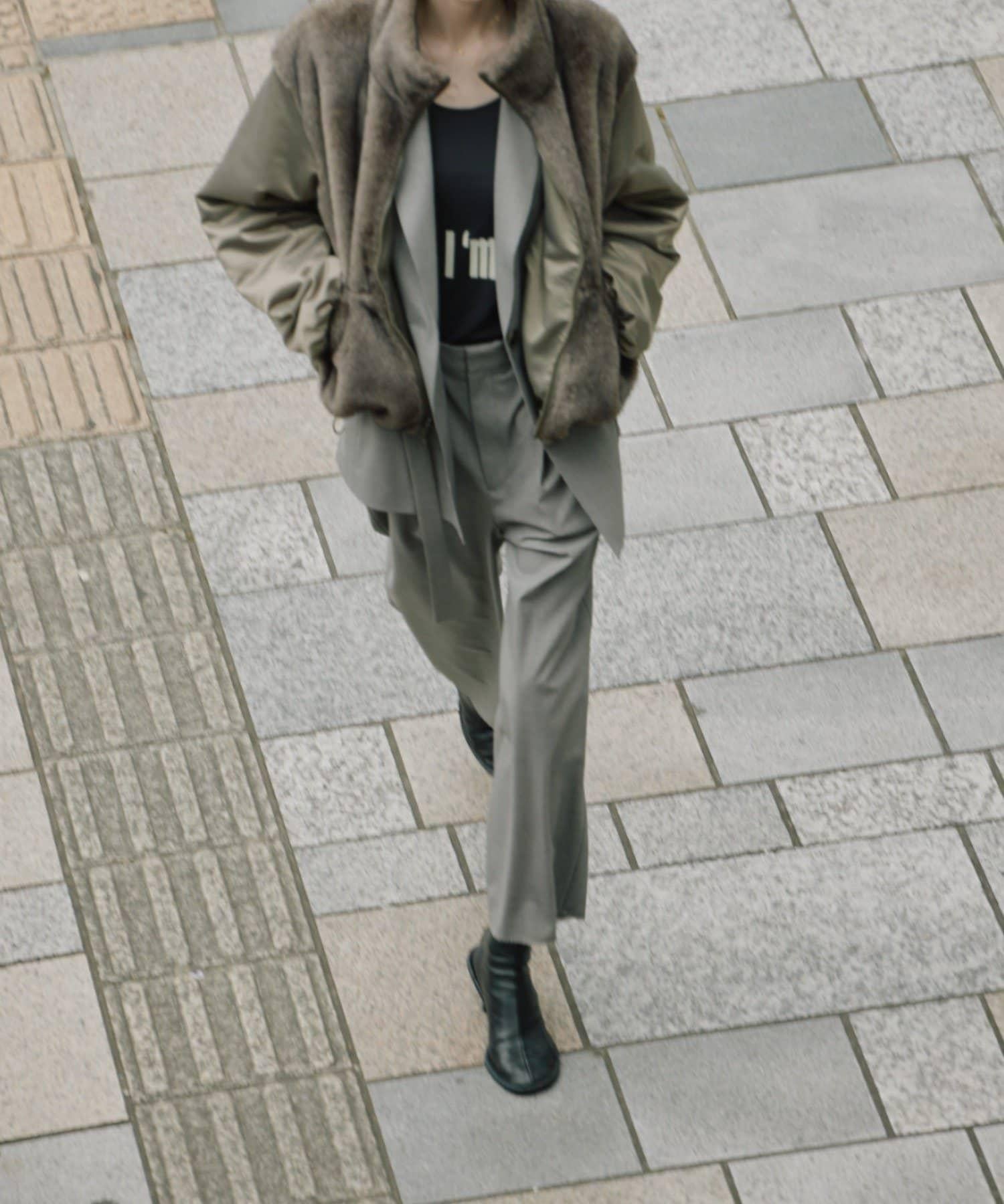 腰部有抽繩規格,因此可以通過降低腰部位置來穿出寬鬆感、