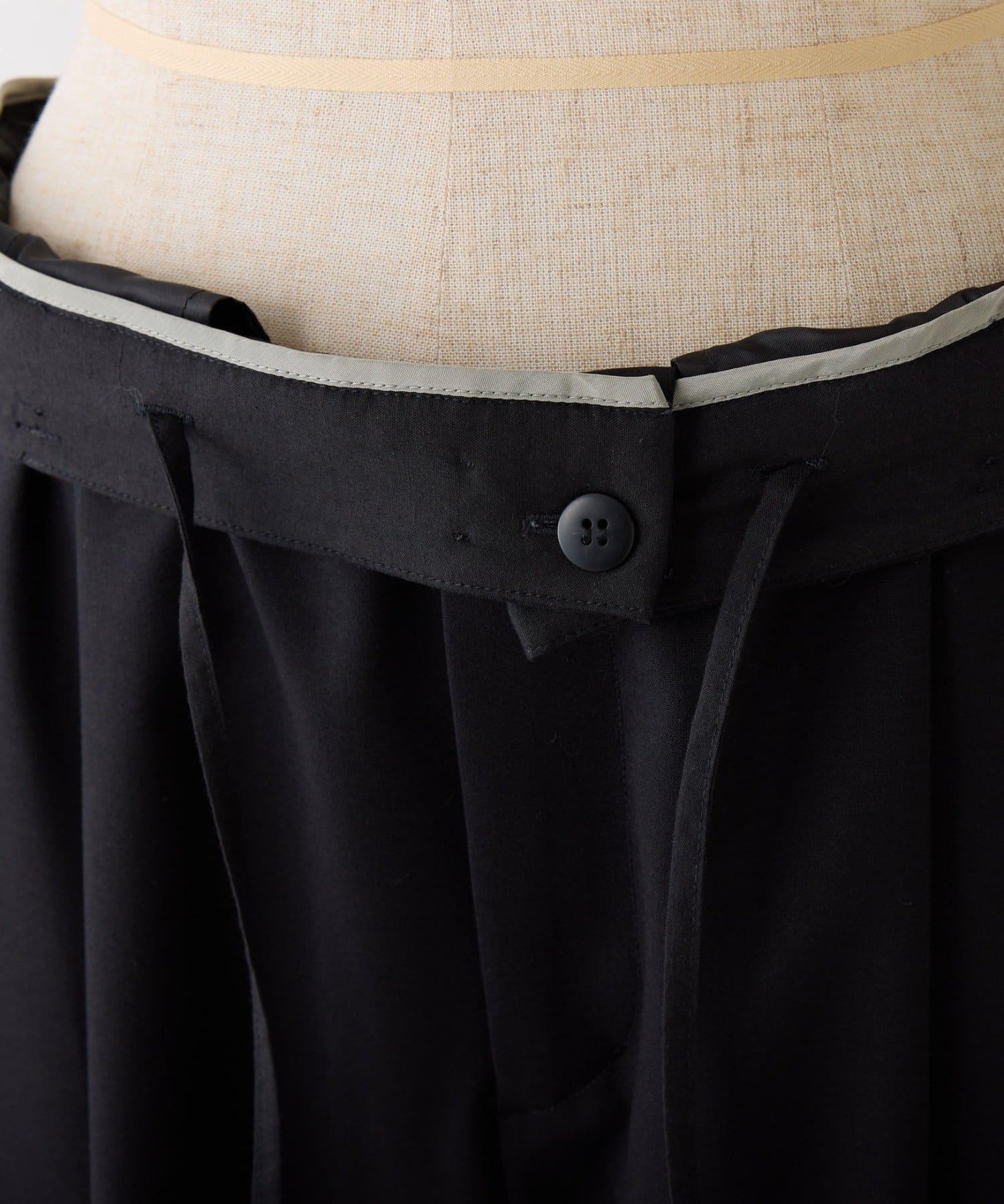 腰部採用抽繩規格,因此您可以通過放低腰部位置將其穿得寬鬆,或將其穿得腰部恰到好處,從而享受改變穿著方式的樂趣。