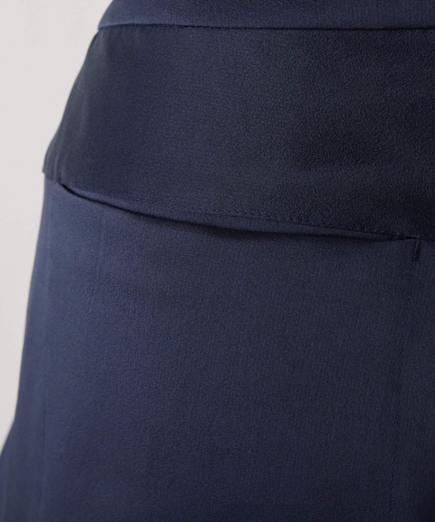 側襉長褲由滌綸製成,具有絲綢質感。