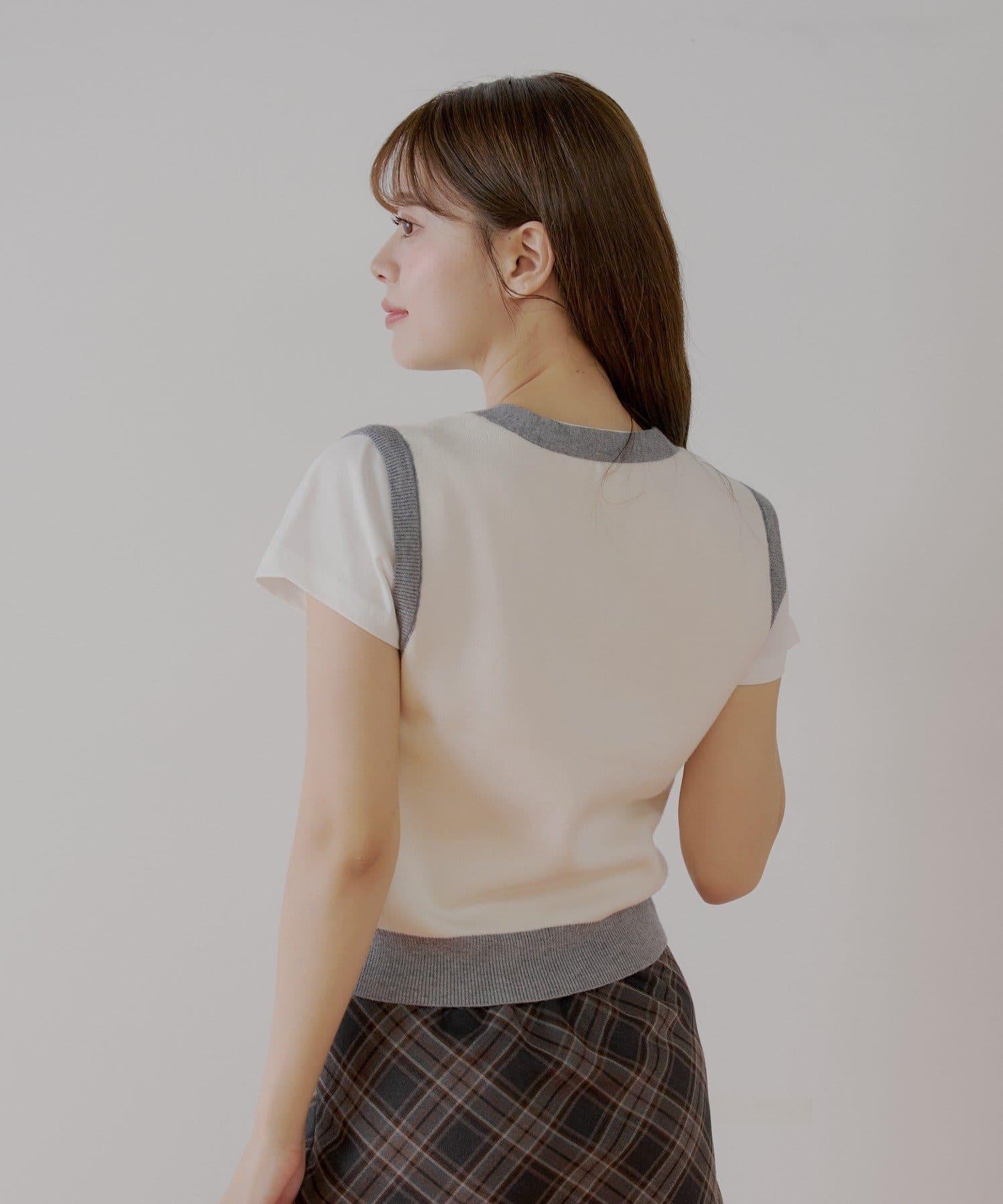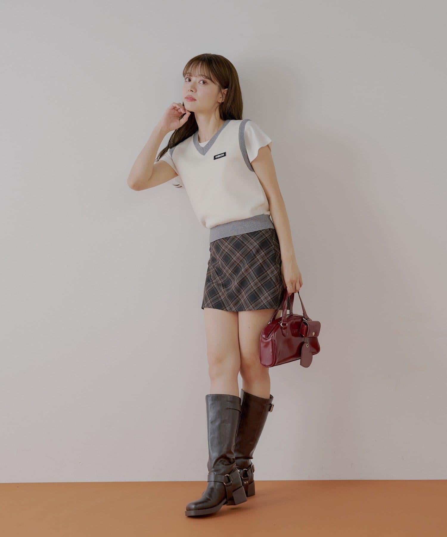 方格圖案針織馬甲和 T 恤套裝,可搭配各種服飾。