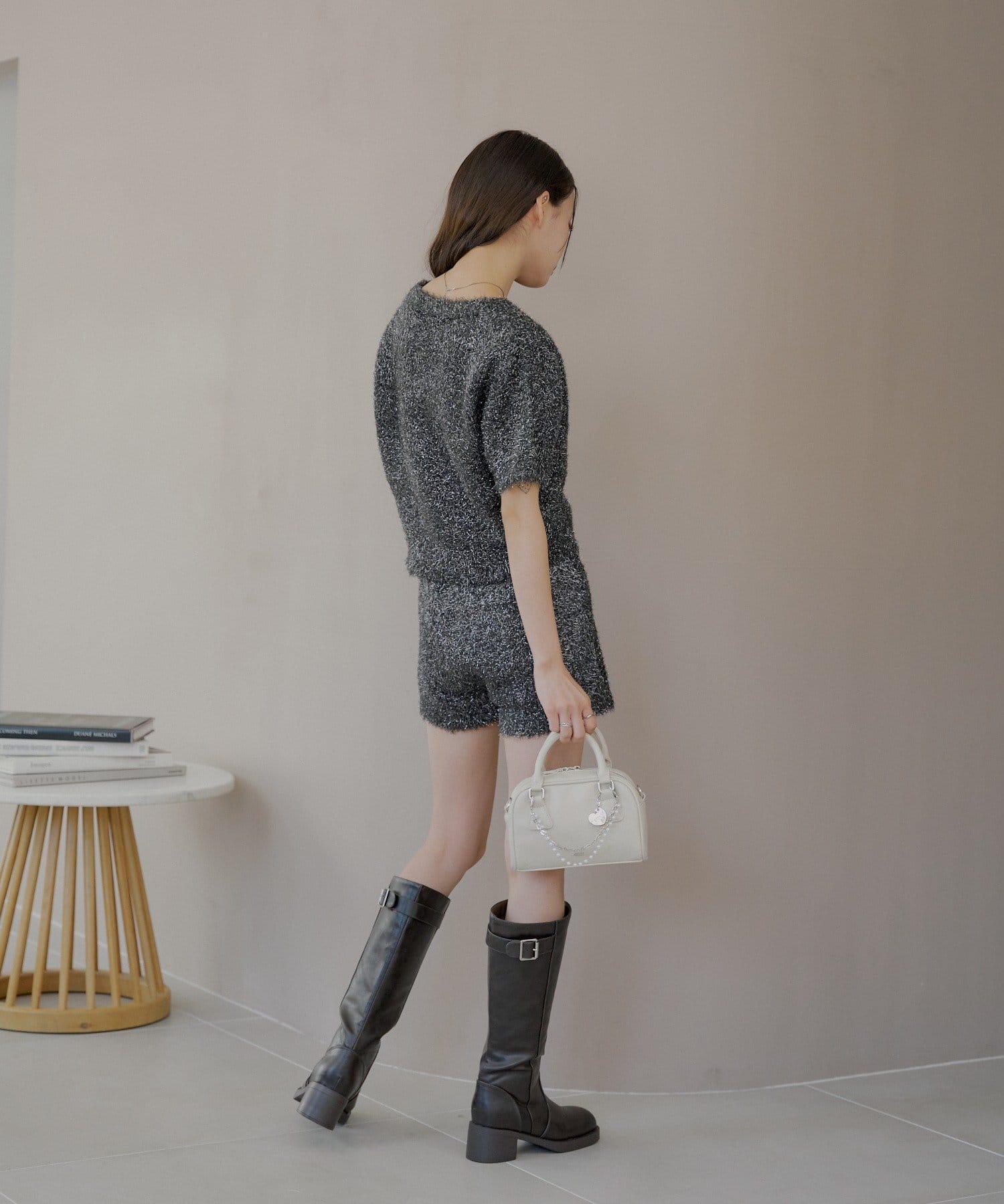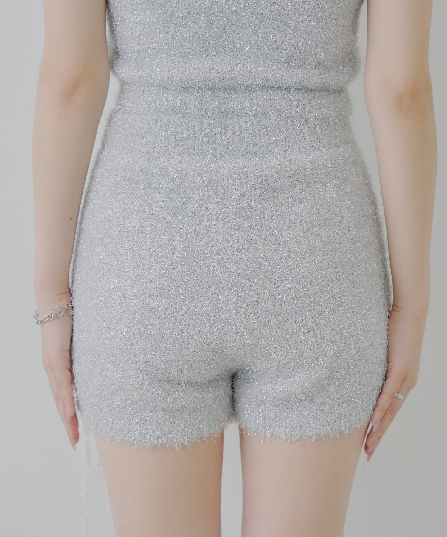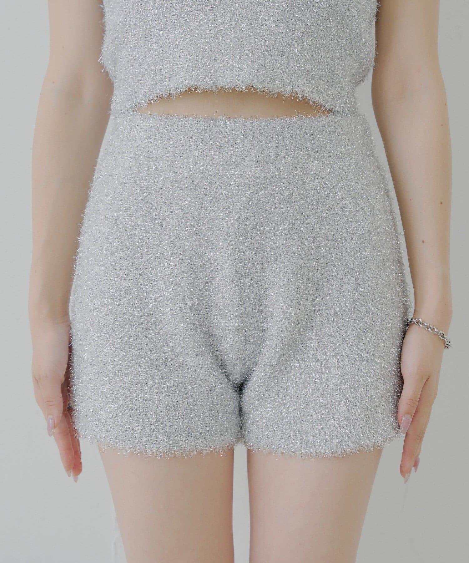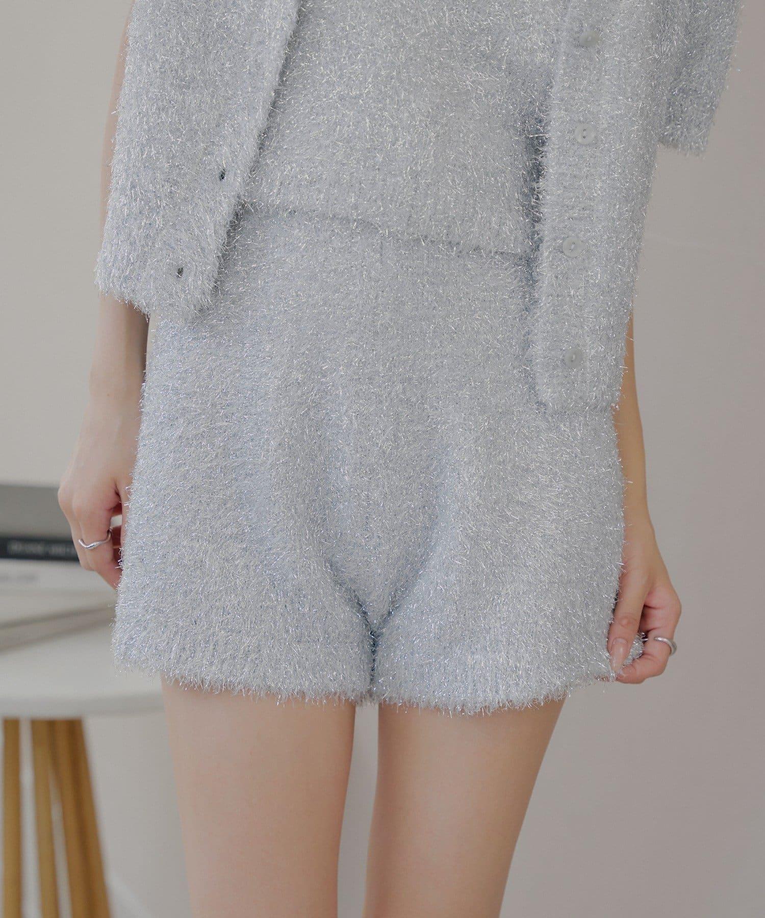 蓬鬆毛茸茸的針織短褲,面料上織有精緻的絨毛!