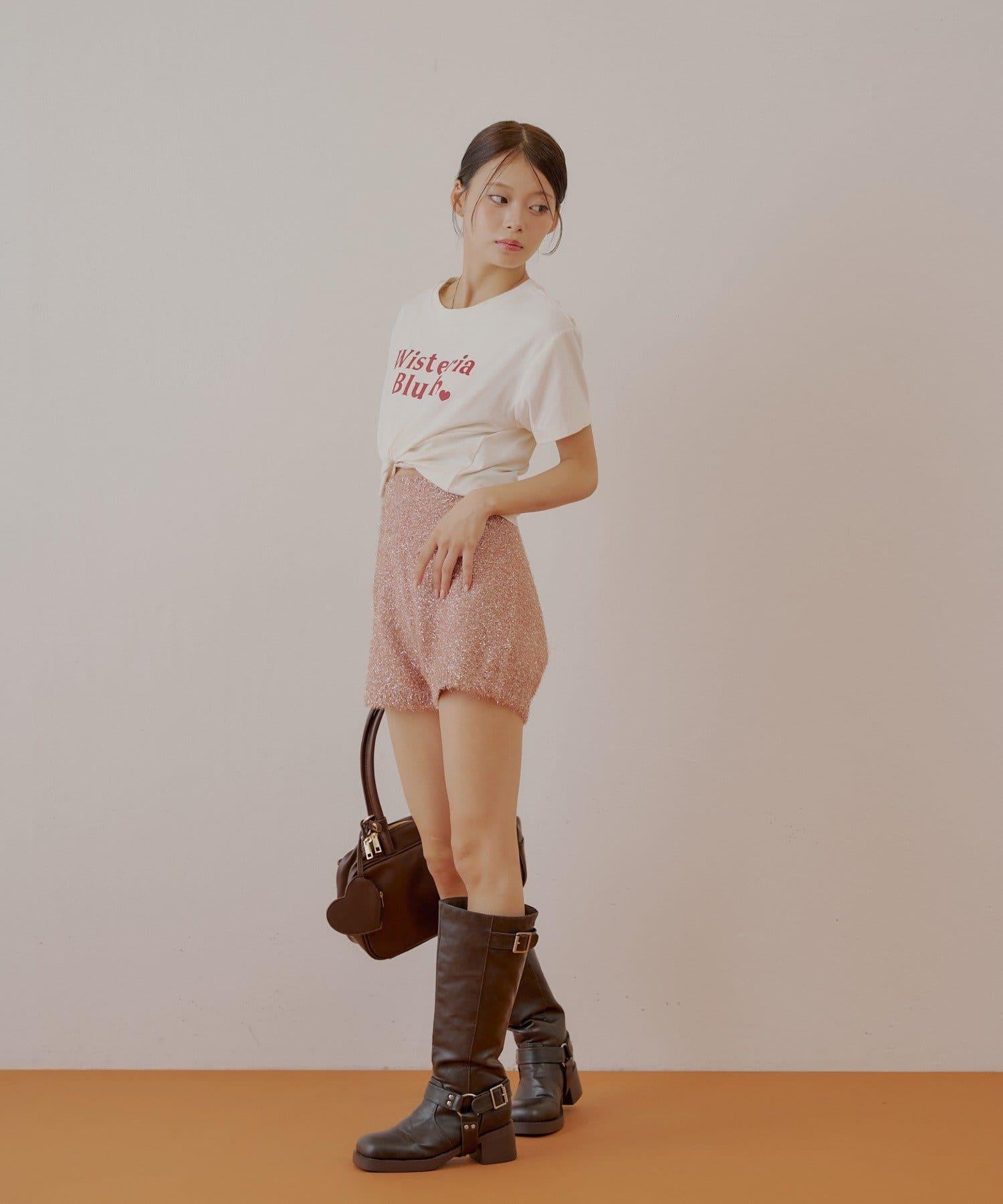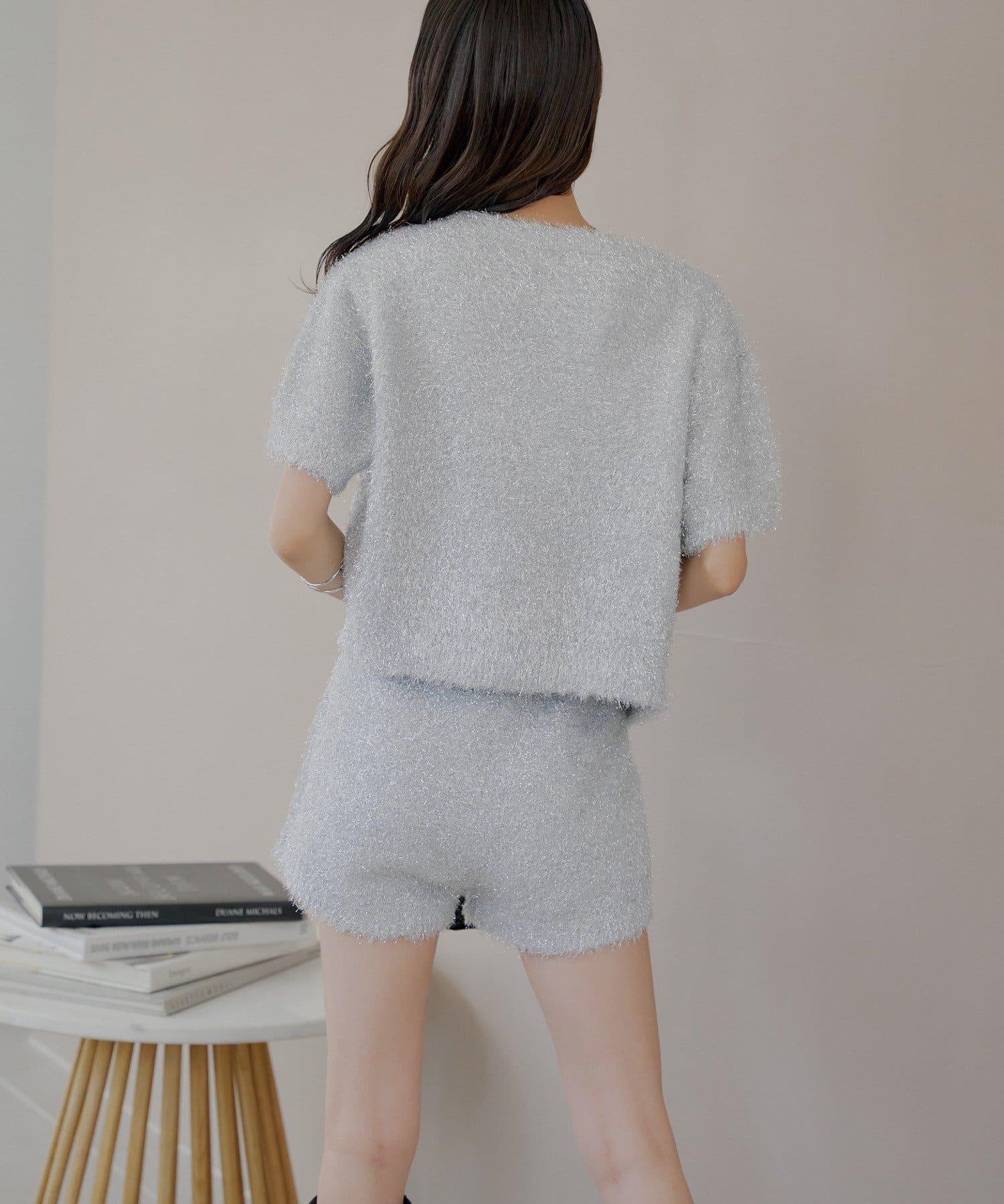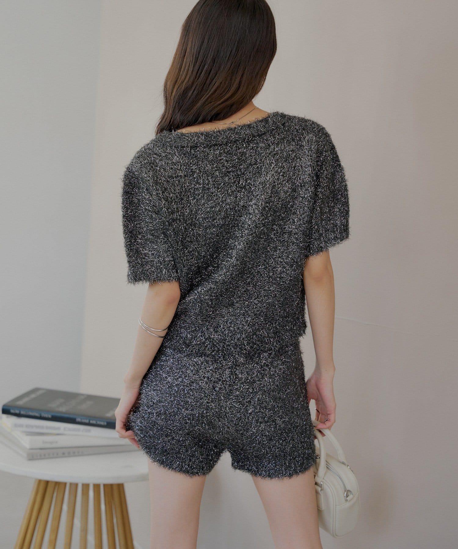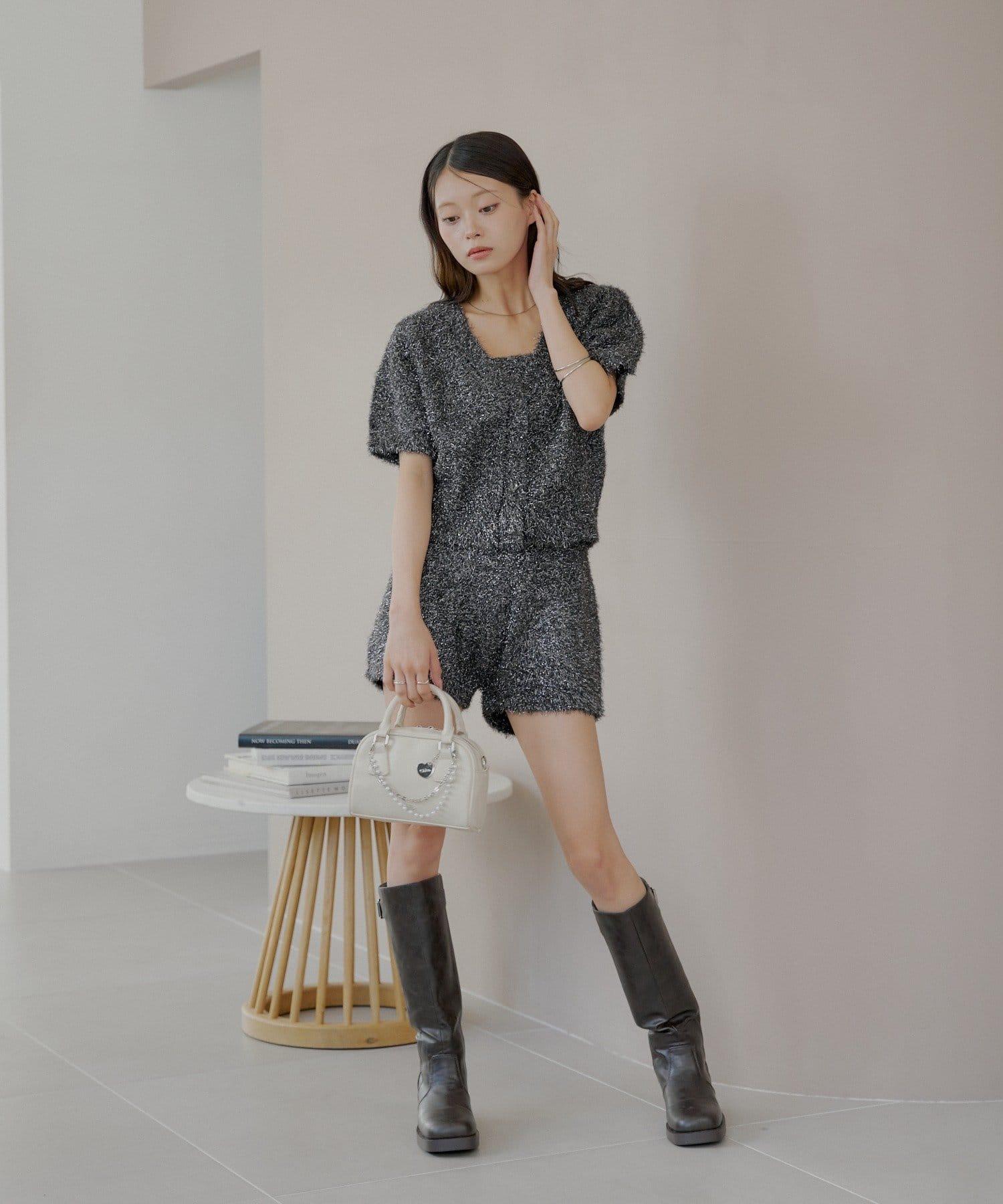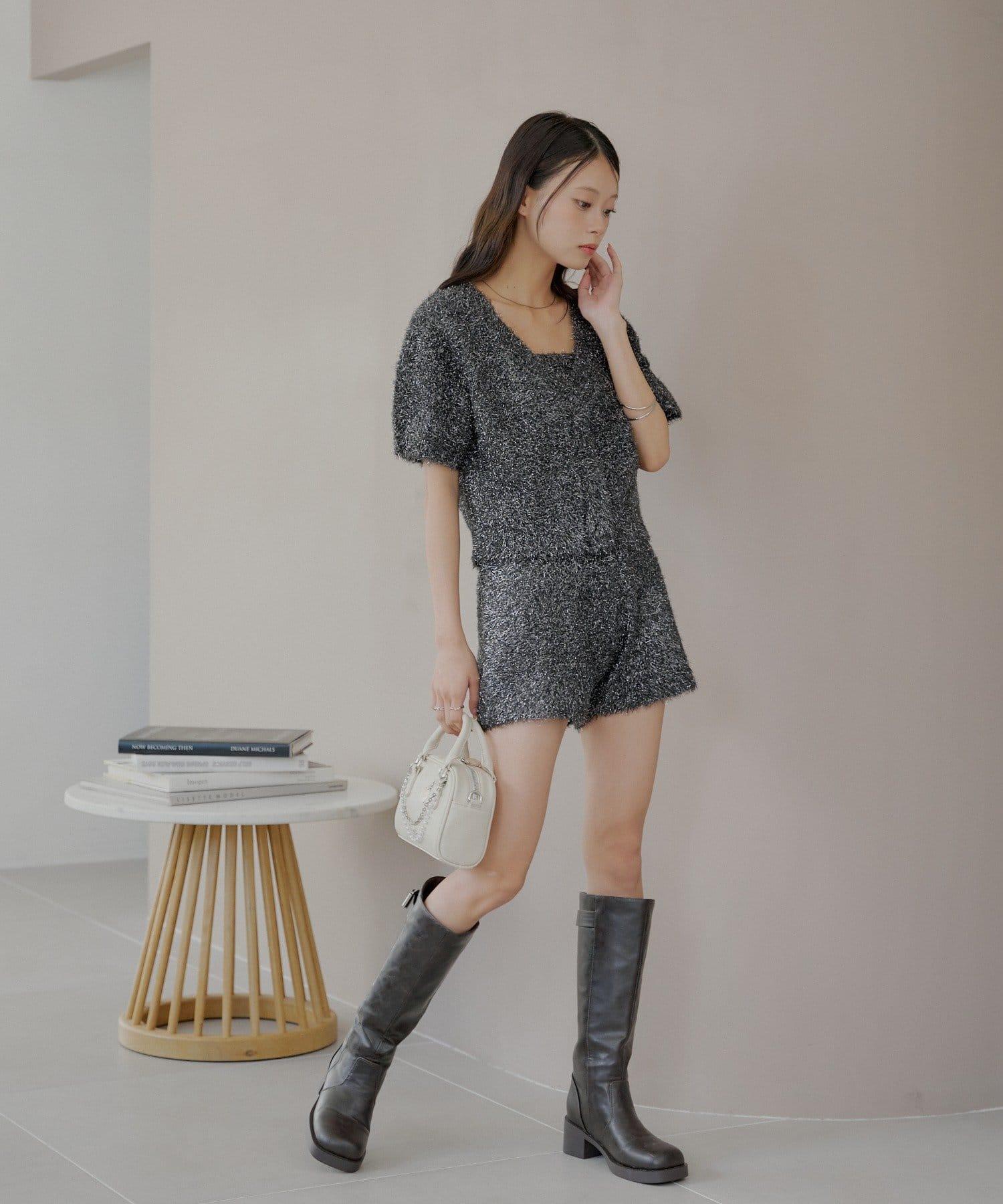 蓬鬆毛茸茸的針織短褲,面料上織有精緻的絨毛!
