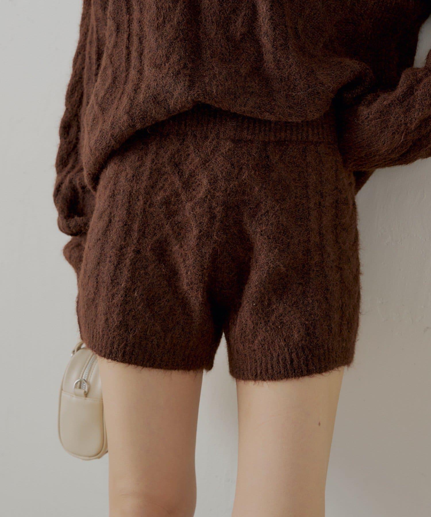 溫暖可愛的短褲,採用蓬鬆的電纜針織!