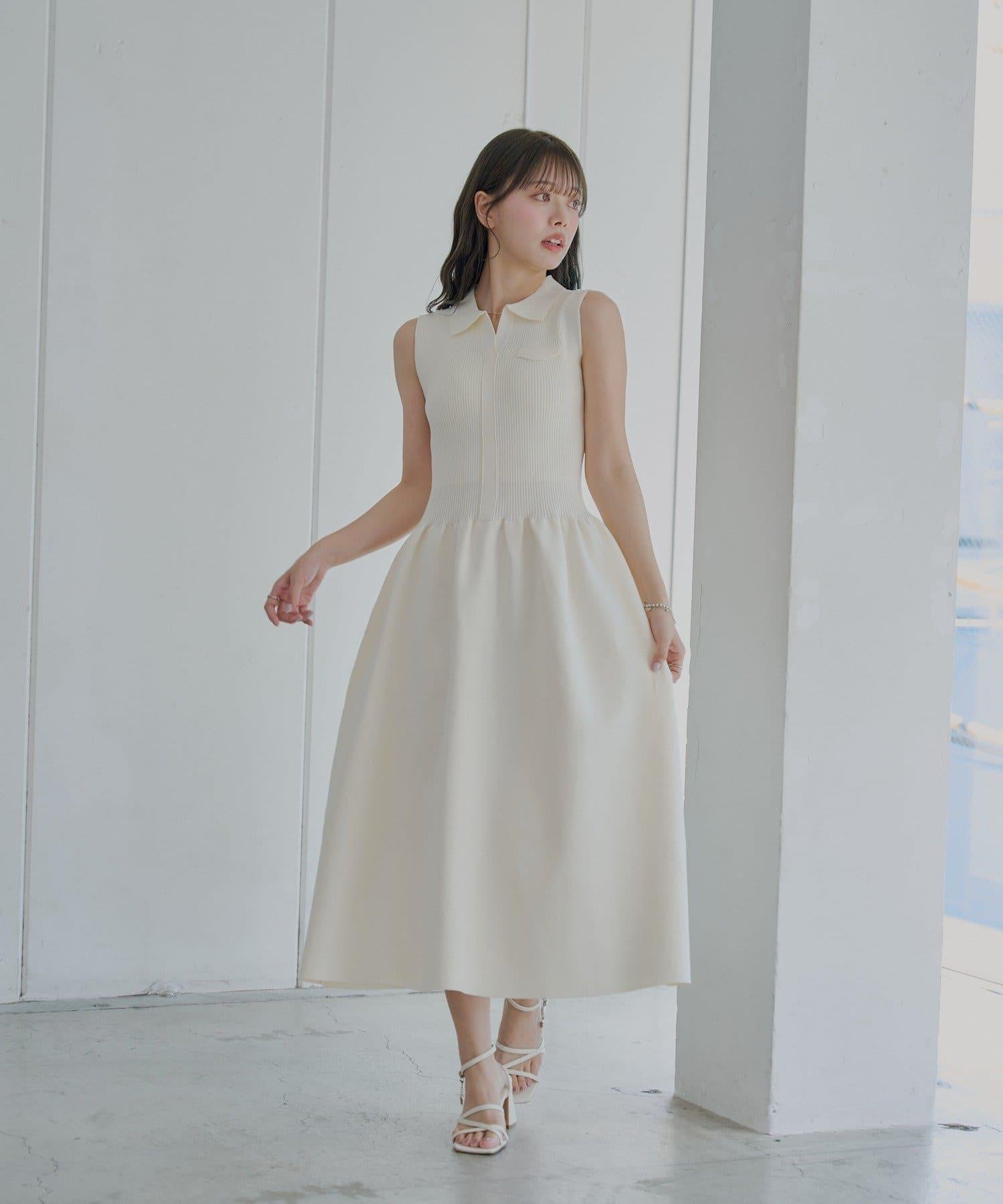無袖設計搭配整齊的 polo 領,增強了這款連衣裙的成人女性氣質。