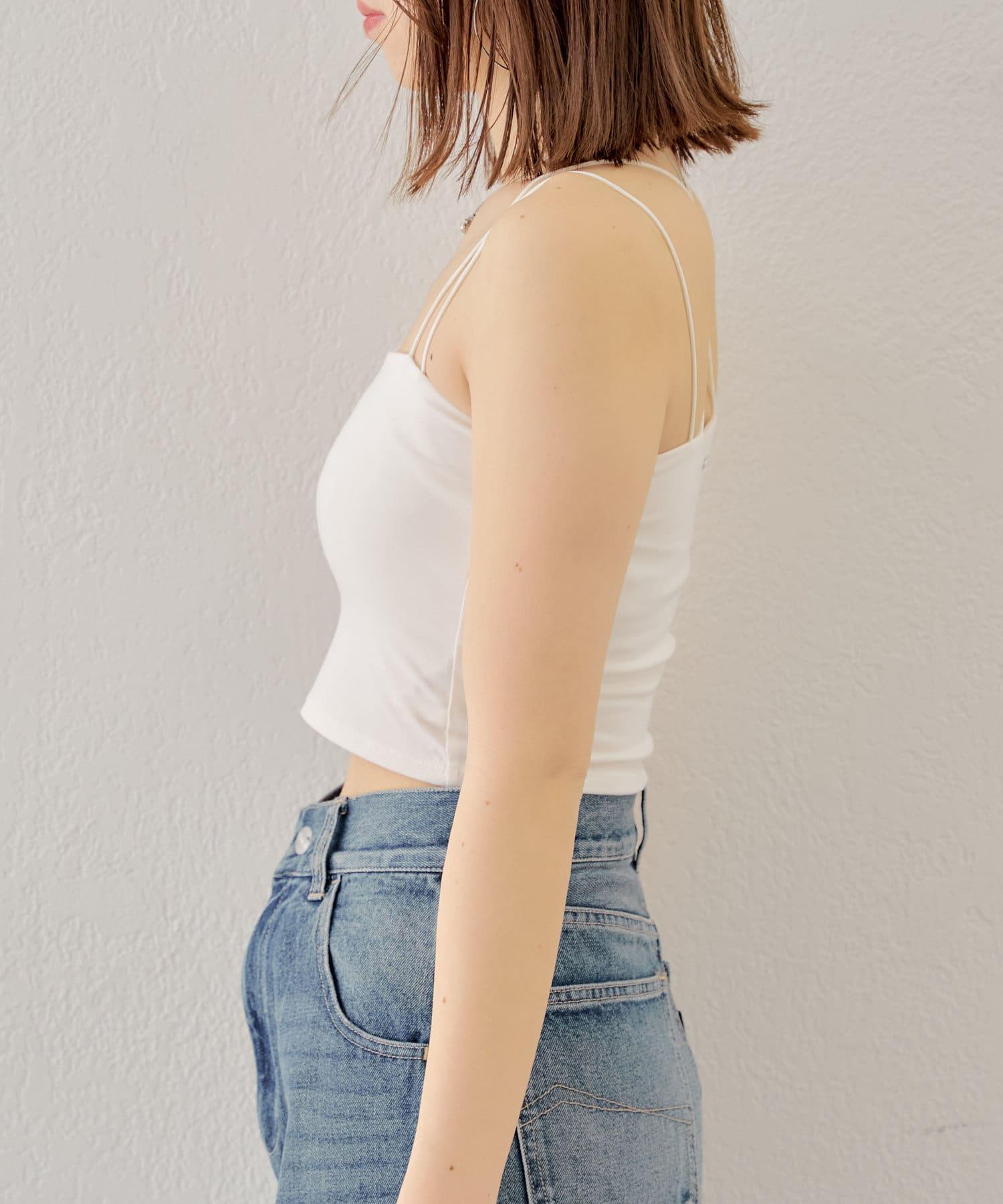 吊帶衫有罩杯,穿著時不用擔心內衣會變得透明。