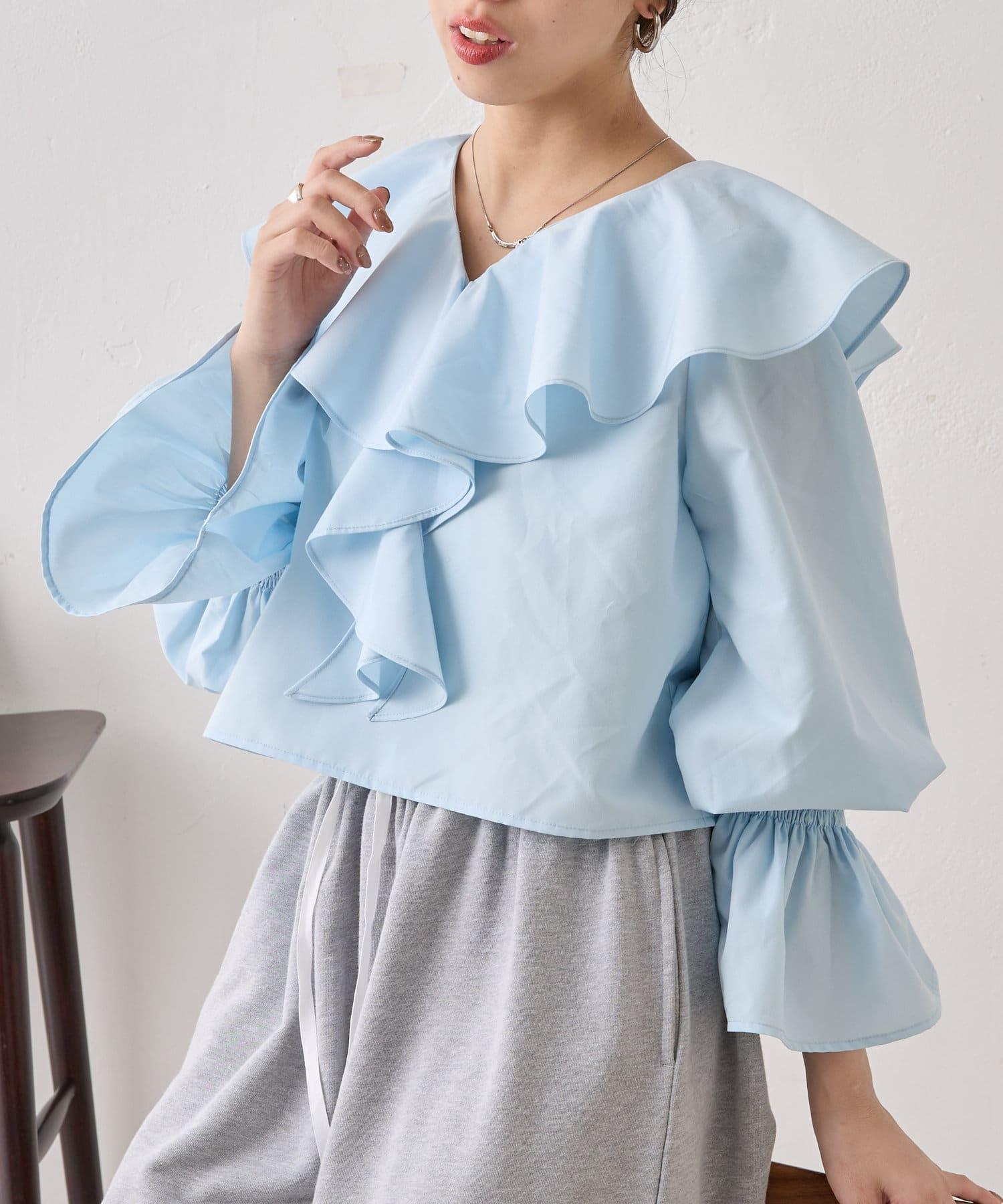 領口和緞帶的強烈存在感讓上衣的背部輪廓更加可愛。
