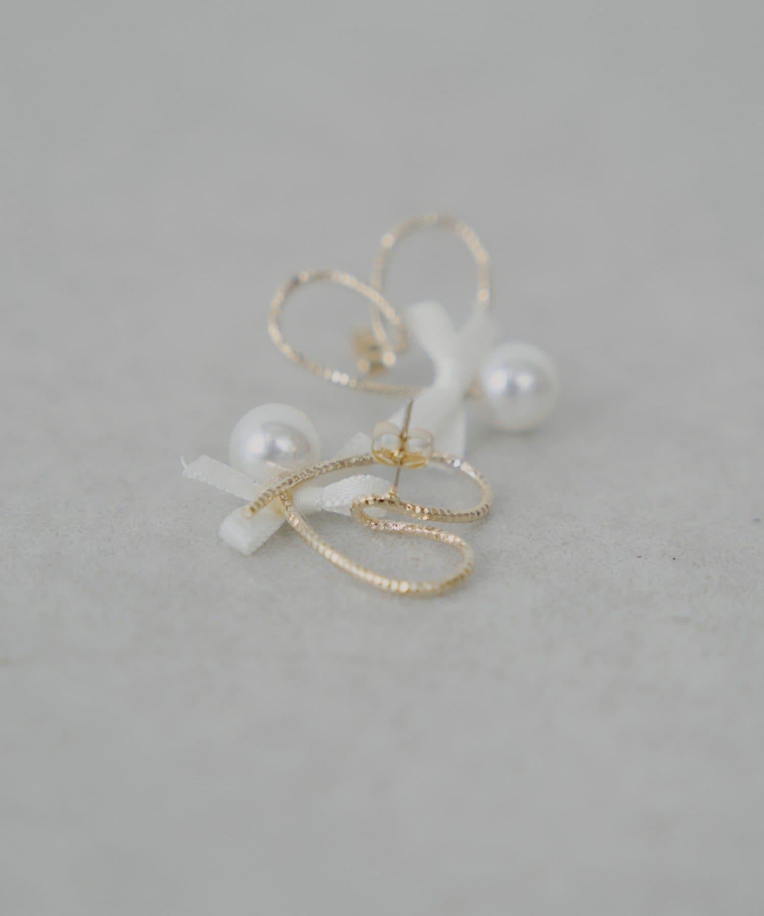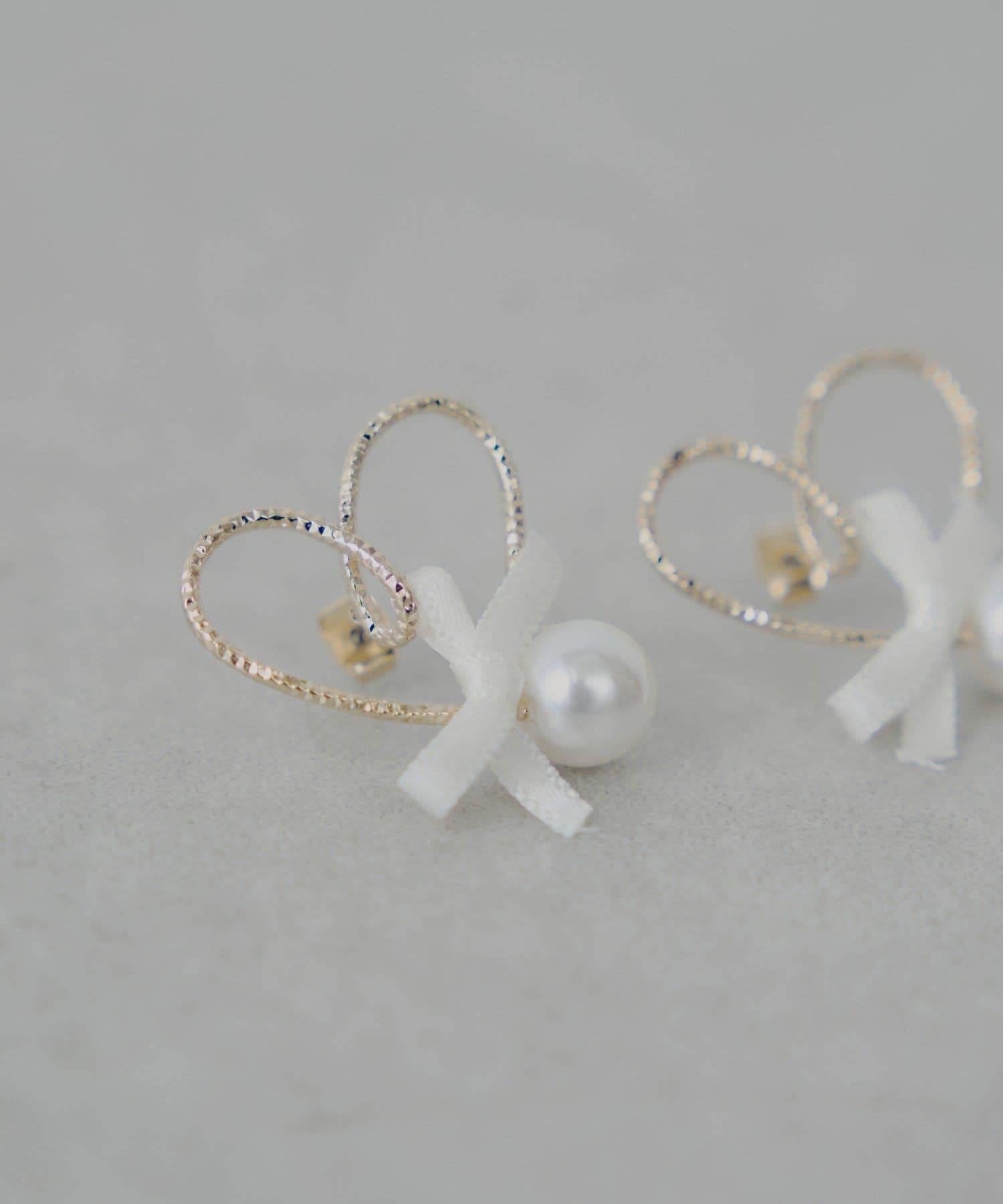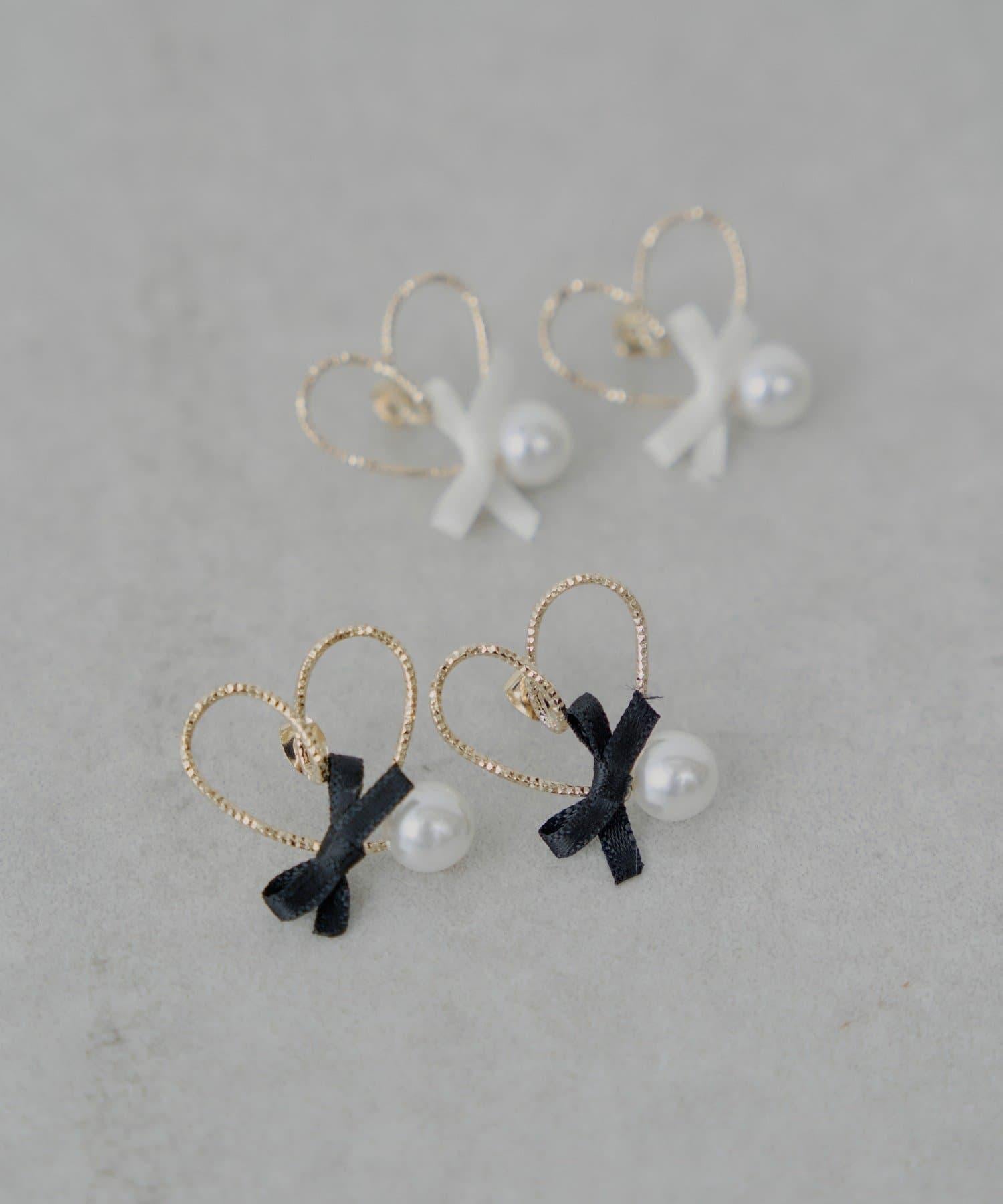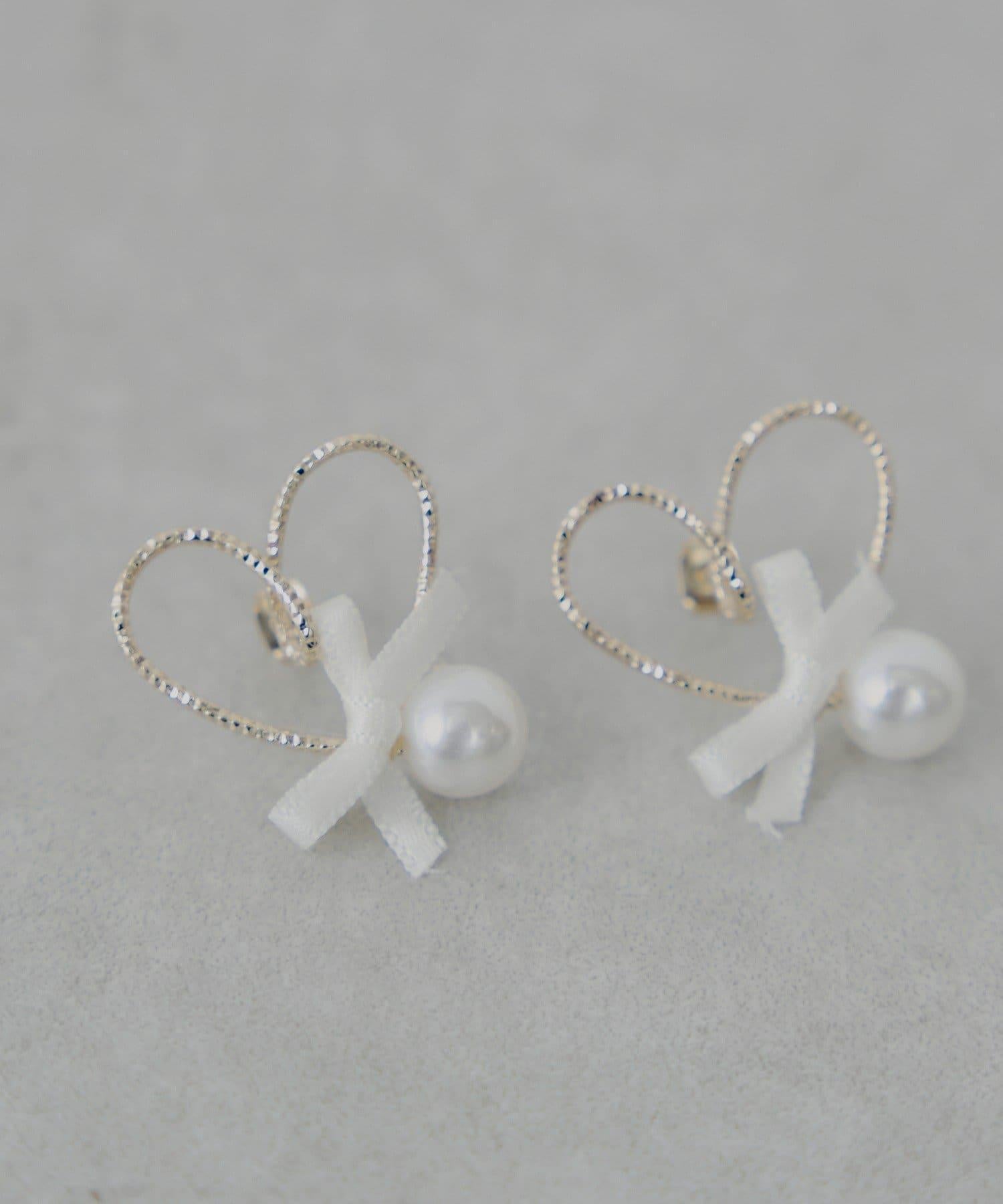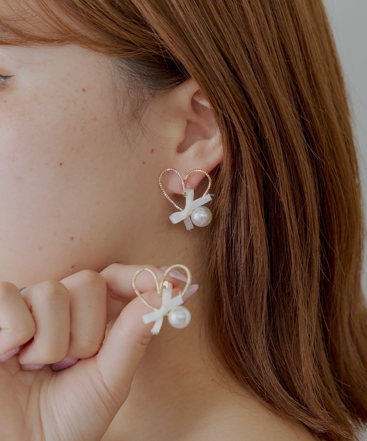 耳環的設計以心形、絲帶和珍珠的組合為基礎,增添了一絲可愛。