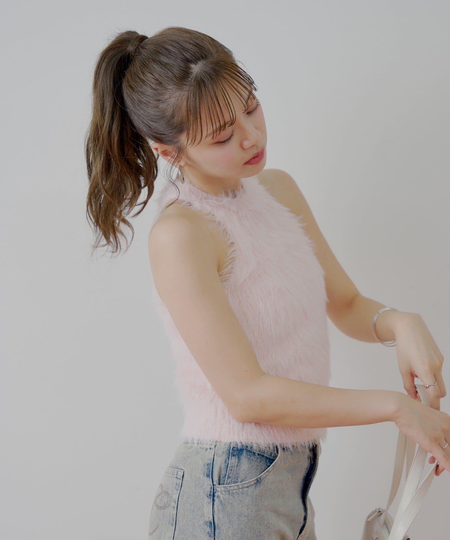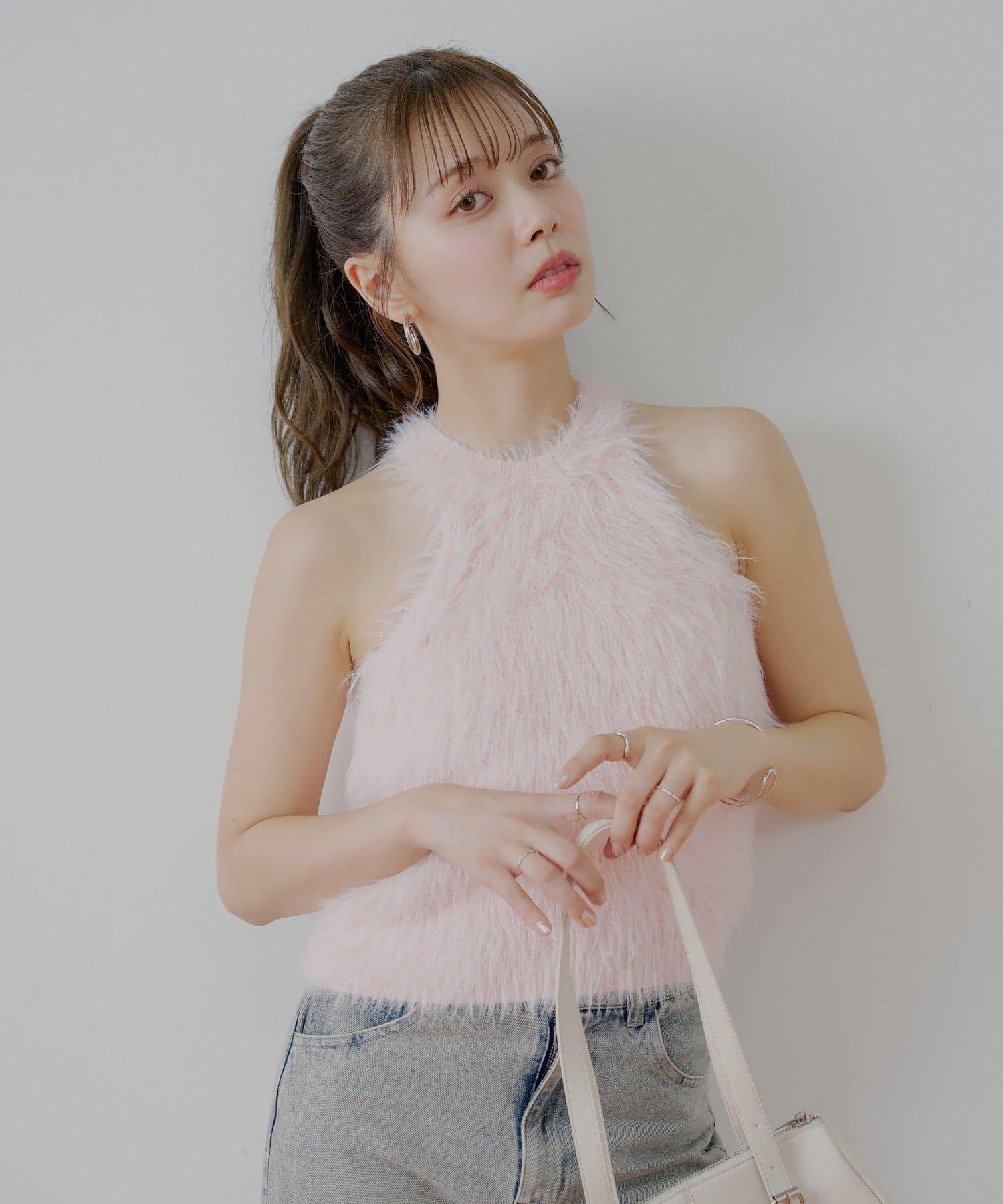 這款糖果袖針織衫蓬鬆的絨毛材質讓人忍不住想摸一摸。