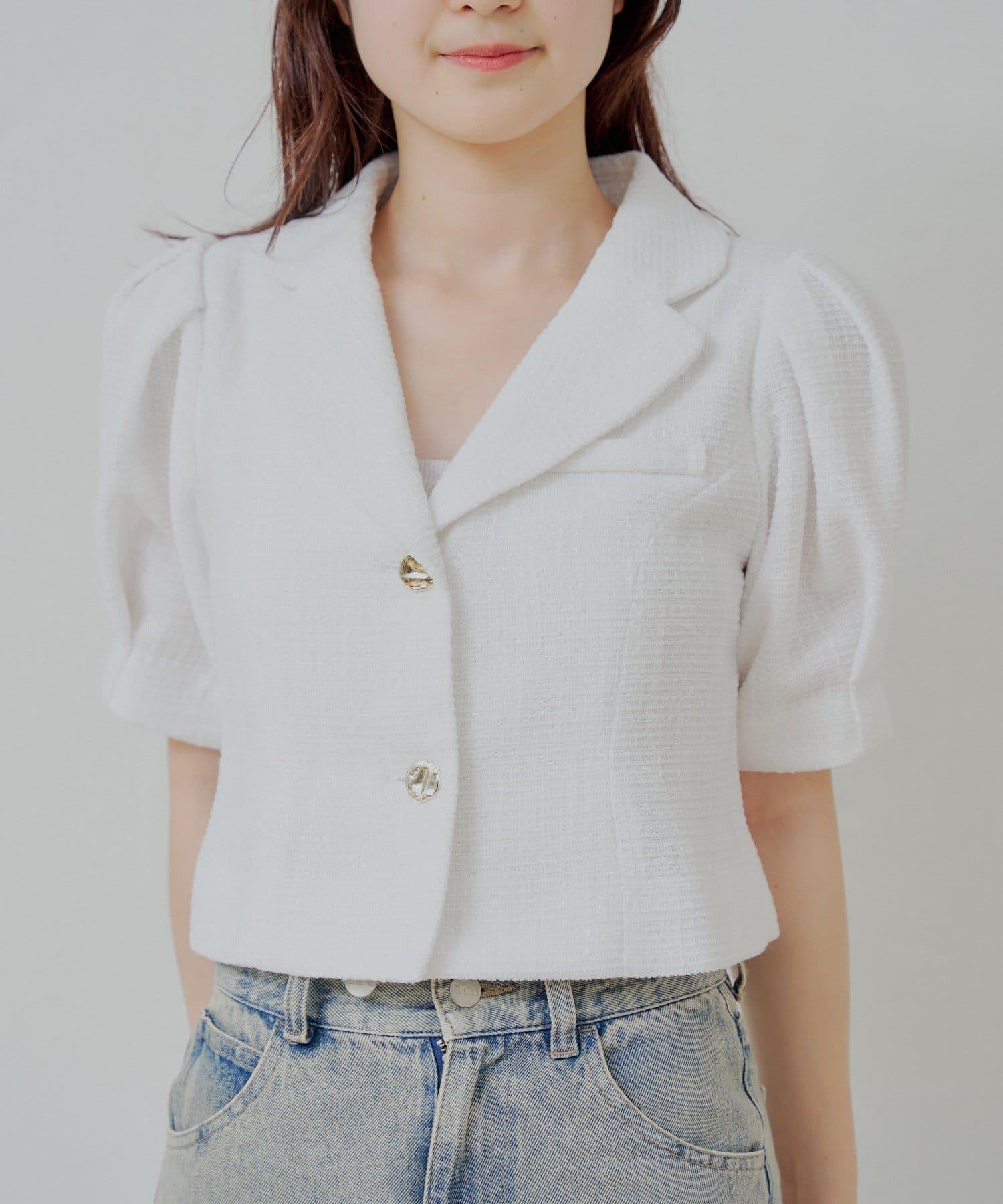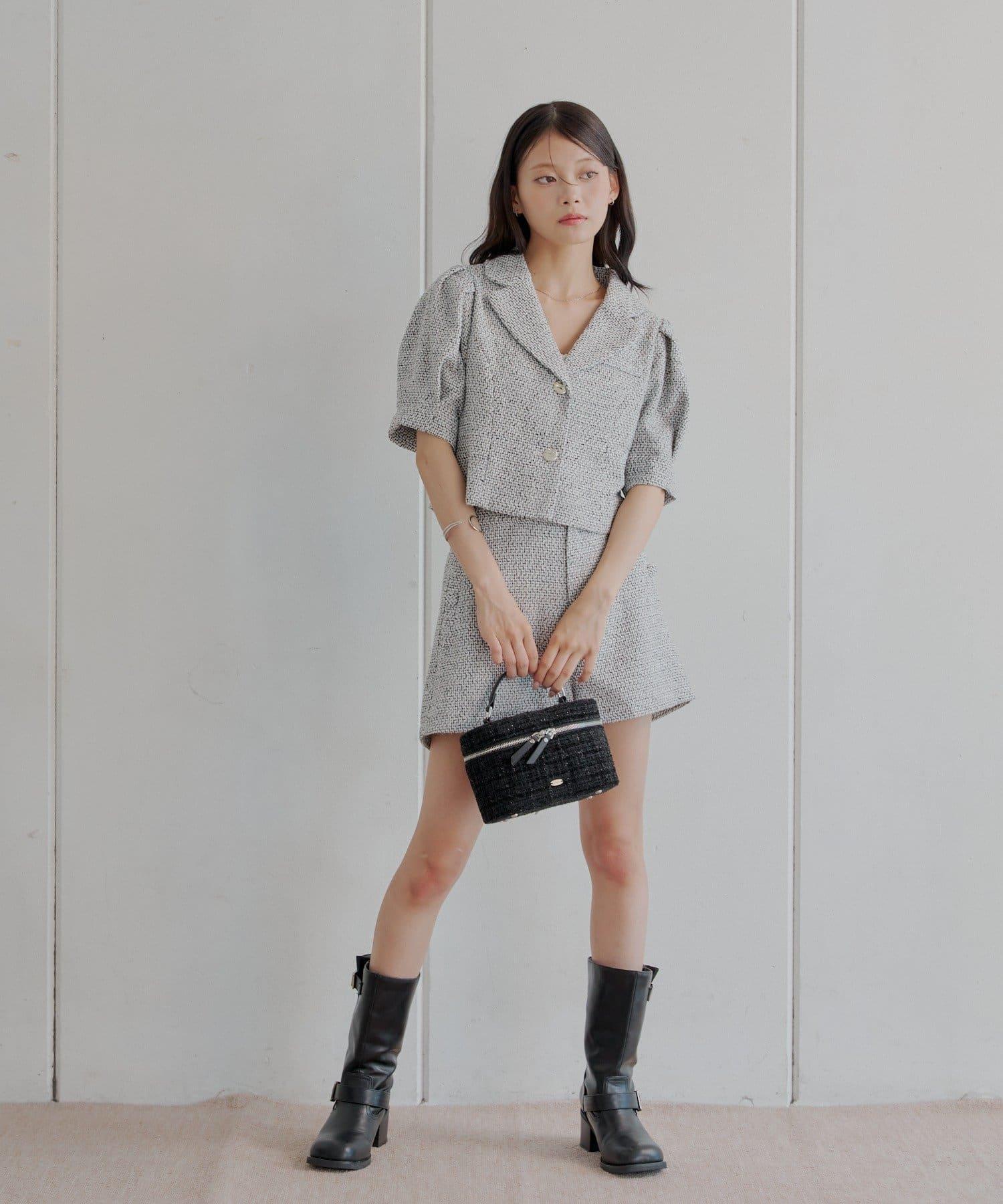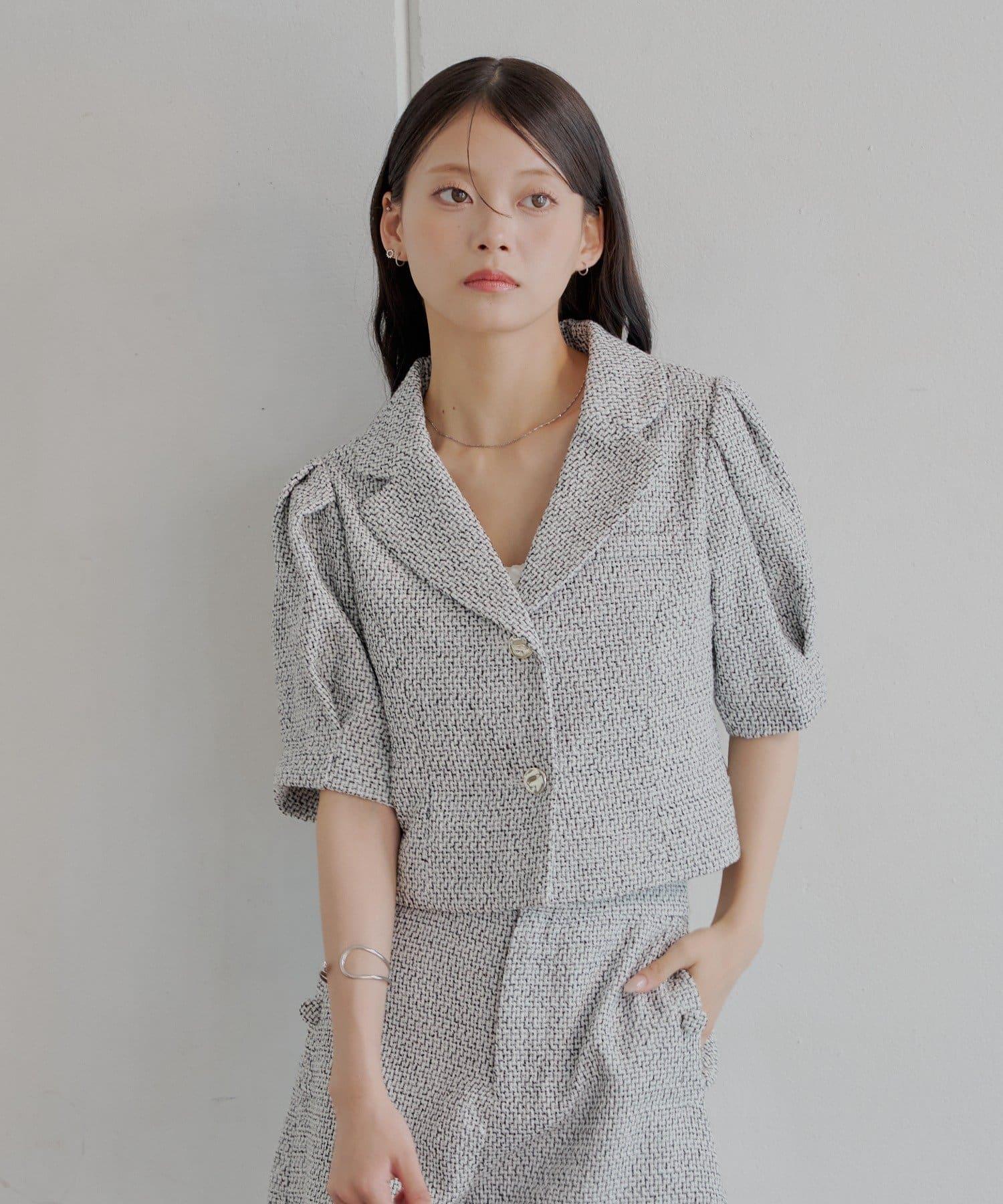 Chico 泡泡袖短款粗花呢夾克