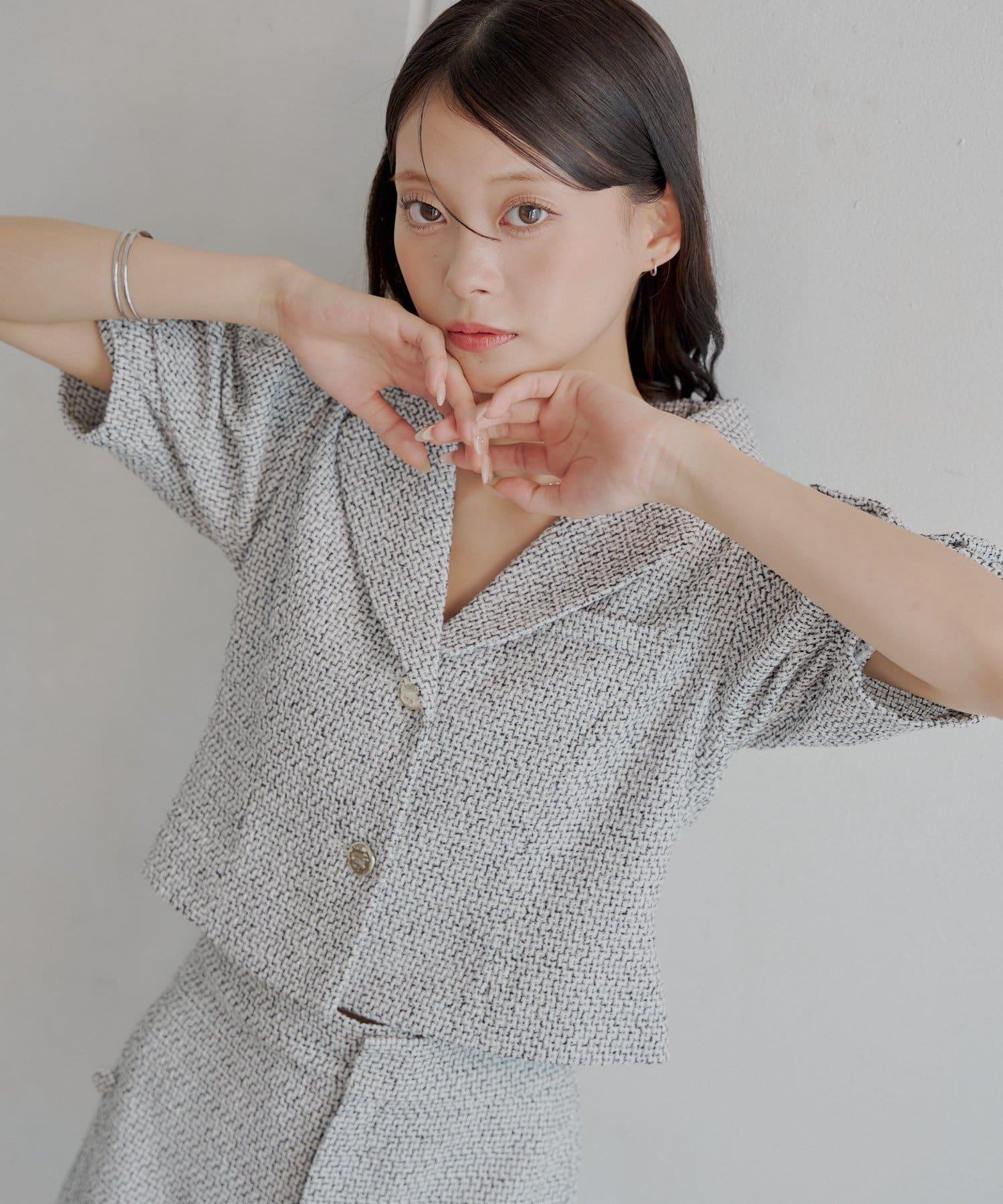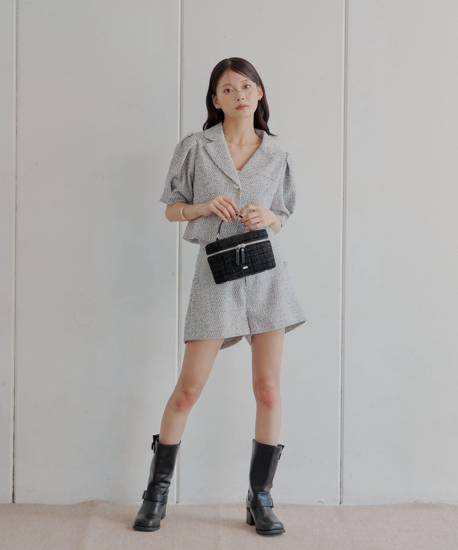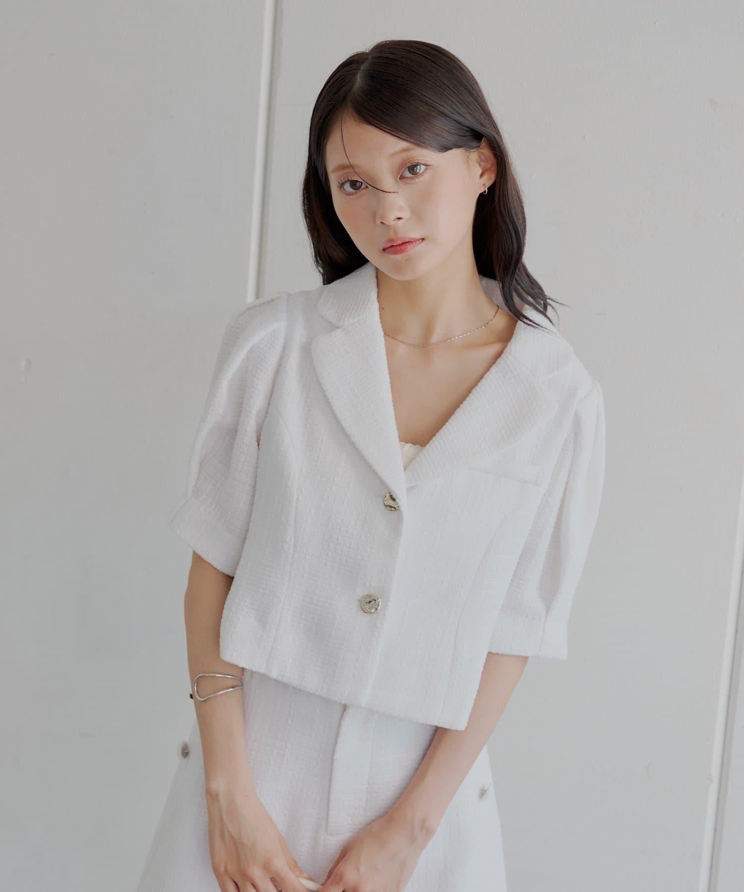 Chico 泡泡袖短款粗花呢夾克