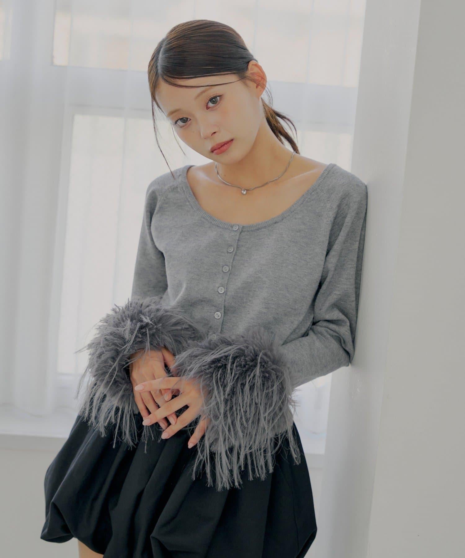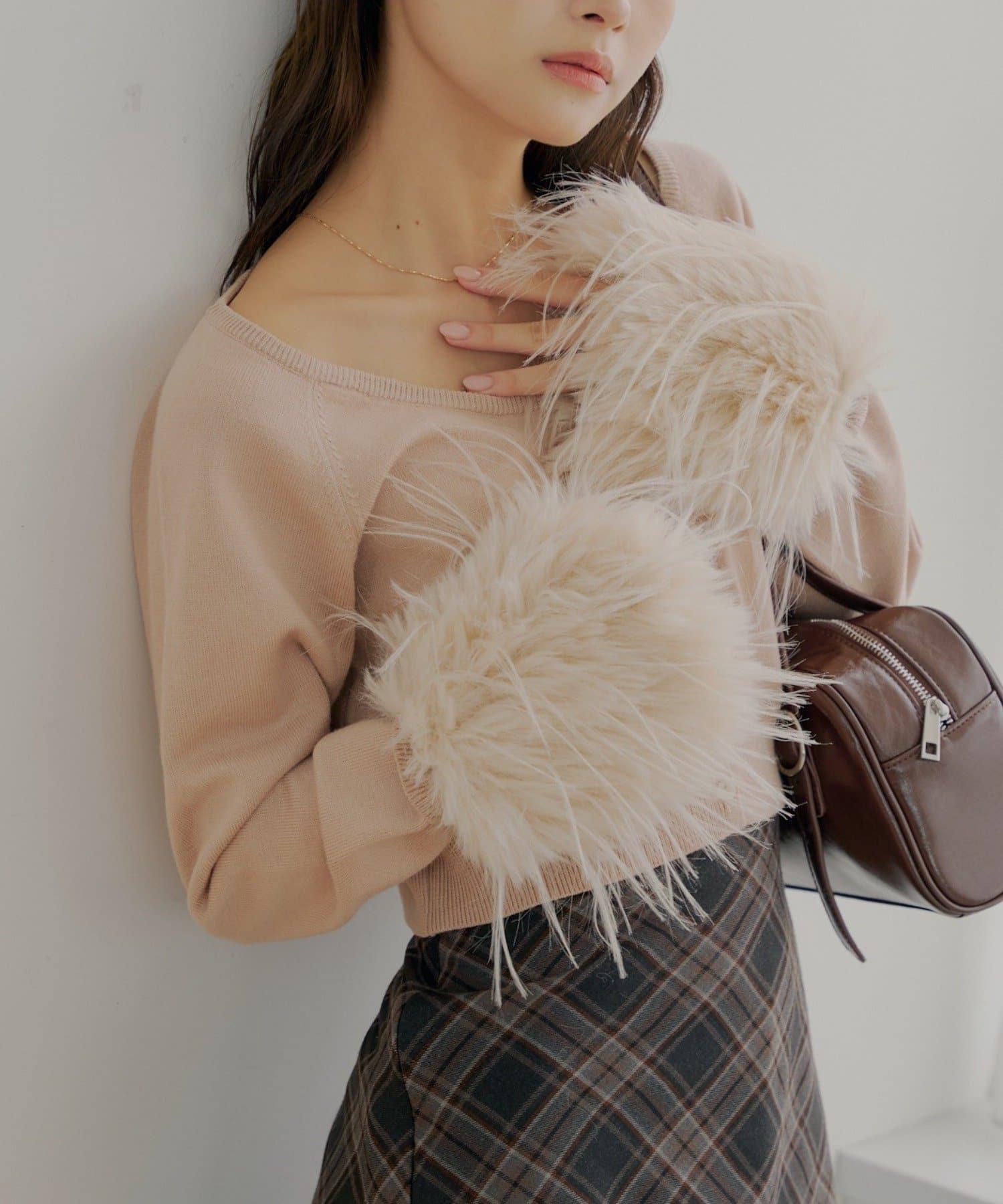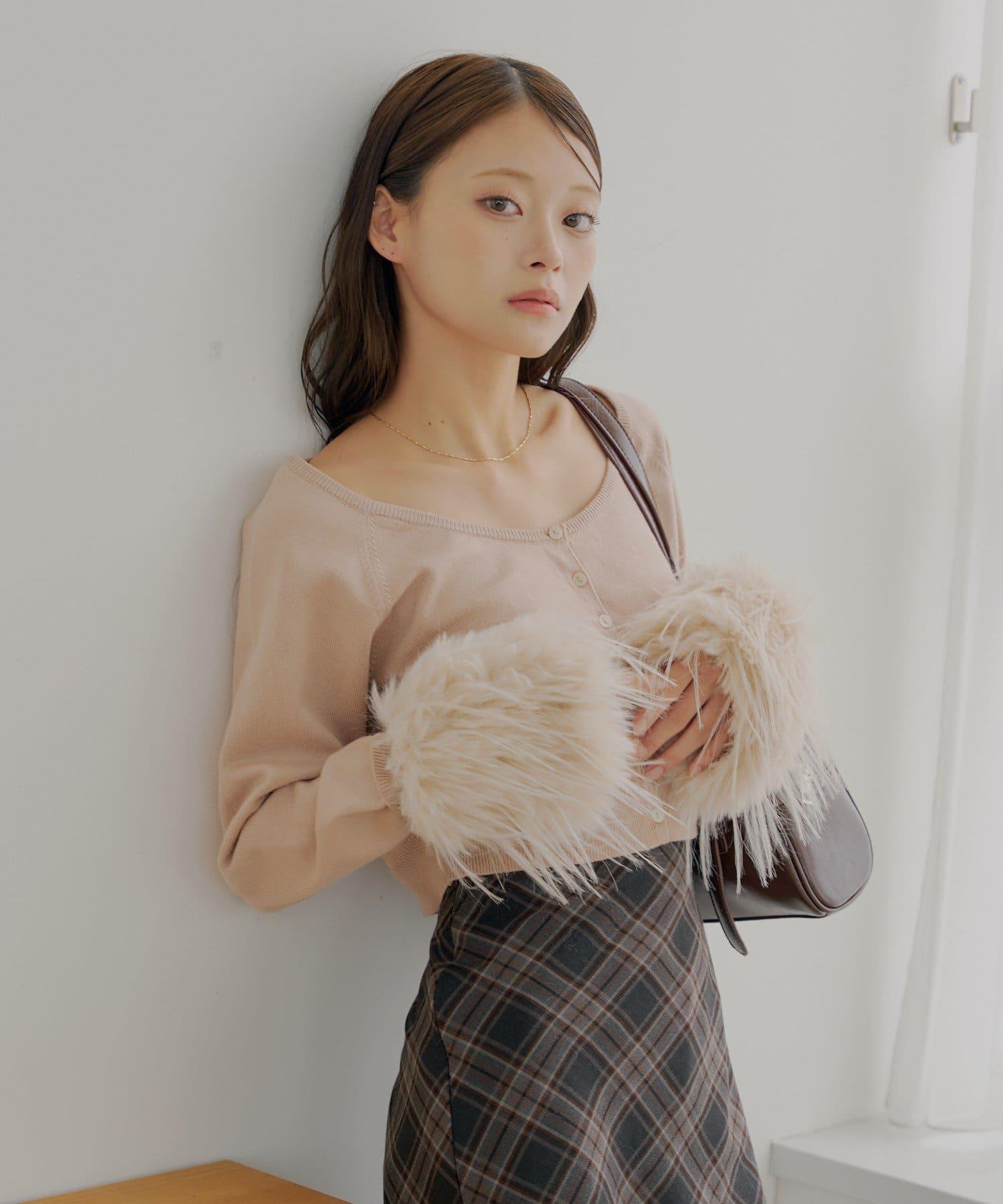 毛茸茸的皮草袖子讓這款開衫十分搶眼!