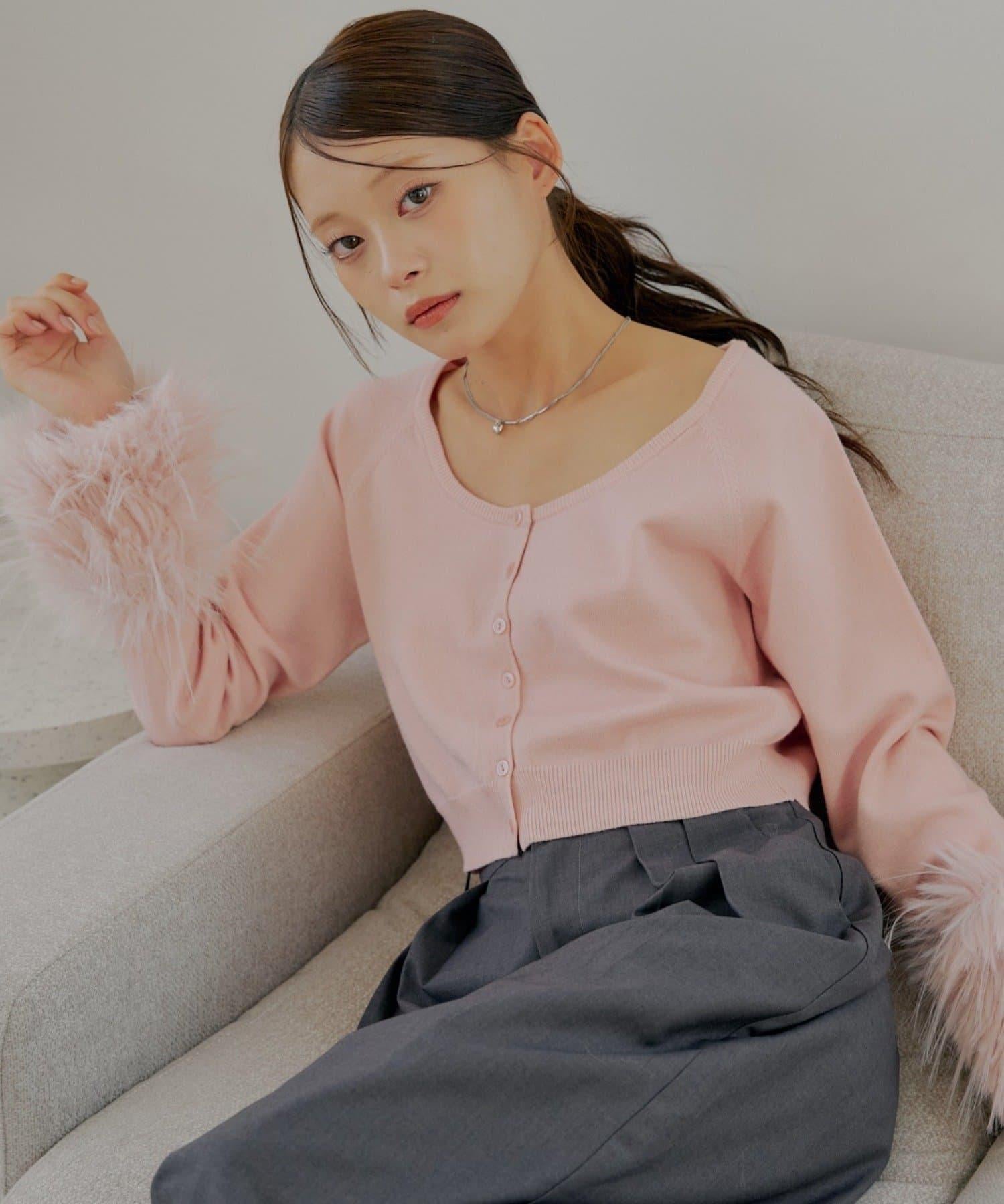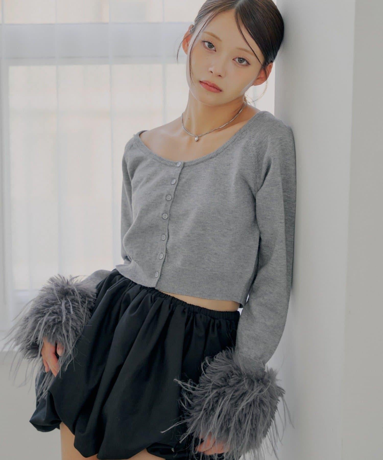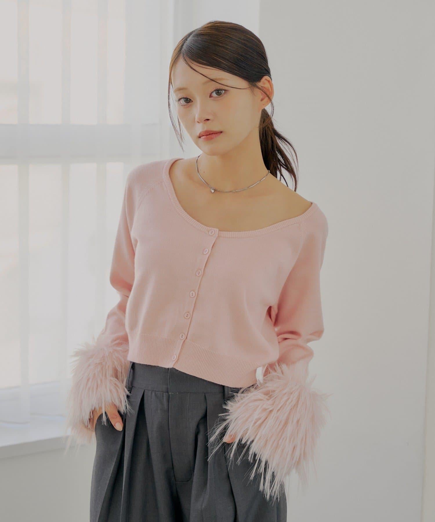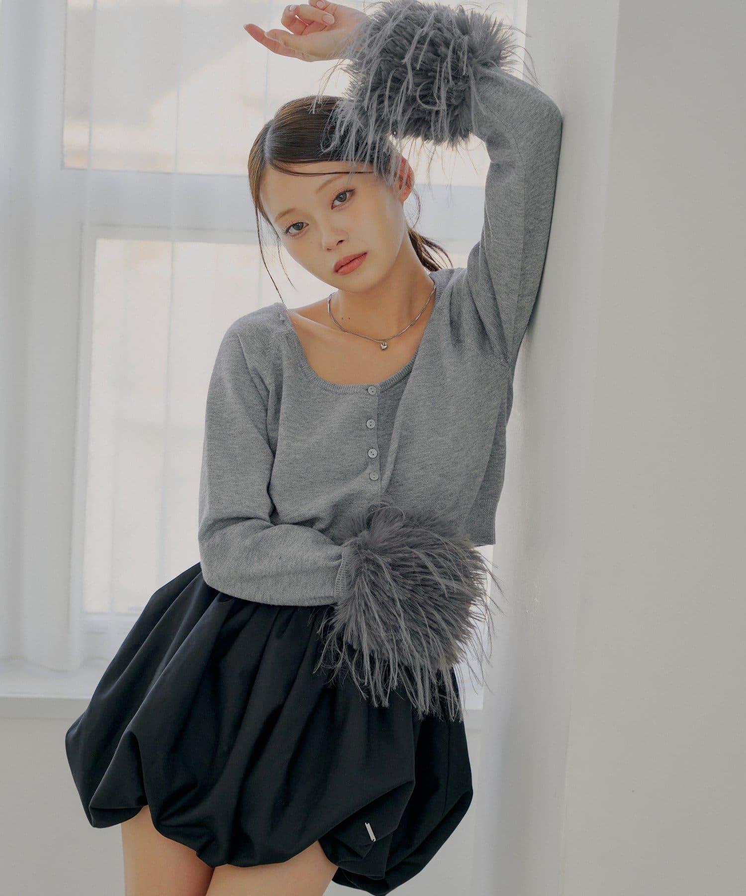 毛茸茸的皮草袖子讓這款開衫十分搶眼!
