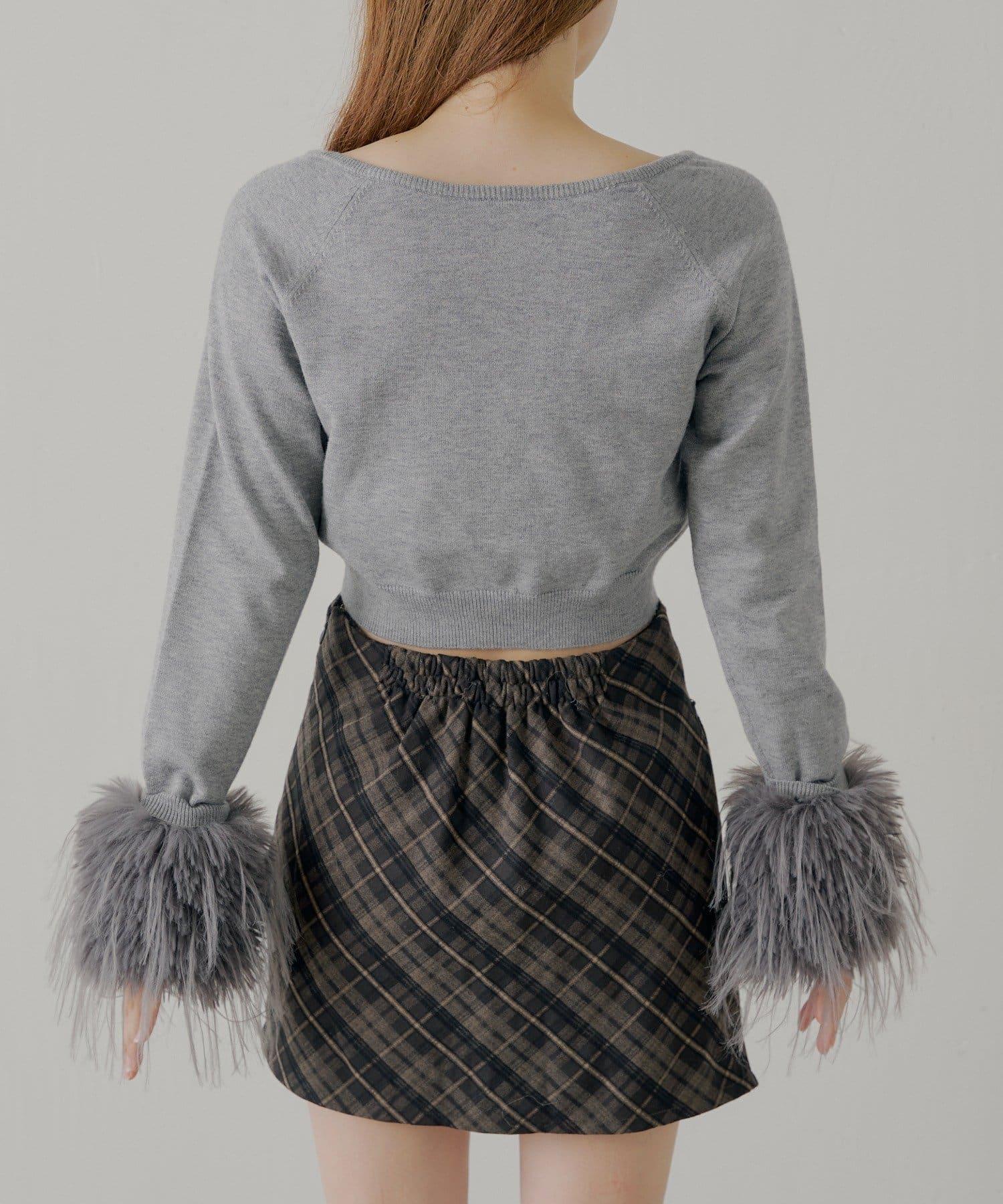 這款開衫設計簡潔,袖子上有毛皮裝飾。