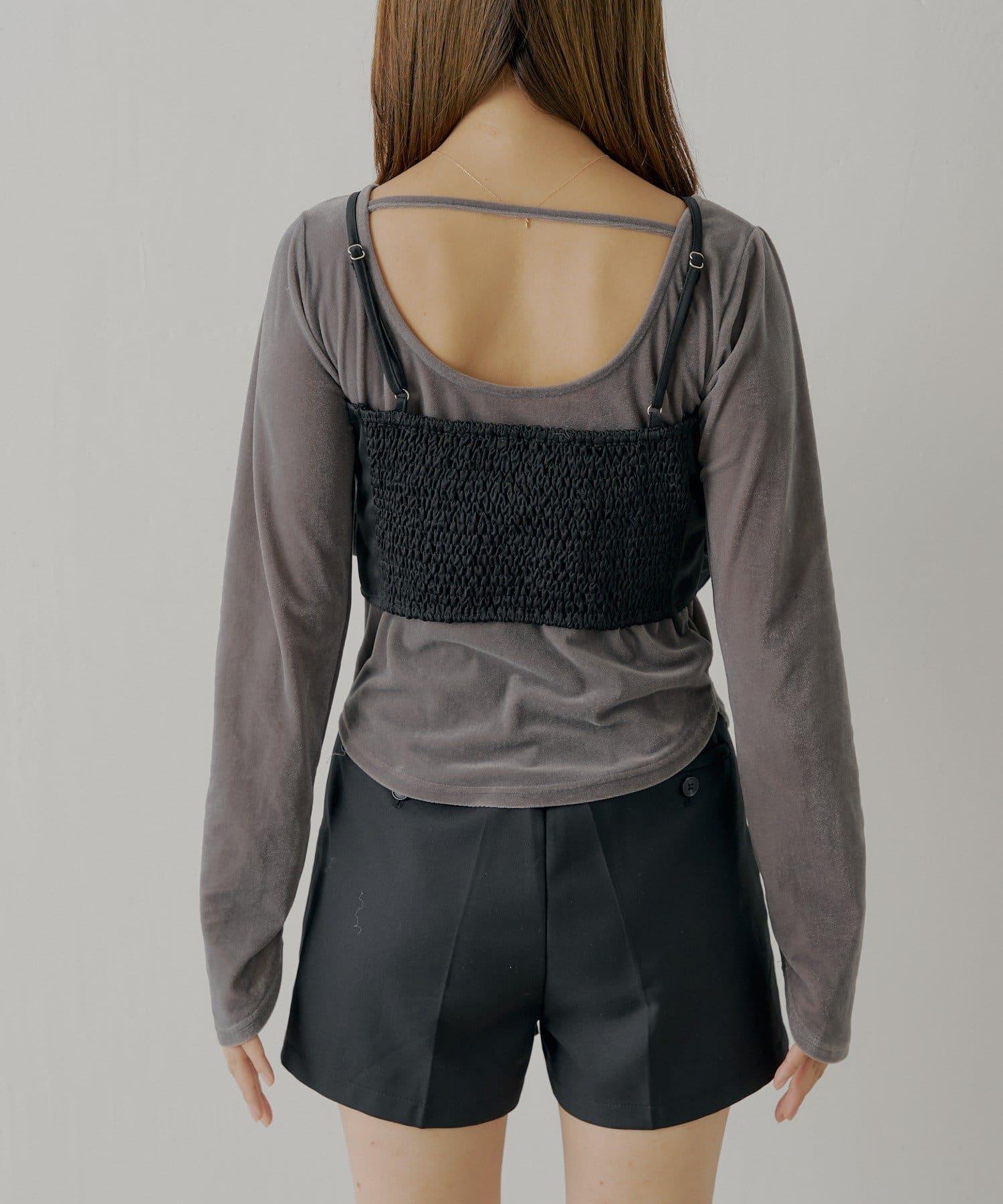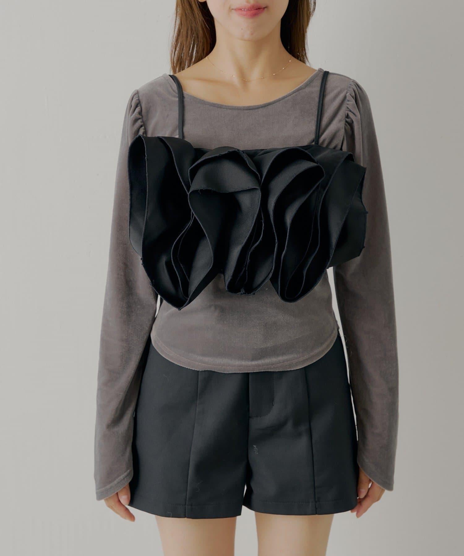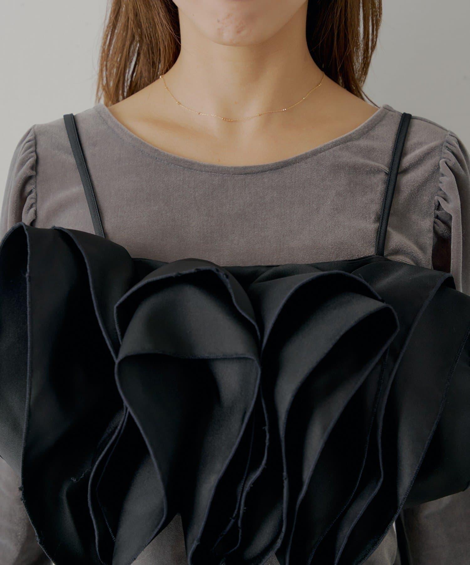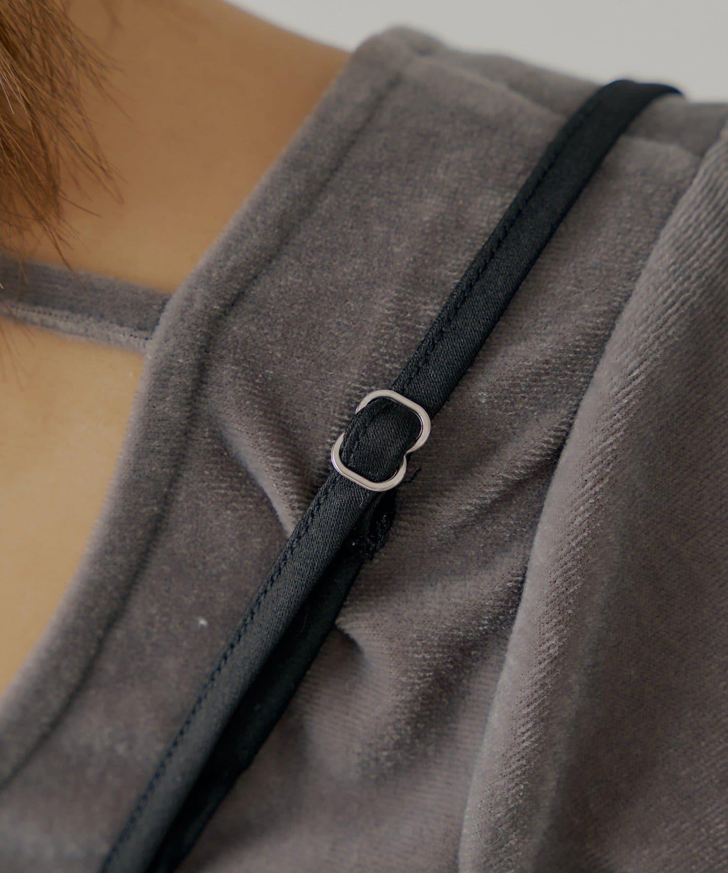 【Chico】荷葉邊吊帶+天鵝絨上衣套裝