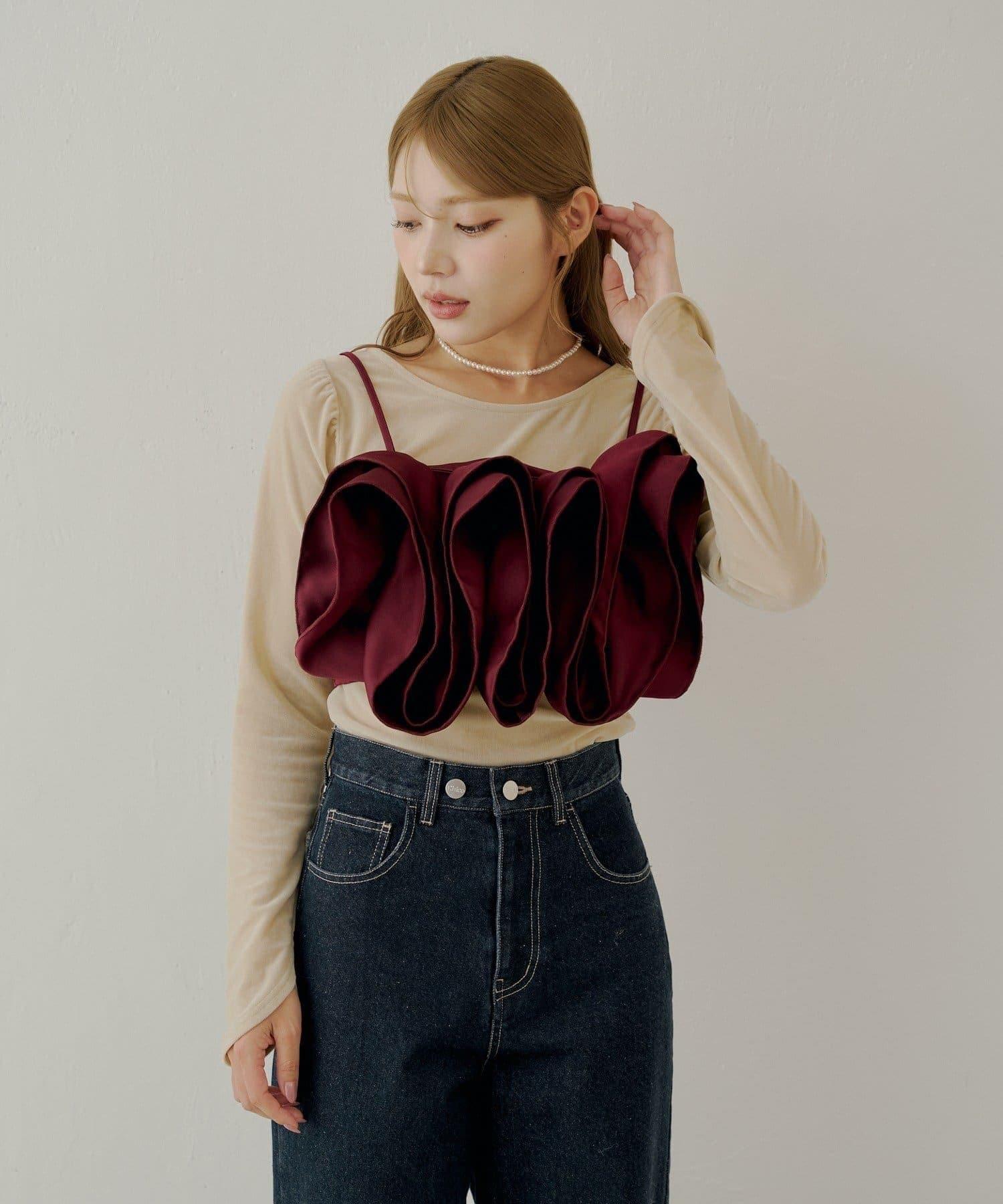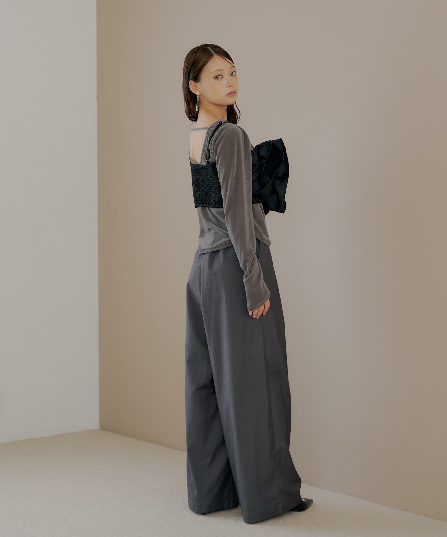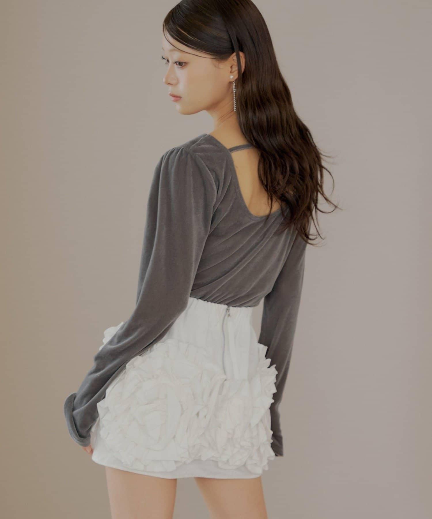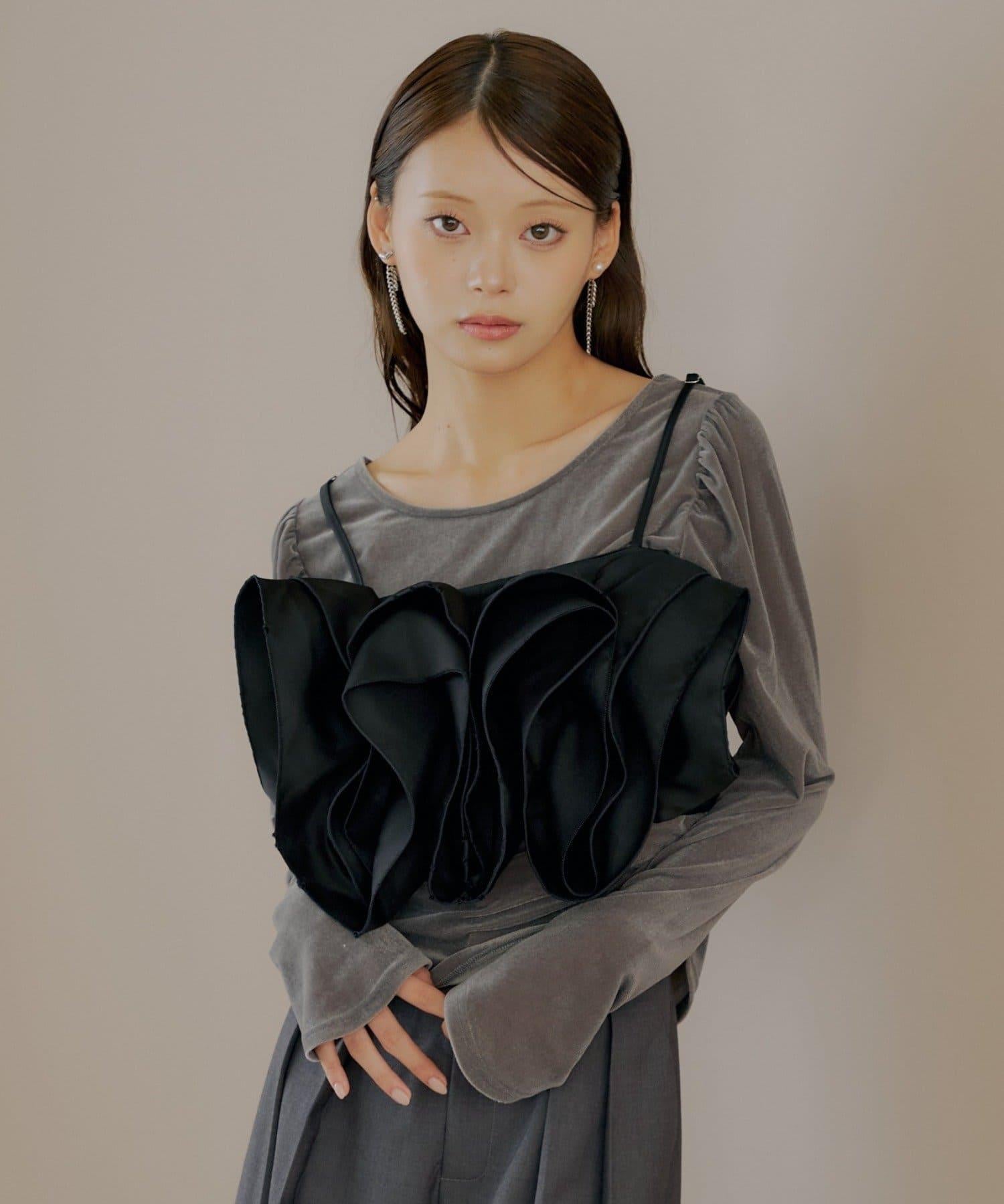 【Chico】荷葉邊吊帶+天鵝絨上衣套裝
