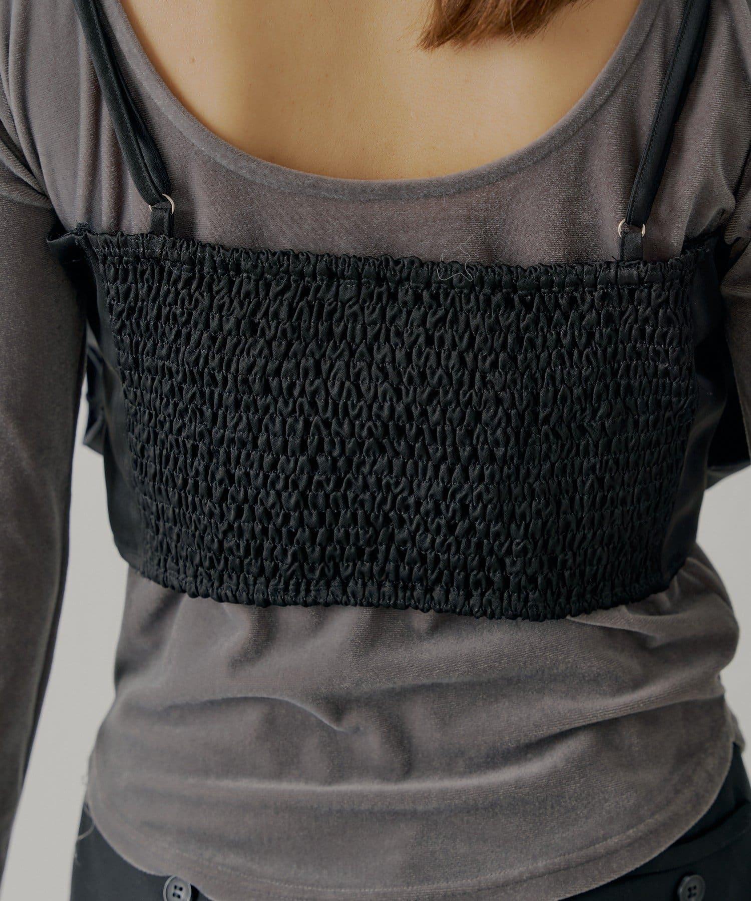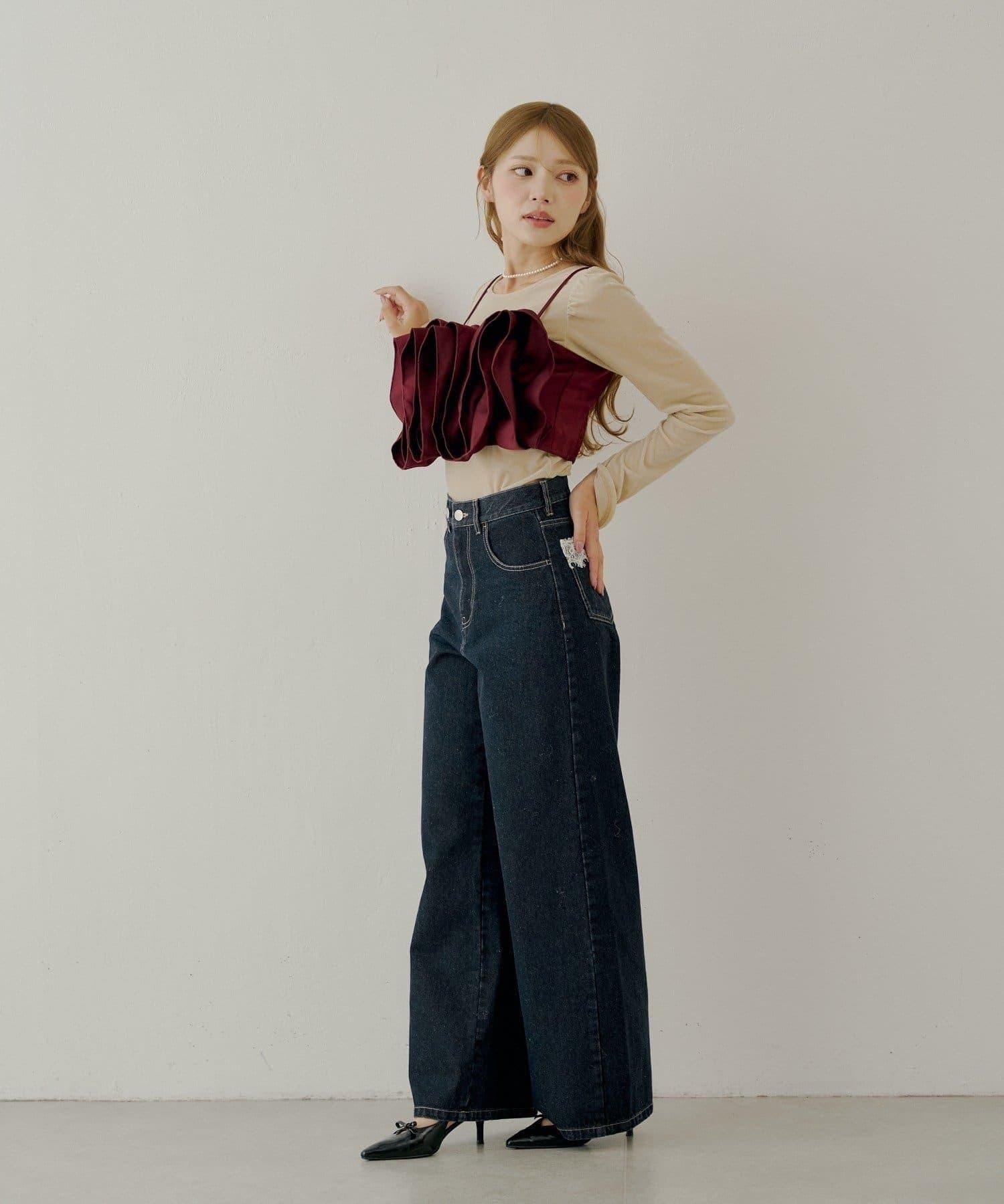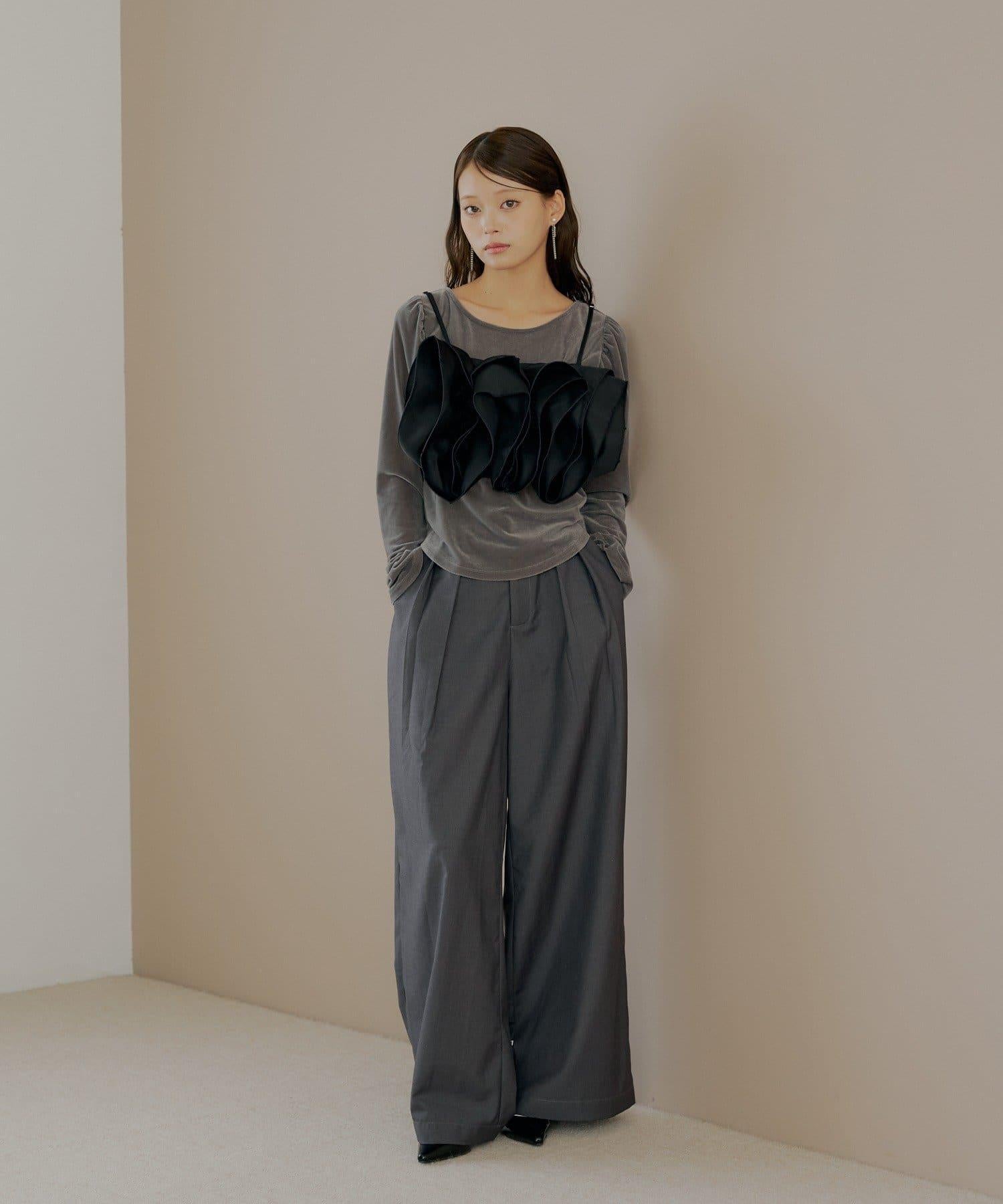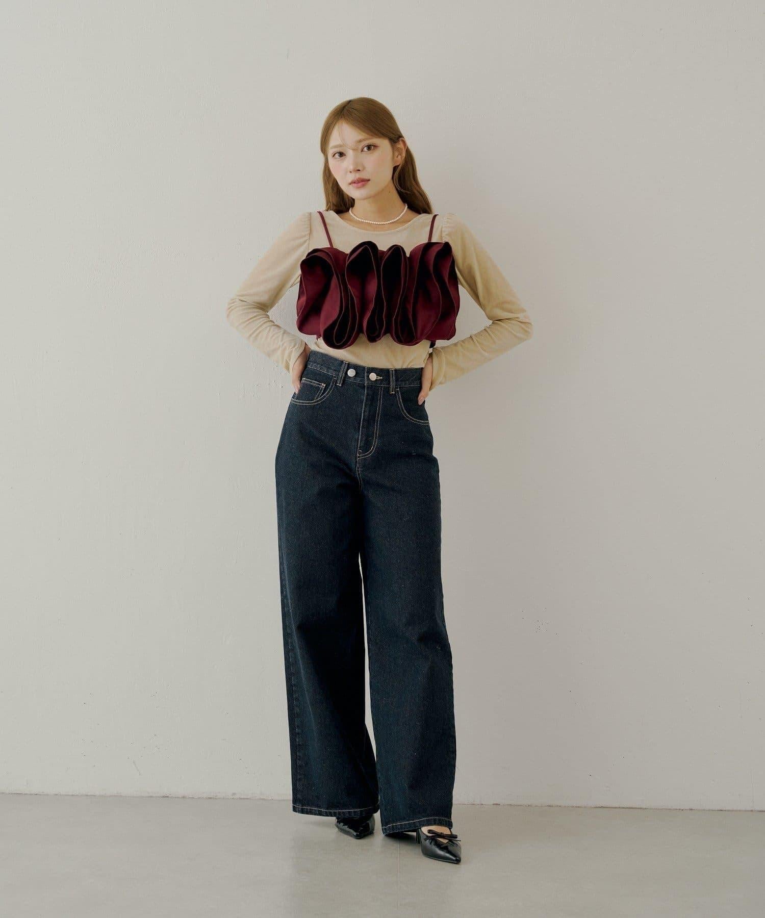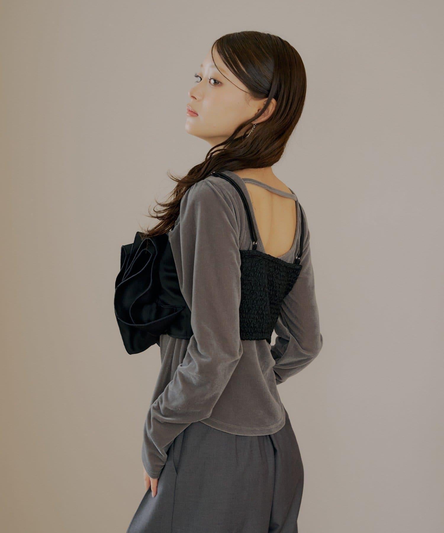 【Chico】荷葉邊吊帶+天鵝絨上衣套裝