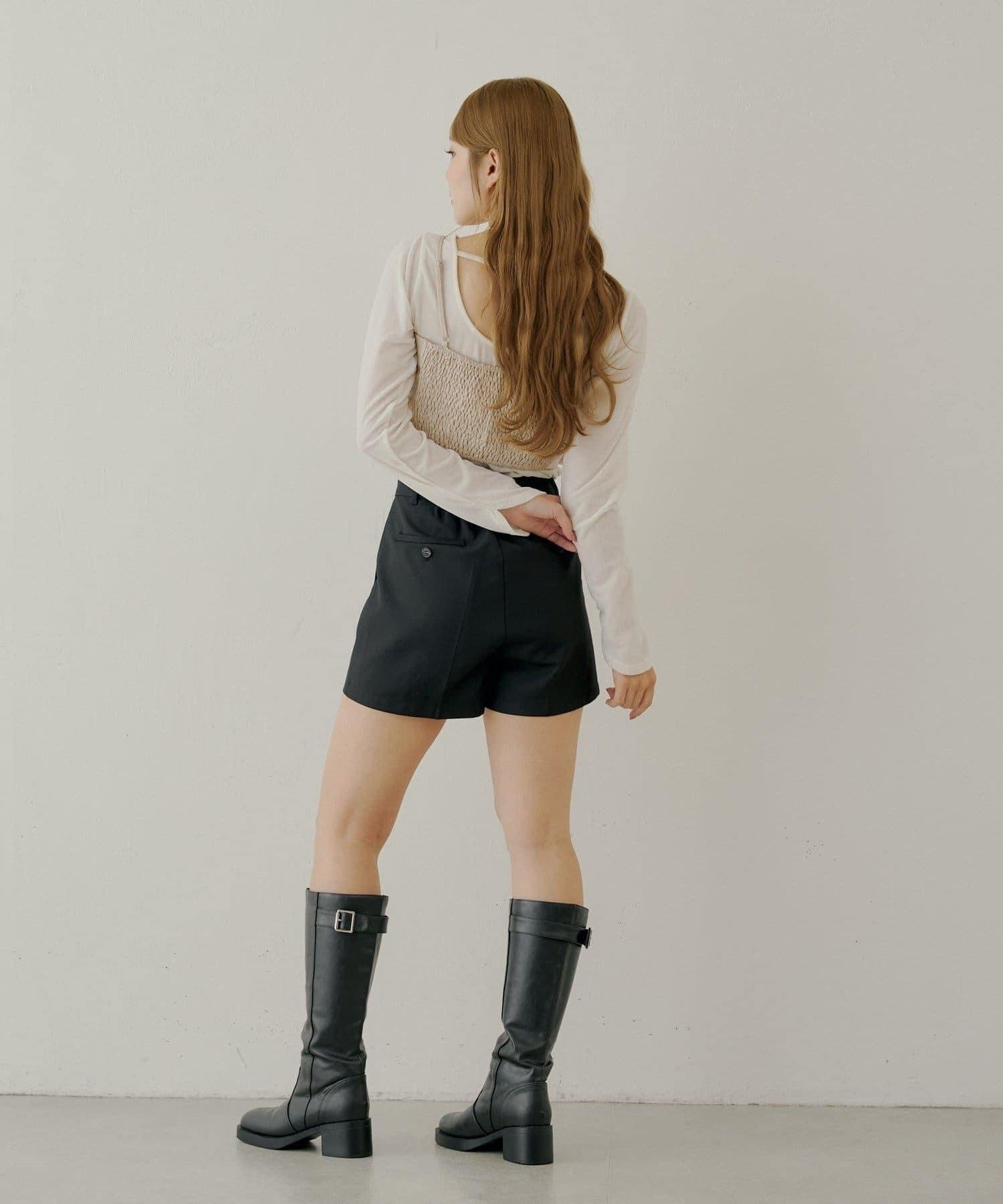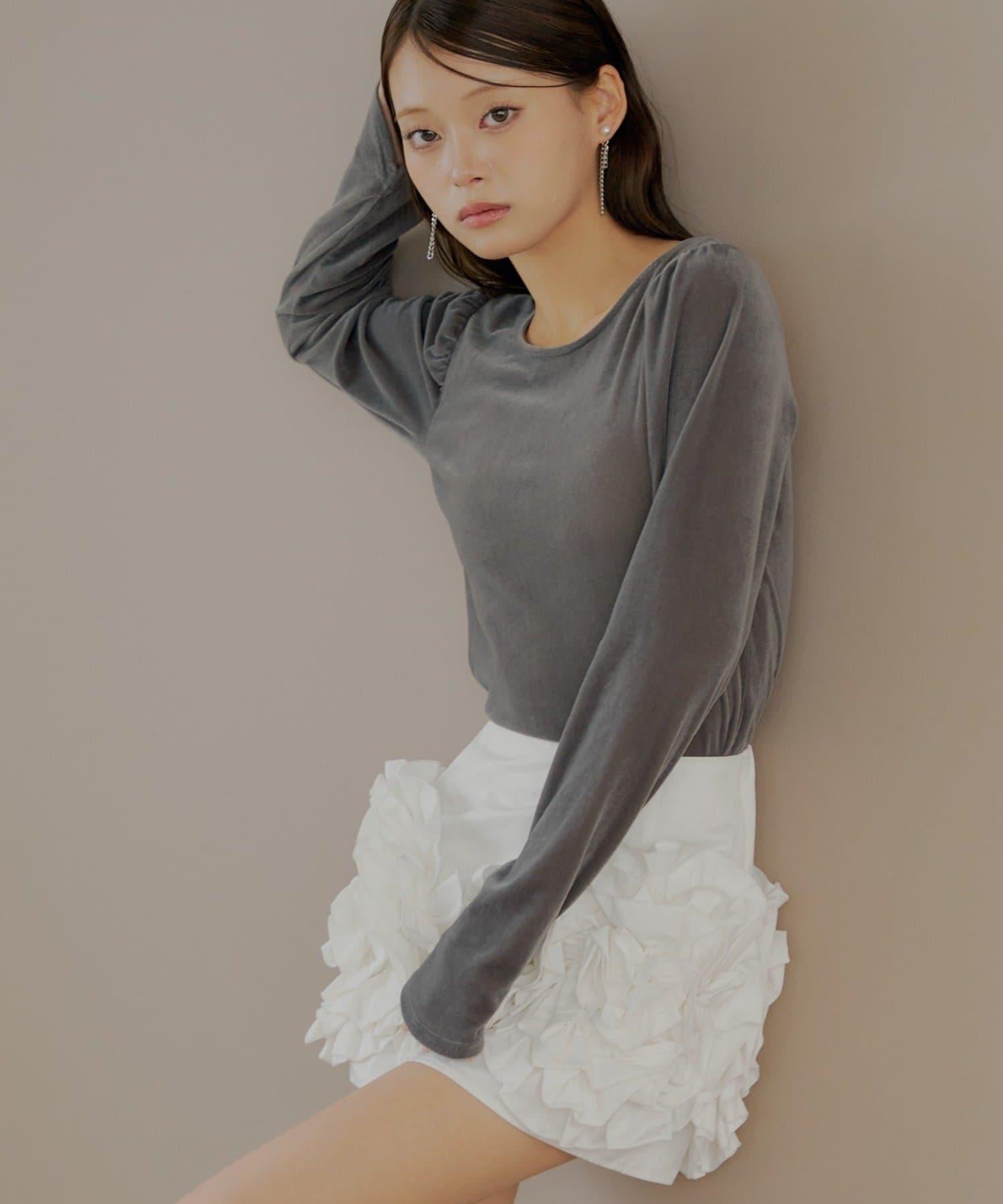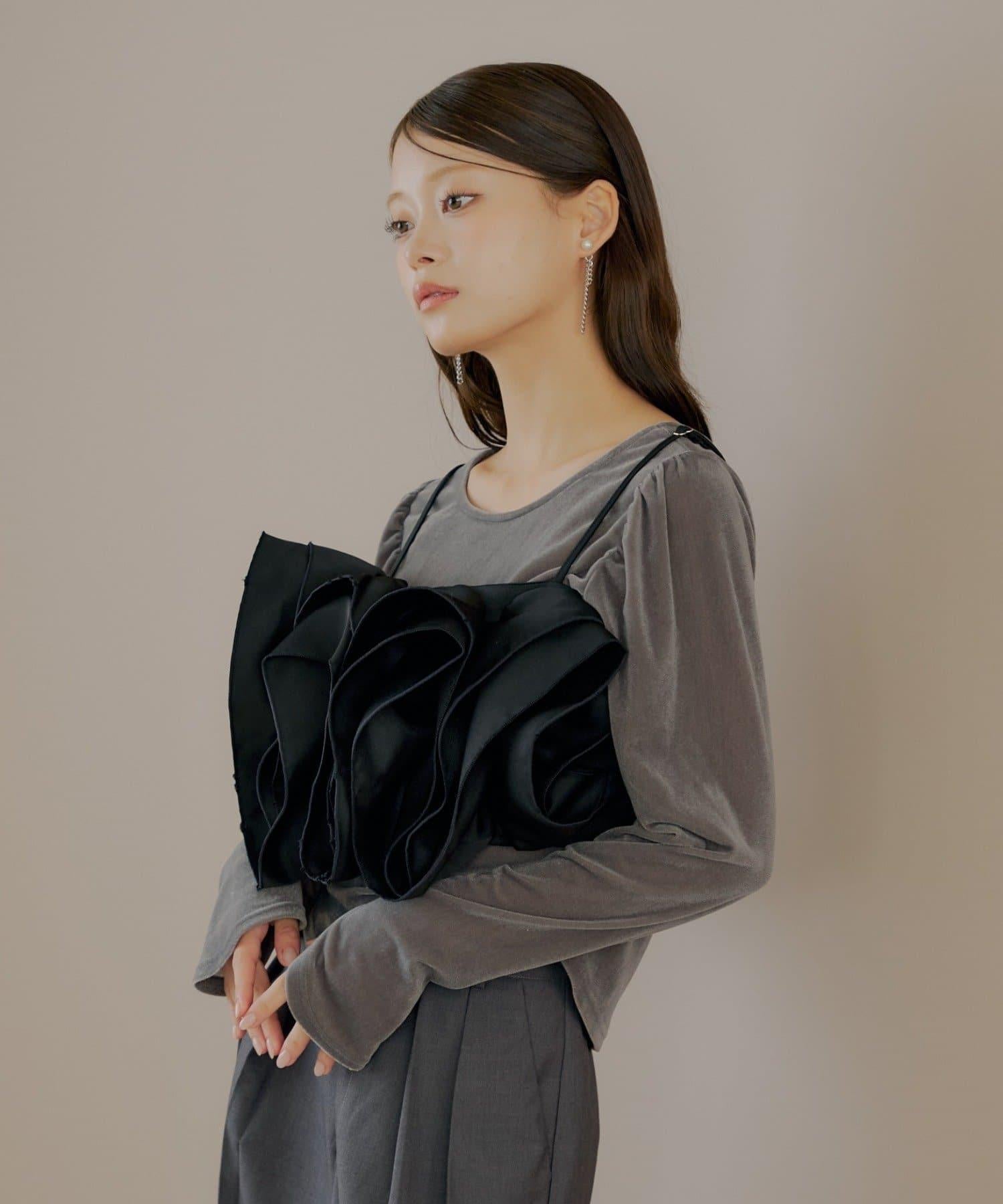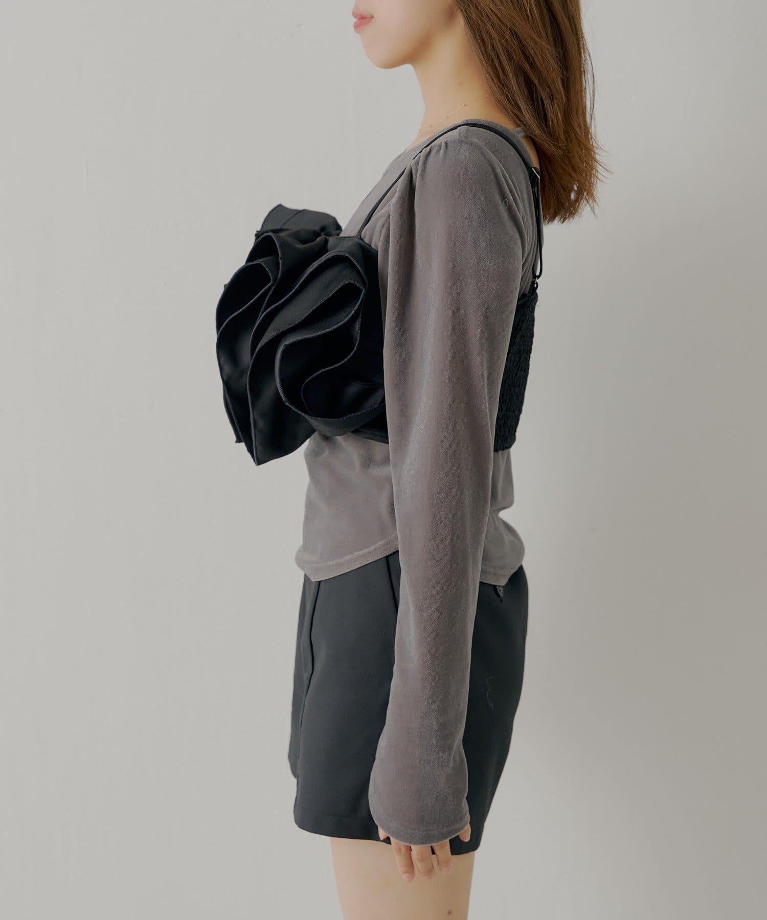 【Chico】荷葉邊吊帶+天鵝絨上衣套裝