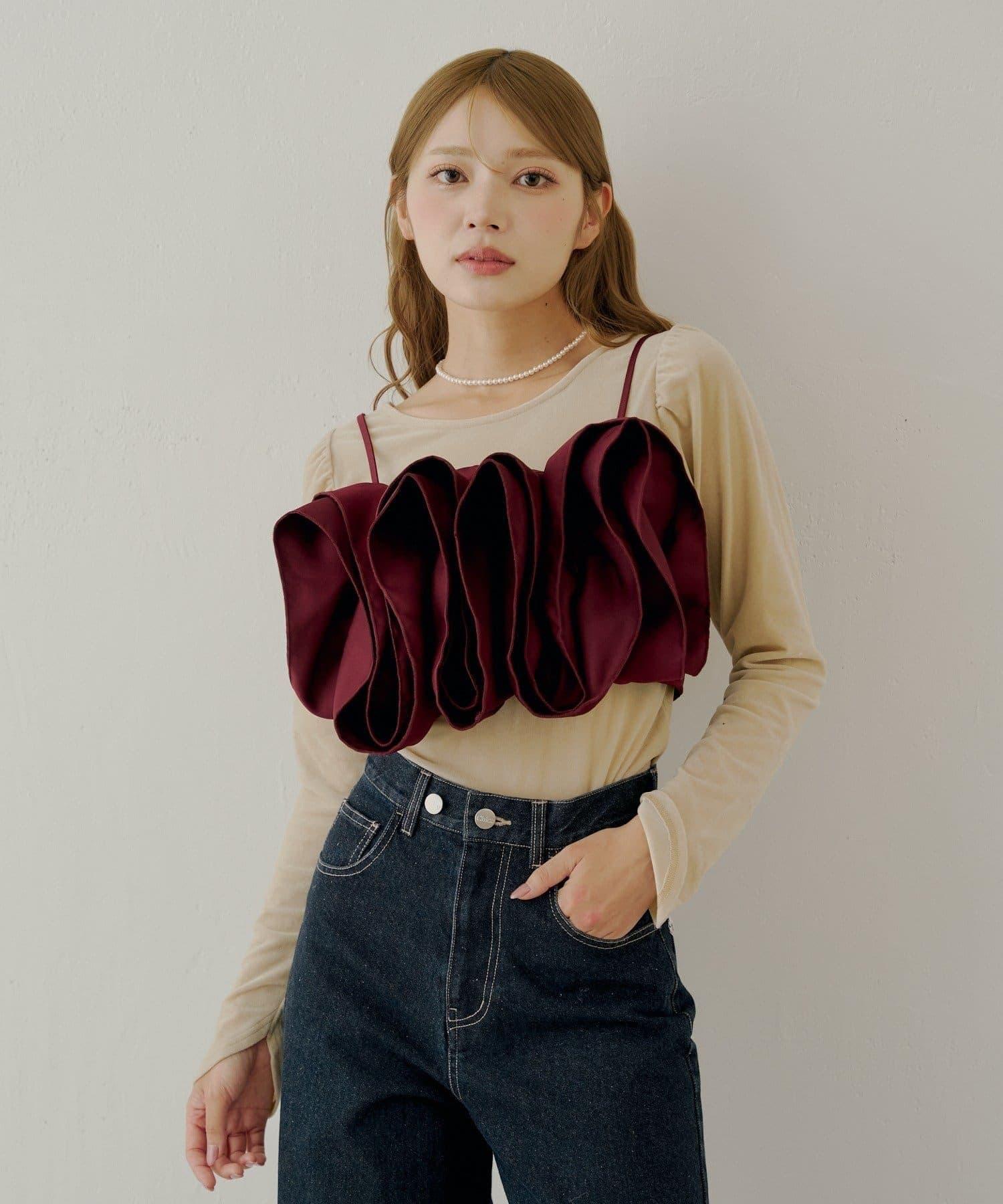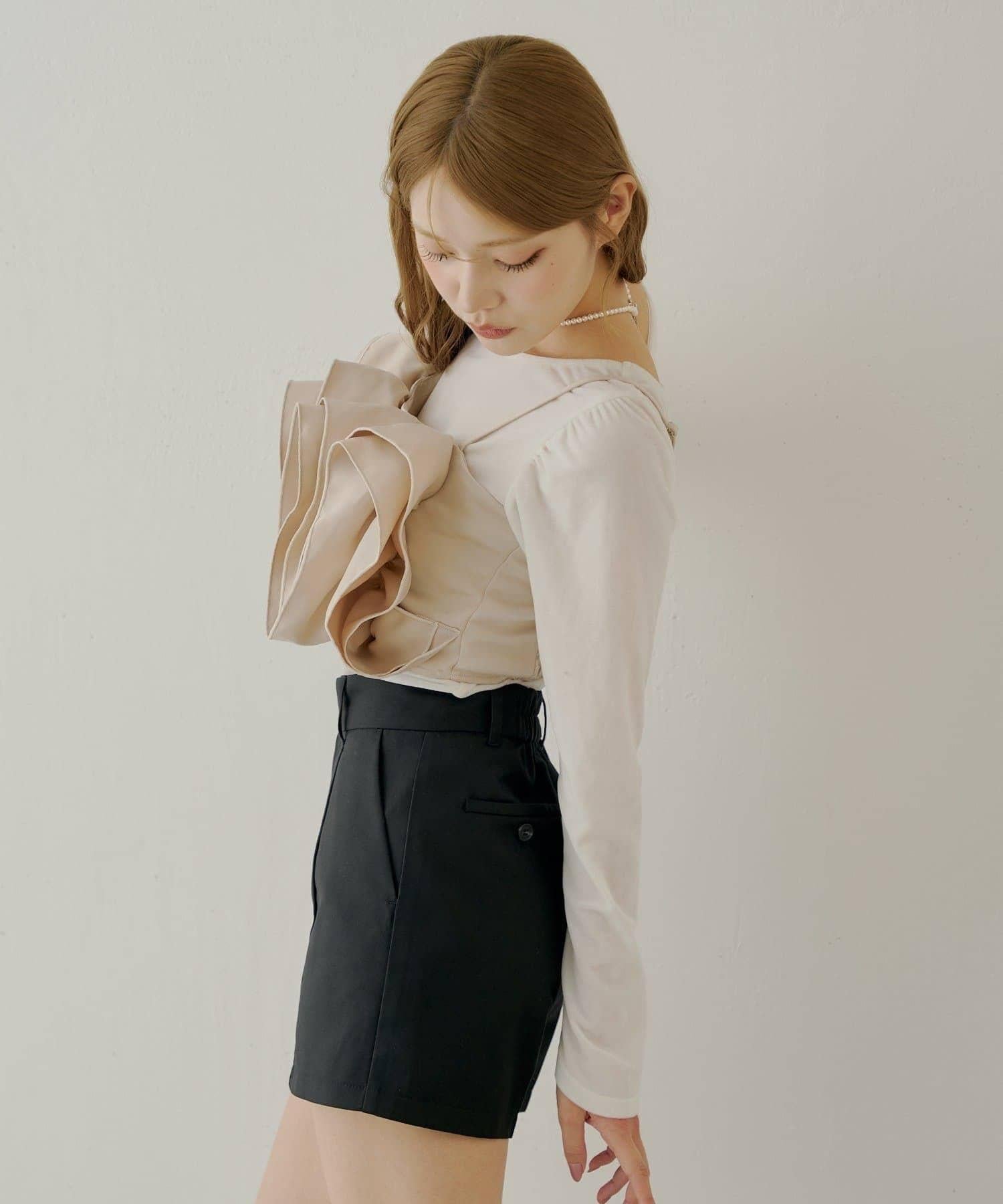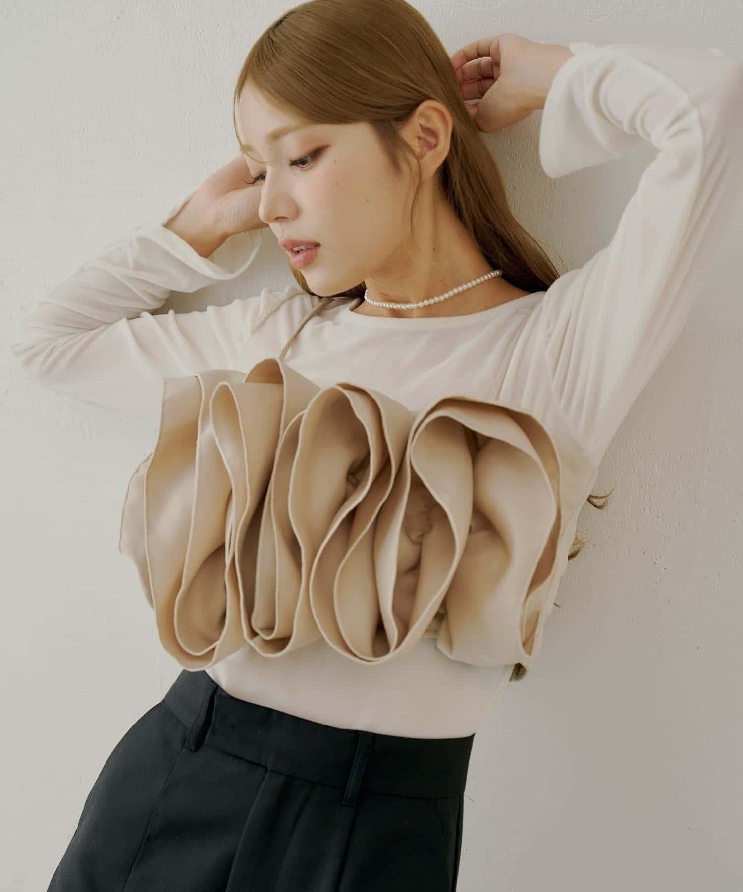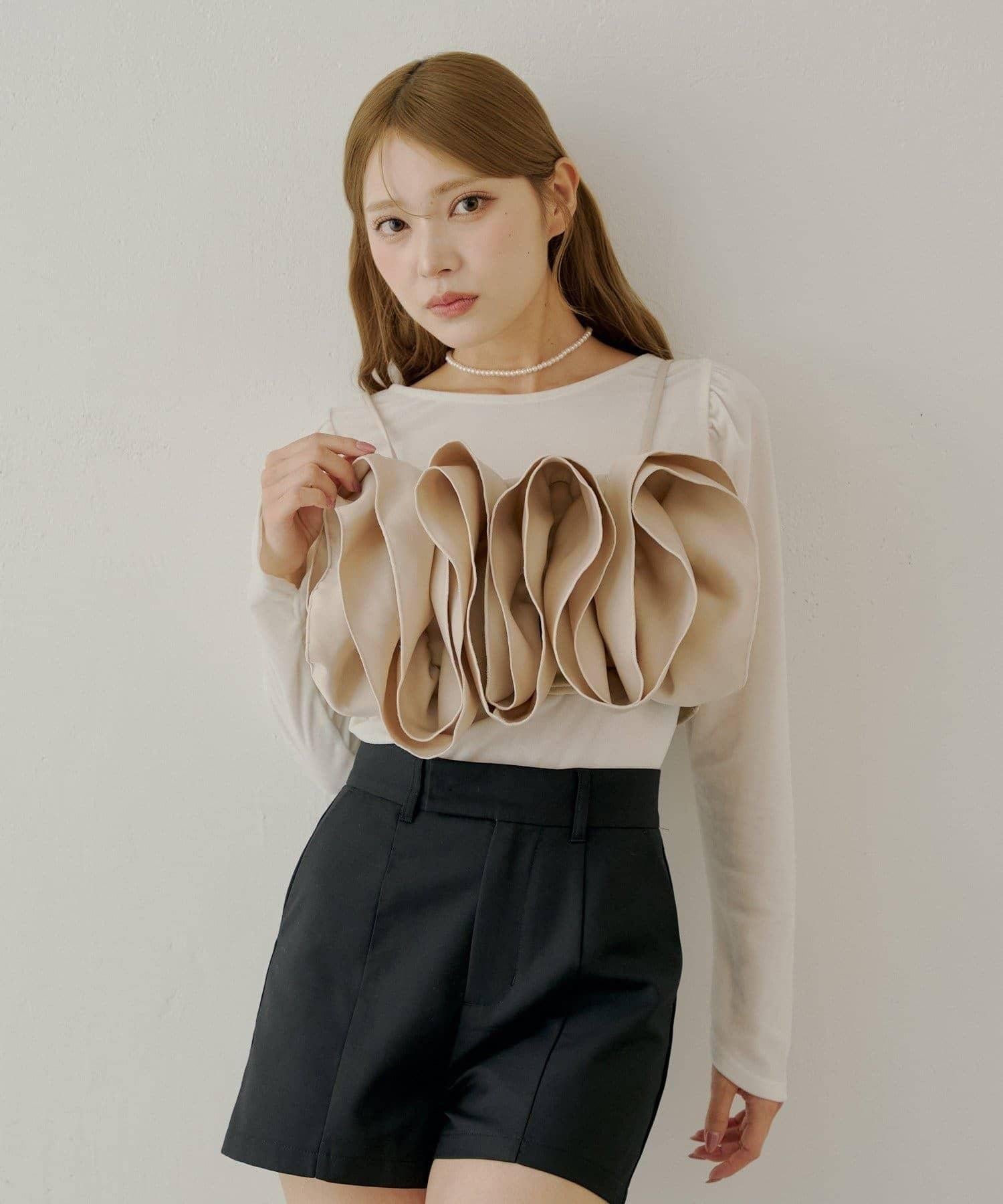 胸前裝飾的荷葉邊可與簡單的上衣疊穿,增添魅力和個性。