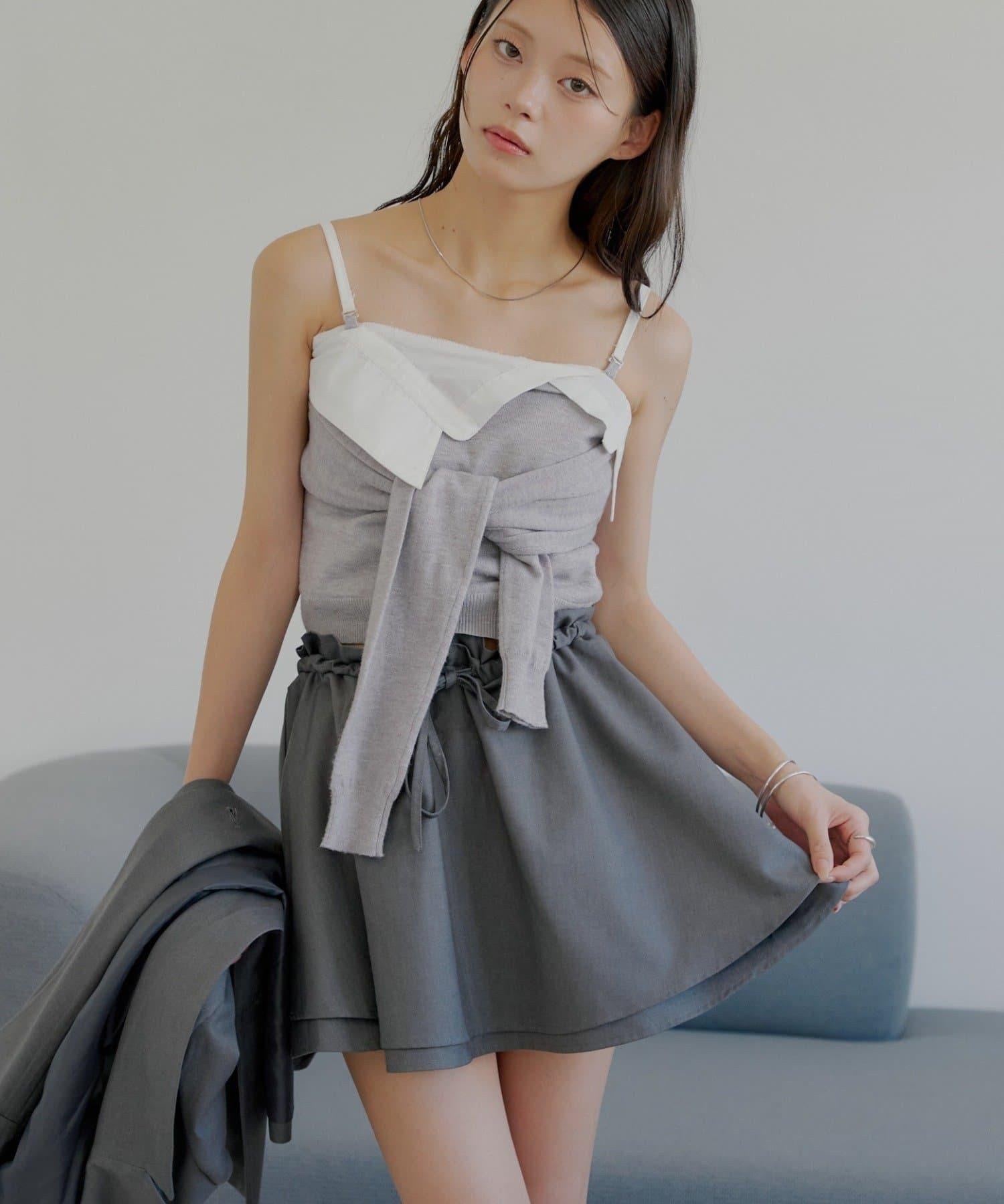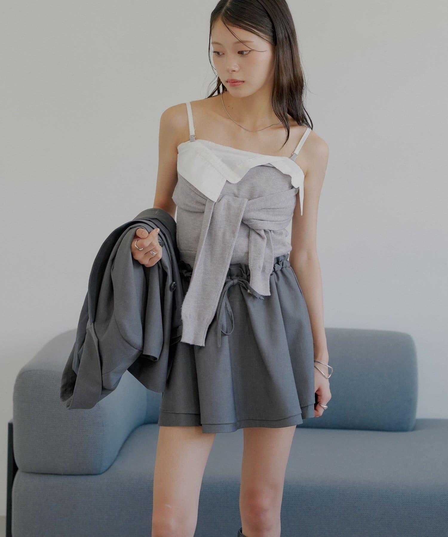 上衣採用與上衣相同的材質製作而成。