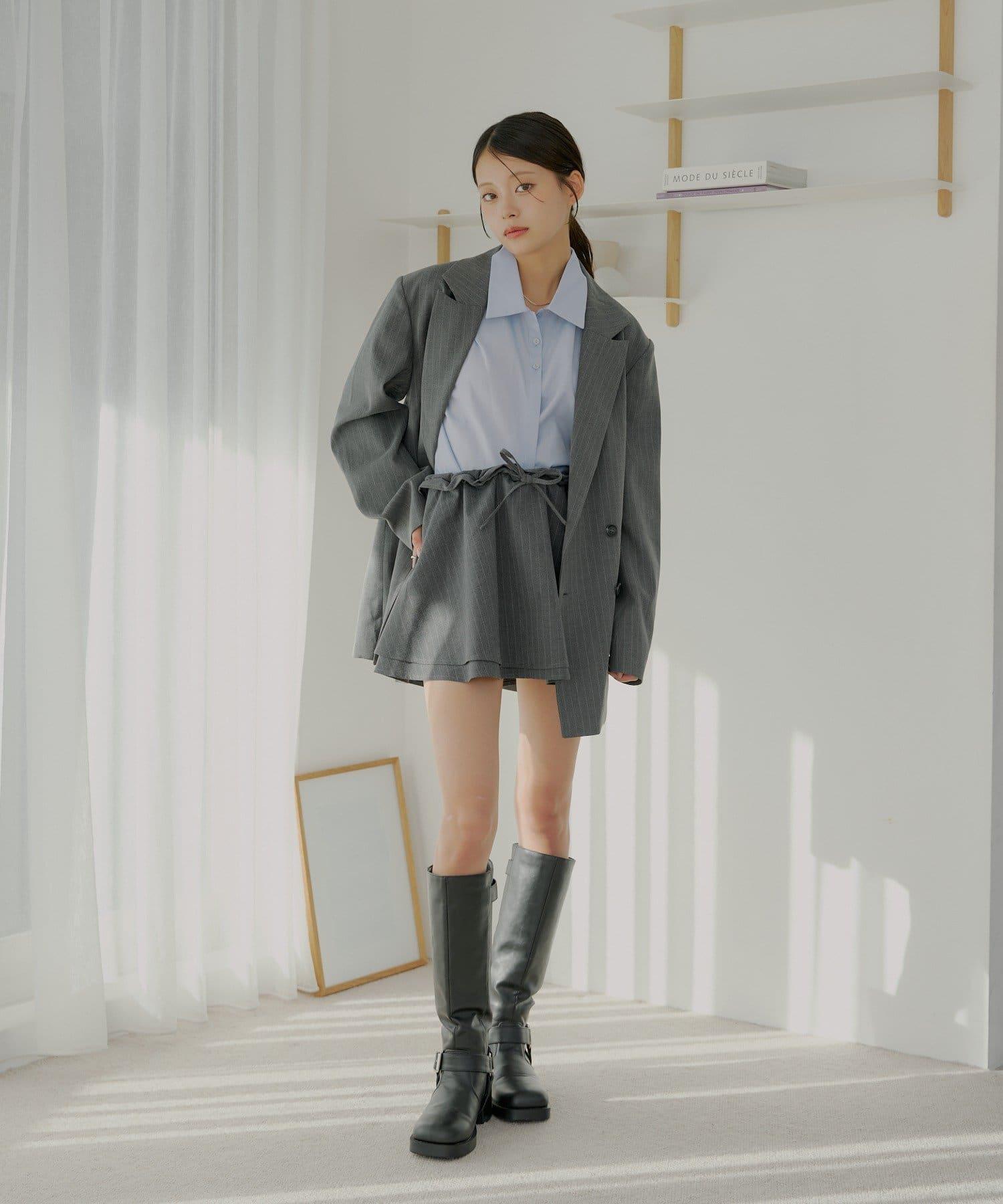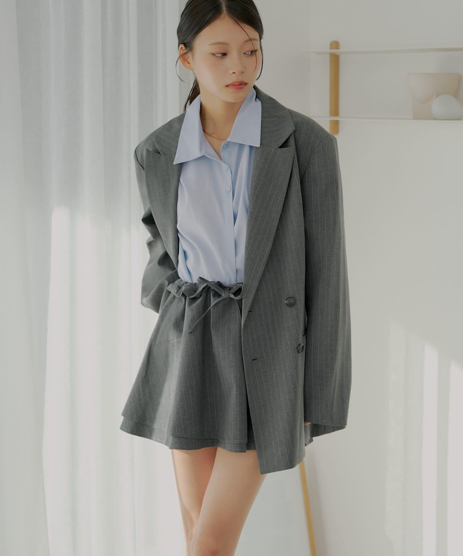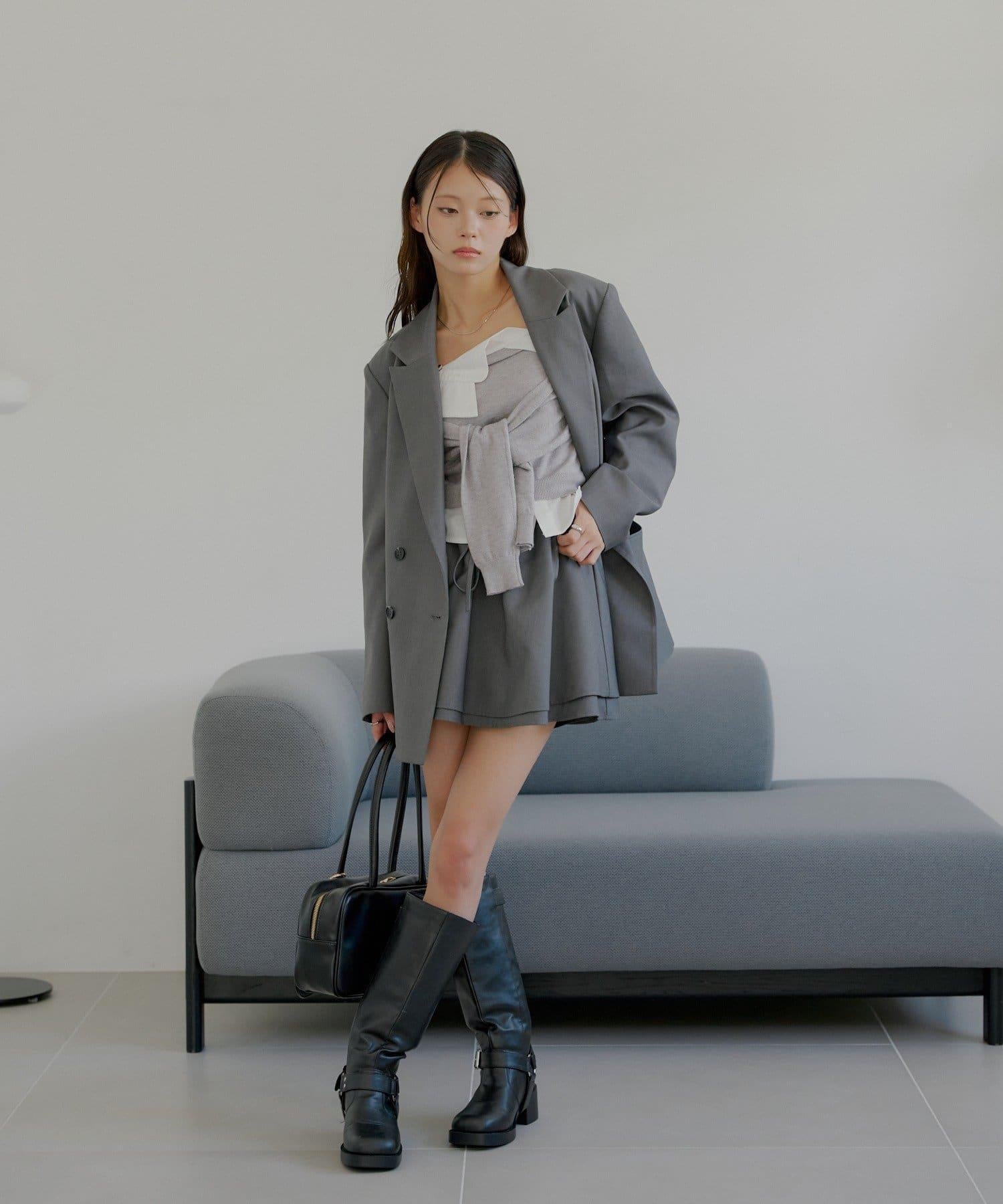 上衣採用相同材質,可與相同材質的上衣搭配作為套裝穿著。