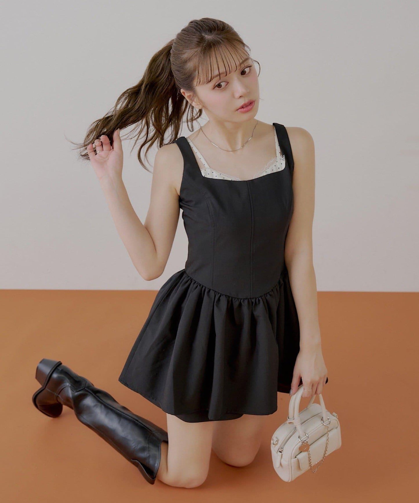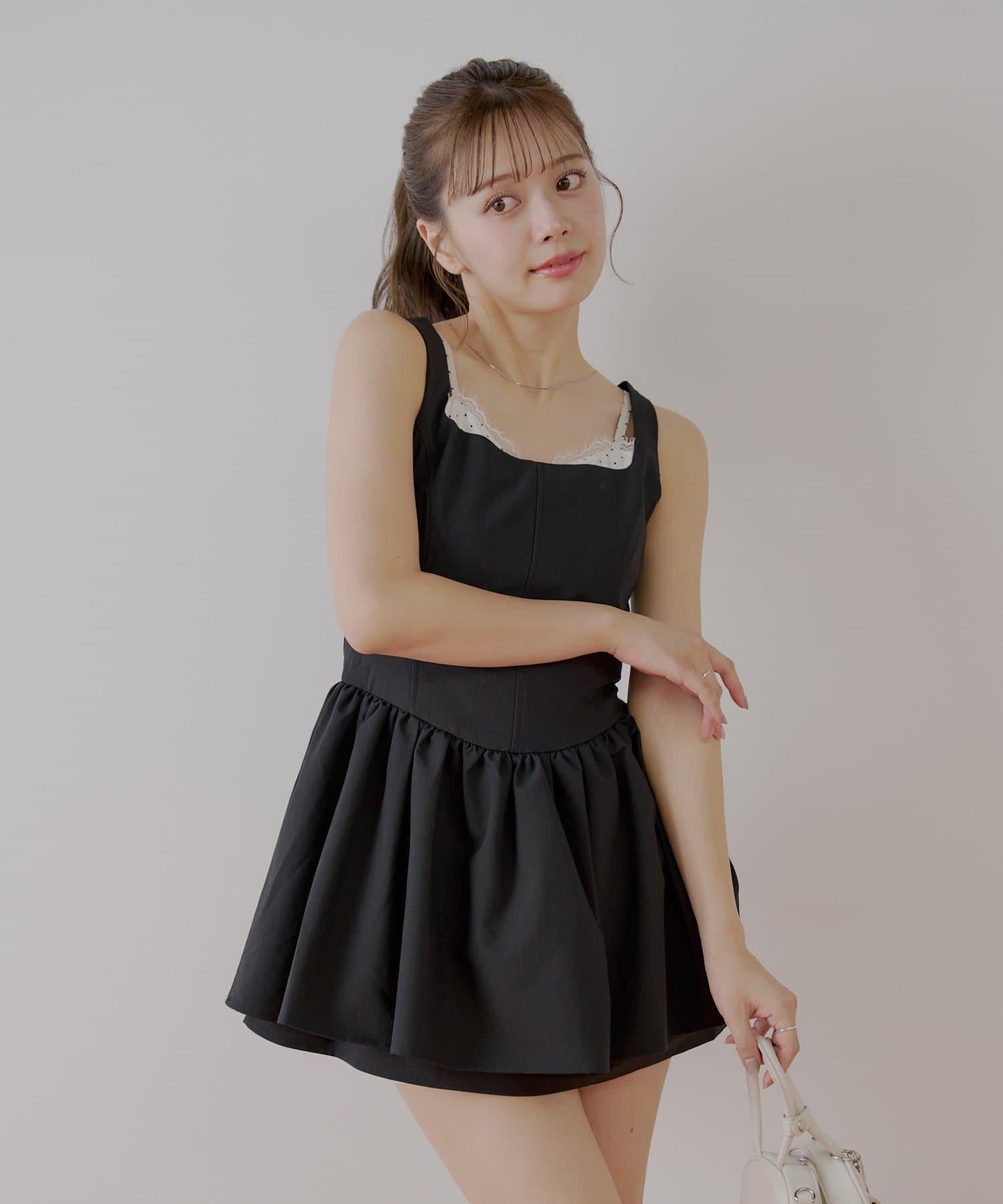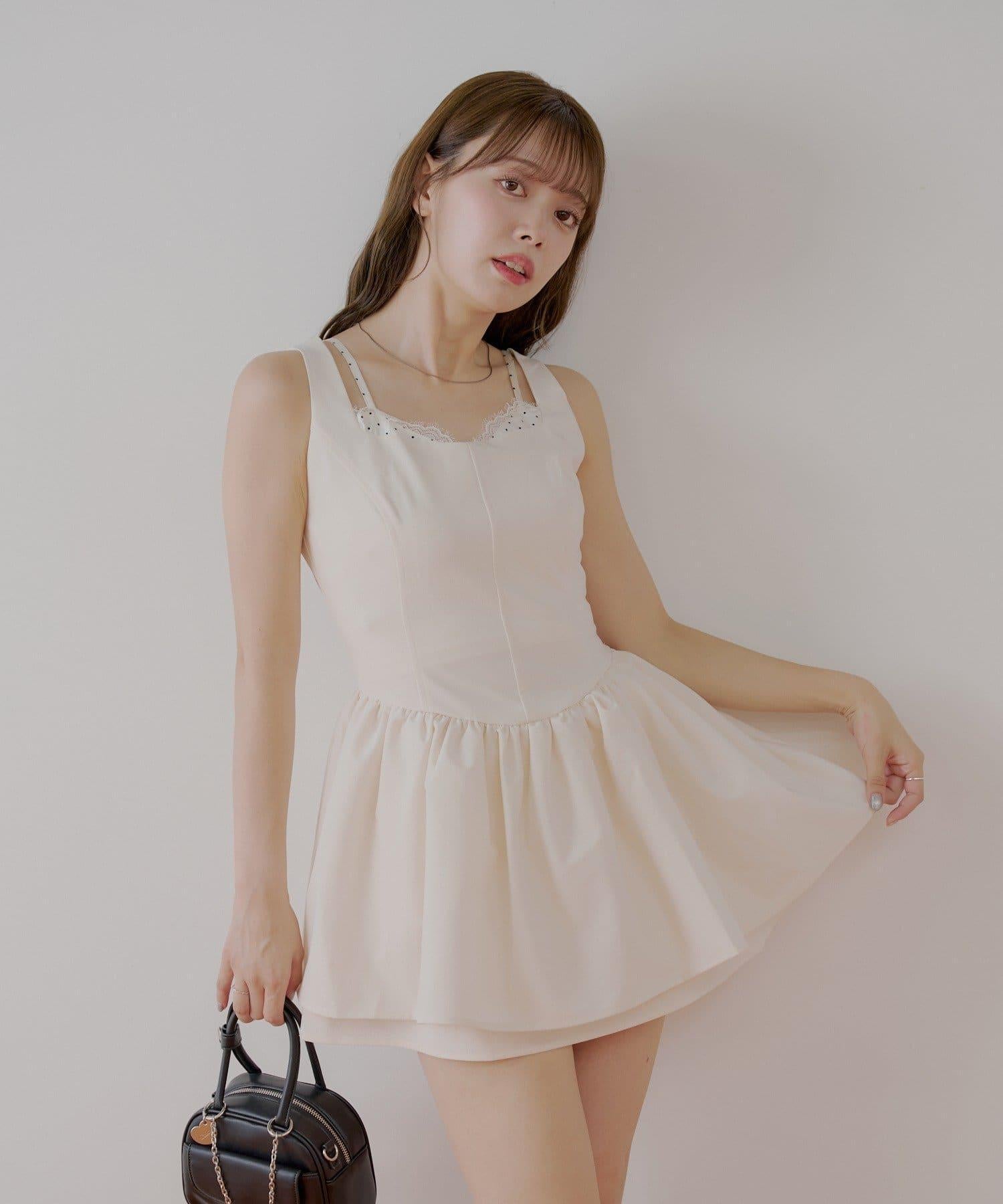 一件式連衣裙,吊帶設計的精緻蕾絲巧妙展露肌膚。